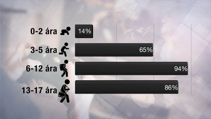 Konur spila tölvuleiki tveimur klukkustundum skemur en karlar á viku samkvæmt nýrri könnun Gallup sem var kynnt í dag. Á hverjum degi spila landsmenn tölvuleiki að meðaltali í tæplega klukkustund. Gallup kannaði tölvuleikjaspilamennsku Íslendinga fyrir upplýsingatæknifyrirtækið Origo. Ríflega 700 manns 18 ára og eldri svöruðu netkönnun í fyrstu viku febrúar.Flestir spila tölvuleiki á síma.Vísir/TótlaSamkvæmt könnuninni spila 66% landsmanna tölvuleiki. 50% spila tölvuleiki í síma, 25% í spjaldtölvu, 39% í borðtölvu eða fartölvu og 27% spila í leikjatölvu. 41% Íslendinga spilar tölvuleiki vikulega eða oftar. Meðaltími tölvuleikjaspilamennsku er 54 mínútur á dag. 25% spila í 3-7 klukkustundir á viku, 16% í 7-14 klukkustundir og um 12% spila tölvuleiki í meira en 14 klukkustundir á viku.Svarendur voru 18 ára og eldri.Vísir/TótlaFólk 18 ára og eldri svaraði könnuninni. Samkvæmt svarendum spila 14% 0-2 ára barna tölvuleiki og 65% barna á aldrinum 3-5 ára. 94% barna á aldrinum 6-12 ára spila tölvuleiki og 86% í aldurshópnum 13-17 ára. Tölvuleikjapilamennska flokkast undir rafíþróttir. Jens Christian Ringdal stofnaði elsta rafíþróttafélag Danmerkur í heimabænum Hróarskeldu. Jens segir lykilatriði rafíþrótta vera að fólk á öllum aldri hittist til að spila saman. „Á Norðurlöndum getum við sameinast um rafíþróttir, við þurfum að ná spilamennskunni út úr barnaherbergjum og inn í klúbbana svo allir geti spilað saman.“