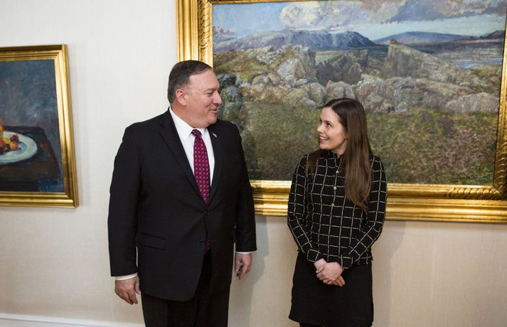 Mike Pompeo, utanríkisráðherra Bandaríkjanna, heimsótti Ísland í nokkrar klukkustundir í gær. Átti fundi með Guðlaugi Þór Þórðarsyni utanríkisráðherra í Hörpu og Katrínu Jakobsdóttur forsætisráðherra í ráðherrabústaðnum. Á blaðamannafundi sögðu utanríkisráðherrarnir frá því að þeir hefðu ákveðið að stofna til samráðsvettvangs um viðskipti ríkjanna. „Það eru enn sóknarfæri í viðskiptasambandi okkar og í dag ákváðum við að stofna samráðsvettvang um viðskipti í því skyni að bæta viðskiptatengsl ríkjanna enn frekar,“ sagði Guðlaugur Þór. Pompeo fór fögrum orðum um samband ríkjanna tveggja og minntist á að íslenskir landkönnuðir hefðu komið til Ameríku löngu áður en Bandaríkin urðu til. „En nú hefur þetta snúist við og Bandaríkjamenn flykkjast til Íslands,“ sagði Pompeo og bætti við: „Viðskiptasamband okkar er sterkt og við vonumst til þess að styrkja það enn frekar. Það mun þessi samráðsvettvangur gera.“ Pompeo sagði viðræður um viðskipti mikilvægar af ýmsum ástæðum. Í fyrsta lagi væri mikilvægt að leiða saman einkaaðila og fræða þá um tækifæri í öðrum löndum. „Í öðru lagi teljum við að betri skilningur á viðskiptasambandinu leiði af sér tækifæri til enn frekari samvinnu. Hvort sem það felur á endanum í sér formlegan fríverslunarsamning, sem væri afar gott, eða lækkar kostnað og fækkar hindrunum.“ Guðlaugur Þór sagði fríverslun mikilvæga í huga íslenskra stjórnvalda. „Ísland sjálft er gott dæmi um þetta mikilvægi. Áður vorum við á meðal fátækustu þjóða Evrópu en erum nú ein sú ríkasta. Ein ástæðan er sá aðgangur sem við höfum að öðrum mörkuðum,“ sagði hann. „Það gleður mig að heyra orð ráðherrans og að við höfum ákveðið að taka þetta mikilvæga skref.“ Pompeo sagði að Bandaríkin hefðu vanrækt mikilvæga bandamenn í tíð fyrri ríkisstjórnar og nefndi að bandarískur utanríkisráðherra hafi síðast komið til Íslands árið 2008. „Undanförnum fjórum dögum varði ég í að heimsækja höfuðborgir í Mið- og Austur-Evrópu sem fyrri ríkisstjórn vanrækti einnig. En þetta mun ekki viðgangast lengur. Við munum ekki lengur líta á vini okkar, sannkallaða bandamenn okkar, sem sjálfsagða. Við höfum einfaldlega ekki efni á slíkri vanrækslu. Hagkerfi okkar eru of nátengd.“ „Við hlökkum til að vinna með ykkur að mikilvægum málum þegar þið takið við formennsku í Norðurslóðaráðinu í maí. Við vitum að þegar Bandaríkin hörfa fylla Kína og Rússland upp í tómarúmið sem myndast. Það er óhjákvæmilegt,“ bætti Pompeo við. Þá sagði hann að Bandaríkin hefðu skilning á mikilvægi norðurslóða og hættum á svæðinu. „Við höfum fylgst með andstæðingum okkar koma sér upp kerfum sem þeir telja að skaði stöðu Bandaríkjanna, Íslands og Evrópu á svæðinu. Það er enn óljóst í hvaða mynd aðgerðir okkar á svæðinu verða en ég er viss um að Bandaríkin og Ísland geta náð árangri með samvinnu á þessu sviði,“ sagði Pompeo. Guðlaugur Þór sagði mikilvægt að norðurslóðir væru friðsamlegur staður og án togstreitu, jafnt í náinni sem fjarlægri framtíð.