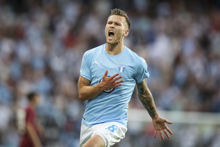 Arnór Ingvi flaug ekki með félögum sínum til London en nær samt Chelsea leiknum Óskar Ófeigur Jónsson skrifar 21. febrúar 2019 13:45 Arnór Ingvi Traustason gæti boðið upp á Bebeto fagn ef hann skorar á Brúnni í kvöld. EPA/Andreas Hillergren Arnór Ingvi Traustason og félagar í Malmö FF spila í kvöld við Chelsea í seinni leik liðanna í 32 liða úrslitum Evrópudeildarinnar. Það var ekki öruggt að Arnór Ingvi gæti spilað leikinn á Stamford Bridge í kvöld en hann staðfesti á Instragram síðu sinni að hann sé á leiðinni til London. Arnór Ingvi flaug ekki til London með félögum sínum á miðvikudagsmorguninn því kærasta hans, Andrea Röfn Jónasdóttir, átti von á þeirra fyrsta barni og þau eignuðust síðan stúlku í gær. Andrea Röfn hafði farið ellefu daga fram yfir tímann en barnið kom í heiminn í gær og nýi pabbinn gat því drifið sig aftur í vinnuna í dag. Uwe Rösler, þjálfari Malmö FF, lét vita af fæðingunni á blaðamannafundi í gær. „Við getum allir fagnað núna því hann eignaðist litla prinsessu,“ sagði Rösler en gat þá ekki staðfest komu Arnórs í dag. „Við sjáum til hvernig þetta gengur hjá þeim. Við vonumst eftir því að Arnór komi á morgun því við þurfum á okkar bestu mönnum að halda,“ sagði Rösler. Chelsea vann fyrri leik liðanna 2-1 í Svíþjóð og það þarf því margt að ganga upp í kvöld ætli Malmö að slá út ensku bikarmeistarana. Arnór Ingvi setti í dag mynd inn á Instagram (sjá fyrir neðan) þar sem er mynd af honum á flugvellinum og á henni stóð „London, United Kingdom“ en íslenski landsliðsmaðurinn er þar með mættur til Lundúna og verður með í kvöld.Leikur Chelsea og Malmö FF hefst klukkan 20.00 í kvöld og verður sýndur beint á Stöð 2 Sport. Mest lesið Þessi tíu eru tilnefnd sem Íþróttamaður ársins 2025: 23 ára aldursmunur Sport Sakaður um niðurlægingu: „Við viljum ekki hafa hann sem þjálfara“ Handbolti Erfitt að vera í burtu þegar mamma greindist Fótbolti Einn leikmaður með samning og völlurinn ólöglegur Fótbolti Áfallið staðreynd og Isak búinn í aðgerð Enski boltinn Vildi tapa legg: „Mesti hávaði sem ég hef heyrt“ Sport Salah færði Egyptum draumabyrjun Fótbolti Missti alveg stjórn á skapinu en það skilaði sigri Körfubolti Sagði látna systur sína hafa tryggt sigurinn ótrúlega Sport Steraleikarnir segi ungu fólki að það sé aldrei nógu fullkomið Sport Fleiri fréttir Sjáðu „auma“ vítið sem skilaði Fulham sigri Erfitt að vera í burtu þegar mamma greindist „Svona lítur frábær ákvörðun út“ Einn leikmaður með samning og völlurinn ólöglegur Salah færði Egyptum draumabyrjun Fulham skildi Forest eftir við fallsvæðið Áfallið staðreynd og Isak búinn í aðgerð Neres hetja Napoli í Sádi-Arabíu Aron Einar lagði upp dýrmætt sigurmark Afkáralegt fagn hjá hetju Sambíu Glódís Perla veik í jólafríið en enn taplaus Glódís og Hákon best í fótboltanum á árinu Frelsaði fjárfestirinn Dani Alves gefur sjálfum sér samning Fagnaði titli Liverpool sem óður maður um alla borg Mbappé breytti um fagn af góðu tilefni „Allir virðast elska hann“ Meira en 37 stöðugildi hjá Knattspyrnusambandi Íslands Táningur fær mikið hrós fyrir viðbrögð sín þegar mótherji missti meðvitund „Þetta mun ekki buga okkur“ Guardiola mun vigta leikmenn Man City eftir jólin „Ef þið væruð Antoine Semenyo, hvert mynduð þið fara?“ Freyr himinlifandi með íslensku strákana Sjáðu geggjaðan snúning Alberts áður en hann skoraði frábært mark Óskar Hrafn um komu Arnórs Ingva: „Gífurlega dýrmætt fyrir KR“ Áhorfendur ærðust eftir mögulega mark mótsins í fyrsta leik Sjáðu mörkin: Rogers sá um Manchester United Hleður Kjartan lofi eftir frábæra frumraun með Aberdeen Óttast að Isak hafi fótbrotnað Túfa gerir þriggja ára samning í Svíþjóð Arnór Ingvi orðinn leikmaður KR Sjá meira