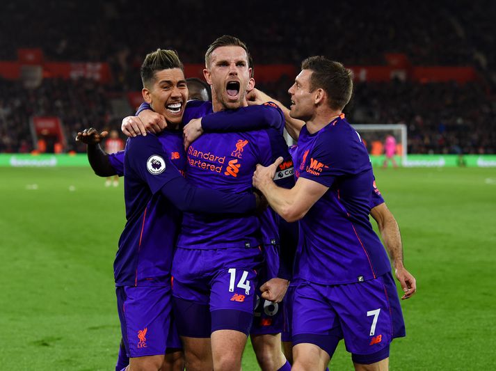 Liverpool er með eins stigs forskot á toppi ensku úrvalsdeildarinnar eftir 3-1 sigur á Southampton á útivelli í gær. Shane Long kom heimamönnum yfir á sjöttu mínútu en Naby Keita jafnaði metin fyrir leikhlé með sínu fyrsta marki fyrir þá rauðklæddu úr Bítlaborginni. Það voru svo þeir Mo Salah og Jordan Henderson sem afgreiddu leikinn með tveimur skyndisóknum undir lokin. Lokatölur 3-1 og Liverpool á toppnum á meðan Southampton er í sextánda sætinu. Mörkin úr leiknum má sjá hér að neðan.Klippa: FT Southampton 1 - 3 Liverpool