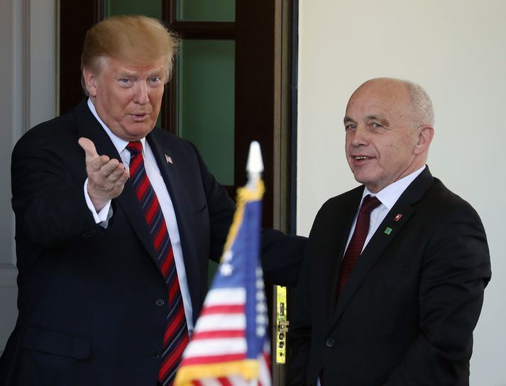 Viðtal við Hatara á CNN vék skyndilega fyrir Trump Kolbeinn Tumi Daðason í Tel Aviv skrifar 16. maí 2019 19:15 Trump og Maurer við Hvíta húsið í dag. Getty/Mark Wilson Matthías Tryggvi Haraldsson og Klemens Hannigan fóru í enn eitt viðtalið á annasömum fjölmiðladegi í Tel Aviv í dag. Í þetta skiptið voru þeir í beinni útsendingu á CNN þar sem þeir svöruðu kunnuglegum spurningum. Viðtalið tók óvænta stefnu þegar skipt var yfir á Donald Trump sem tók á móti Ueli Maurer, forseta Sviss, við Hvíta húsið. Þáttastjórnandinn Becky Anderson hafði þá spurt Matthías og Klemens út í ummæli félaganna í þætti Eurovision-bloggara hér í Ísrael. Þar lýstu þeir heimsókn sinni til Hebron í Palestínu fyrir tæpum tveimur vikum. Þeir sögðu aðskilnaðarstefnu Ísraela vera augljósa en finna mætti götur í Hebron sem Palestínumenn mættu ekki heimsækja. Klemens og Matthías létu ummælin falla í þættinum að neðan, eftir tæpar sex mínútur.Nánar í myndbandinu að neðan.Var spurning Becky hvort Hatari ætlaði að vera með pólitísk skilaboð á laugardagskvöld í úrslitum Eurovision. Liðsmenn Hatara fengu aftur á móti ekki að útskýra þessi ummæli sín strax vegna þess að fylgst var með Trump og Maurer takast í hendur. Þegar Becky komst aftur í samband við Hatara bað hún drengina afsökunar. „Okkur þykir þetta svo leitt. Þetta var forseti Bandaríkjanna,“ sagði Becky og ítrekaði spurningu sína. Matthías var til svars. „Við viljum ekki segja frá plönum okkar á þessu stigi. Þær mætti túlka pólitískt. En við höfum sagt allan tímann að við viljum halda uppi gagnrýnni umræðu um samhengi keppninnar. Það sé mjög pólitísk ákvörðun að halda keppnina í Ísrael.“ Í framhaldinu voru þeir félagar spurðir út í áskorun þeirra til Benjamin Netanyahu um að takast á í íslenskri glímu. Og sömuleiðis hvort vera þeirra hafi breytt skoðun þeirra á stöðu mála. Friður og sameining, einkennismerki Eurovision, sé ekki auðfundið hér í Ísrael.Innslag CNN má sjá hér að neðan. Donald Trump Eurovision Mest lesið Helvíti á jörðu: Emmsjé Gauti minnti á líkamsræktarþjálfara í maníu Gagnrýni Hefur misst vini og kunningja vegna skoðana sinna Lífið Veikindi eyðilögðu líka stóru stund Manúelu Lífið „Ég hugsa til þín á hverjum einasta degi“ Lífið Stjörnulífið: Óskar tíkunum gleðilegra jóla Lífið Leitin á Svínafellsjökli sem hefur enn ekki skilað árangri Lífið Wire-stjarna látin langt fyrir aldur fram Bíó og sjónvarp Kimmel ávarpar bresku þjóðina: Frábært ár fyrir fasisma Lífið Jólatónleikar eru ekki tónlist. Þeir eru neyðaraðgerð Gagnrýni Bestu, stærstu, slökustu og verstu myndir ársins 2025 Bíó og sjónvarp Fleiri fréttir Vísa ásökunum Skinner um kosningasvindl á bug Kimmel ávarpar bresku þjóðina: Frábært ár fyrir fasisma „Ég hugsa til þín á hverjum einasta degi“ Stjörnulífið: Óskar tíkunum gleðilegra jóla Veikindi eyðilögðu líka stóru stund Manúelu Hefur misst vini og kunningja vegna skoðana sinna Leitin á Svínafellsjökli sem hefur enn ekki skilað árangri Krakkatía vikunnar: Ísskápastríð, Eivör og Grafarvogur „Við byrjuðum að hlusta á jólalög í júlí“ Frægir fundu ástina 2025 Íslenska stelpan sem gerðist mormóni Fréttatía vikunnar: Rob Reiner, Dóra Björt og fullir unglingar 500 Esjuferðir á árinu: „Sumir hrista bara hausinn og lygna augunum“ Útgefandi Walliams lætur hann róa Fáklæddir barþjónar þegar Regnboginn opnaði í Bíó Paradís Þriðja stigs krabbameinið það besta sem kom fyrir hann Dúnninn bakaður í fjóra sólarhringa til að drepa allt í honum Heilsu krónprinsessunnar hrakar gríðarlega Pete orðinn pabbi Nýkominn úr meðferð og „sjaldan verið betur nýsleginn túskildingur“ Laufey á lista Obama „Ég heyrði þá kalla á mig en gat engu svarað“ Opnar sig í fyrsta sinn: Kyssti yfirmanninn í fyrsta sinn þetta kvöld Sex hundruð ára kastali Björns í Frakklandi svo gott sem klár Fyrirsát að Valgerði, Stund Pírata og meint alzheimer Þráins Bertelssonar „Það jafnar sig enginn eftir svona og við munum aldrei gera það“ Ungir sjálfstæðismenn gefa út vandræðalegt fjölskyldudagatal Keough sögð líffræðileg móðir Benjamin Travolta Rússland aftur í Eurovision - undirskriftasöfnun Óskarsverðlaununum streymt á Youtube Sjá meira