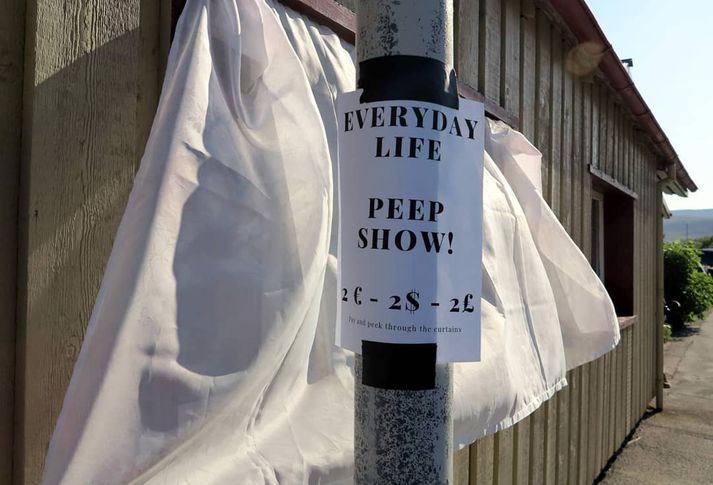 Býður fólki að greiða um 300 krónur fyrir að gægjast inn um gluggann hjá sér Gígja Hilmarsdóttir skrifar 3. ágúst 2019 13:29 Björgu langaði til að uppfylla gægjuþarfir“ fólks sjá hvort einhver myndi taka þátt í því og kíkja undir gluggatjöldin sem hún hefur fært út fyrir gluggann. Björg Elínar Sveinbjörnsdóttir Björg Elínar Sveinbjörnsdóttir hefur séð viðskiptatækifæri í því að búa á fyrstu hæð við fjölfarnar götur. Hugmyndina fékk hún eftir að hún varð vör við fjölda ferðamanna sem gægðust inn um gluggann hjá henni að heimili hennar í Ísafjarðarbæ. Björg greip til sinna ráða og færði gluggatjöldin út fyrir húsið og útfærði skilti sem hún límdi á staur fyrir utan heimili sitt en á því stendur, „Everyday life, peep Show“, eða Hversdagslíf, gægjusýning“ og býður fólki að greiða tvær evrur, tvo dollara eða tvö pund fyrir að gægjast. „Oft þegar margir eru í bænum á fólk til að hnýsast aðeins of mikið og kíkja inn. Mig langaði til að uppfylla þessar „gægjuþarfir“ fólks og langaði að athuga hvort fólk myndi taka þátt í því,“ segir Björg. Björg setur upp gægjusýninguna þegar hún nennir og segist aðallega gera þetta til að skemmta sjálfri sér.Björg Elínar SveinbjörnsdóttirBjörg rekur Hversdagssafnið á Ísafirði og segir hún hugmyndina sennilega sprottna þaðan. „Með miklum ferðamannastraumi er svakaleg gróðavon sem grípur landann og það er ekki endilega að fólk finni leið sýna inn í ferðamannaflauminn þá er þetta einföld og góð hugmynd,“ segir Björg. Hún hvetur fólk sem býr í miðbænum eða við fjölfarnar götur að gera slíkt hið sama. „Manni líður stundum eins og maður sér dýr í dýragarð og mér fannst betra að gera þetta svona formlegt. Þetta er náttúrulega til gamans gert og það er alveg ótrúlega fyndin athöfn þegar fólk er að gægjast. Ég geri þetta aðallega til að skemmta sjálfri mér,“ segir Björg. Hún segir sig hins vegar ekki enn hafa haft neitt upp úr þessu enn þá en bindur vonir við að græða kannski eitthvað í dag en þrjú skemmtiferðaskip eru nú í höfninni í firðinum.Björg stillti upp þessari skúffuköku þegar hún setti sýningun fyrst upp. Hún segist ætla að stilla upp annarri köku og jafnvel lasagna fyrir fólk sem vill gægjast í dag.Björg Elínar SveinbjörnsdóttirAlmenn ánægja með ferðamannafjöldann en mengunin gagnrýnd Björg segir flesta bæjarbúa sem hún hefur talað við almennt ánægða með að fá fólk í bæinn með skipunum en því finnist svolítið mikið af fólki koma í einu. Þetta sé hins vegar gott fyrir verslun og þjónustu í bænum. „Aðalgagnrýnin er mengunin sem hlýst af skipunum en nú eru þrjú skip og þau eru öll í gangi. Það fer ekki eins vel bæjarbúa,“ segir Björg. Ísafjarðarbær Mest lesið Trump nefnir nýja kynslóð orrustuskipa í höfuðið á sjálfum sér Erlent Hyggst kæra dyraverði Auto til lögreglu Innlent Fjölgun eldri kvenna í Kvennaathvarfi: „Þessar konur bíða ekki“ Innlent Skapari Call of Duty lést í bílslysi Erlent Virðist ekki vera hægt á Íslandi Viðskipti innlent Hiti geti mest náð átján stigum Veður „Ótrúlega sorglegt að pabbi sé búinn að vera svona lengi í þessari stöðu“ Innlent Ný könnun Maskínu: „Væri alveg ný staða í íslenskum stjórnmálum“ Innlent Ráðist á pilt á heimleið Innlent Kínverjar og Rússar lýsa yfir stuðningi við Venesúela Erlent Fleiri fréttir Stjórnvöld eigi að sjá sóma sinn í að greiða allan kostnað Ráðning ráðgjafafyrirtækja skekki myndina milli stjórnar og stjórnarandstöðu „Krítískur massi af snarbrjáluðu fólki nær yfirhöndinni“ Fjölgun eldri kvenna í Kvennaathvarfi: „Þessar konur bíða ekki“ Ráðist á pilt á heimleið Stytting framhjá Blönduósi ekki á samgönguáætlun Vestmannaeyingar fá að eiga Vestmannaeyjar Hyggst kæra dyraverði Auto til lögreglu „Ótrúlega sorglegt að pabbi sé búinn að vera svona lengi í þessari stöðu“ Höfðu samband við dönsku herstjórnina á Grænlandi Ný könnun Maskínu: „Væri alveg ný staða í íslenskum stjórnmálum“ Glæný Maskínukönnun og jólaóveður Ársæll hringdi beint í utanríkisráðherra eftir fundinn Ósannað að fimmtán ára stúlka hafi stungið sextán ára pilt tvisvar Sameina Farice, Öryggisfjarskipti og hluta Neyðarlínunnar Gaf fingurinn á Miklubraut Birtir drög að lögum um lagareldi: Hyggst leggja niður Fiskeldissjóð Hundrað og fjörutíu milljarða bótakrafa á Samherja sé súrrealísk Skemmdir í kirkjugörðum vegna aksturs utan vegar Ólýsanlegur harmur fyrir fjölskylduna og söfnun hleypt af stokkunum „Ég hef aldrei upplifað annan eins harm“ Vill leiða lista Sjálfstæðismanna í Reykjanesbæ „Þetta hefur verið þungur tími“ Naut aðstoðar samskiptasérfræðinga vegna veiðigjaldamálsins Hrindir af stað söfnun fyrir móður stúlkunnar sem lést í Suður-Afríku Varð vitni að ótrúlegum norðurljósum: „Mér fannst þetta magnað“ Færir nýársboðið fram á þrettándann Fjórir fluttir á sjúkrahús eftir bílveltu á Suðurlandi Leggur aftur til hverfislögreglustöð í Breiðholti Nú má heita Love, Tóní, Ranimosk og Draumur Sjá meira