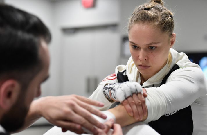 Bardagakonan Ronda Rousey er hörkutól og hefur sannað það margoft í búrinu á sínum bardagaferli. Hún ætlar líka ekkert að bregða út af þeirri venju sinni nú þegar hún reynir sig á nýju sviði sem leikkona. Ronda Rousey missti næstum því fingurinn á fyrsta tökudegi hennar í sjónvarpsþáttunum „9-1-1“ sem eru að fara að hefja sitt þriðja vetur í bandarísku sjónvarpi. Rousey leikur slökkviliðskonu í þáttunum sem kallar ekki allt ömmu sína.Ronda Rousey Breaks Finger Shooting '911' Scene, Fights Through the Pain! https://t.co/xYQrrckEf0 — TMZ (@TMZ) August 21, 2019 Rousey meiddist á tveimur fingrum í upptöku á fyrsta atriðinu sem hún átti að vera í en eins og sjá má hér fyrir neðan á þessari mynd á Instagram síðu hennar þá var annar fingranna mun verr farinn. View this post on InstagramSo the word is out I nearly lost my finger shooting @911onfox. Freak accident, first take of the day a boat door fell on my hand, I thought I just jammed my fingers so I finished the take before looking (I know it sounds crazy, but I’m used to live audiences and never showing pain unless I’m supposed to) after a break in the action I told our director the situation and was rushed via ambulance to the hospital where they promptly reattached my bone and tendon with a plate and screws. I returned to filming the next day and finished my scenes before returning home to recover. Modern medicine amazes me, I already had 50% range of motion back in 3 days. There’s so much more than I can write here, stayed tuned via @rondarouseydotcom for the full story. And of course tune in to see how well I can act like my finger didn’t just fall off in this upcoming season of @911onfox A post shared by rondarousey (@rondarousey) on Aug 20, 2019 at 12:07pm PDT Það var langatöngin sem varð mun verr úti enda var Ronda Rousey nálægt því að missa hana. Hún fingurbrotnaði og sleit einnig sin. Fingurinn hékk nánast á skinninu. Dyr á báti skelltust aftur og fingur hennar varð á milli. Það besta við söguna er að Ronda Rousey hélt áfram eins og ekkert hafði í skorist. „Ég er vön að vera fyrir framan áhorfendur og sýna aldrei að ég finni til,“ sagði Ronda Rousey við TMZ en hún áttaði sig síðan á alvarleika meiðslanna og að fingurinn væri mögulega að fara að detta af. Ronda Rousey var flutt á sjúkrahús eftir atriðið og þar þurfti að festa fingurinn og sauma sinina með plötu og skrúfum. „Ég mætti í tökur strax daginn eftir og kláraði öll mín atriði áður en ég fór heim til að jafna mig,“ sagði Ronda Rousey.