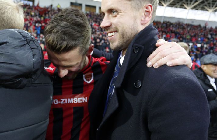 „Þessi er í efsta sæti, sá langstærsti á ferlinum, það er engin spurning. Enginn af hinum titlunum kemst í nálægð við þennan, að ná að vinna titilinn fyrir framan fjölskylduna og fólkið í hverfinu,“ segir Sölvi Geir Ottesen brosandi í samtali við Fréttablaðið, aðspurður út í tilfinninguna að vinna bikarmeistaratitilinn með uppeldisfélagi sínu, Víkingi Reykjavík, um helgina. Sölva féll sá heiður í skaut að lyfta bikarnum í leikslok eftir verðskuldaðan 1-0 sigur Víkings á FH. Þetta er fimmti bikarmeistaratitill Sölva á ferlinum en hann varð tvívegis bikarmeistari með Djurgården, bikarmeistari með FC Kaupmannahöfn í Danmörku og með Jiangsu Sainty í Kína. Með þessu tókst Víkingi að brjóta þykkan ís og vinna sinn fyrsta titil í knattspyrnu í 28 ár eða frá því að Víkingar urðu Íslandsmeistarar árið 1991. Sölvi er einn þriggja leikmanna sem komu við sögu í gær sem voru fæddir þegar Víkingur vann síðast titil en hinir eru Þórður Ingason og Halldór Smári Sigurðsson. Enginn leikmaður liðsins var fæddur þegar Víkingur vann fyrri bikarmeistaratitil sinn árið 1971, ekki heldur Arnar Gunnlaugsson, þjálfari félagsins. „Ég og Halldór Smári munum lítið eftir Íslandsmeistaratitlinum árið 1991, Kári man eitthvað eftir þessu en það var löngu kominn tími á þetta. Maður er í þessu til að vinna titla en ekki bara til að vera með. Fyrir leikmennina í hópnum sem hafa ekki unnið titla á ferlinum er þetta frábær reynsla, að fá að upplifa það að taka við titli.“ Sölvi var einn þriggja leikmanna yfir þrítugt í liði Víkings og hrósaði yngri leikmönnum liðsins. „Þetta eru frábærir strákar í þessu liði og eiga framtíðina fyrir sér. Þeir eru búnir að taka út heilmikinn þroska frá því í byrjun móts og taka skref upp á við. Núna er það undir okkur komið að byggja ofan á þetta og halda áfram í staðinn fyrir að láta líða langan tíma á milli titla. Núna er markmiðið sett á að enda tímabilið af krafti og bæta stigamet félagsins í efstu deild, það verður gulrótin okkar það sem eftir lifir tímabilsins. Svo verður hópurinn styrktur og við stefnum hærra,“ segir fyrirliðinn og tekur undir að titlar séu lím sem haldi leikmannahópum saman. Þjálfari Víkings, Arnar Gunnlaugsson, tekur í sama streng. „Þetta er fyrsta skrefið af vonandi mörgum hjá félaginu, þessir strákar eiga framtíðina fyrir sér. Það hættulegasta í stöðunni er að menn verði saddir og sofni á verðinum. Á næsta ári þurfa allir að gera betur og þá getum við kannski gert atlögu að þeim stóra. Þetta eru flottir strákar og með réttri kænsku eru allir möguleikar opnir fyrir þetta félag. Við ætlum að koma í veg fyrir að jafn langt líði næst á milli titla hjá félaginu.“ Í aðdraganda leiksins var nafn Kára Árnasonar helst í umræðunni eftir að miðvörðurinn meiddist í landsleik Íslands í síðustu viku. Aðspurður út í hlutdeild Kára í titlinum fer Sölvi fögrum orðum um félaga sinn. „Hann á stóran þátt í því að koma okkur í þennan leik og í hálfleik hjálpaði hann til, talaði við menn og lét vel í sér heyra. Hann lagði sitt af mörkum í þessum titli,“ segir Sölvi og heldur áfram: „Það var ekki hægt að gera neitt í þessum meiðslum, þau komu upp og þá kom næsti maður inn. Auðvitað var það fúlt fyrir Kára en hann fékk að fara á HM og EM svo að það er ekki hægt að vorkenna honum of mikið,“ segir Sölvi léttur að lokum.