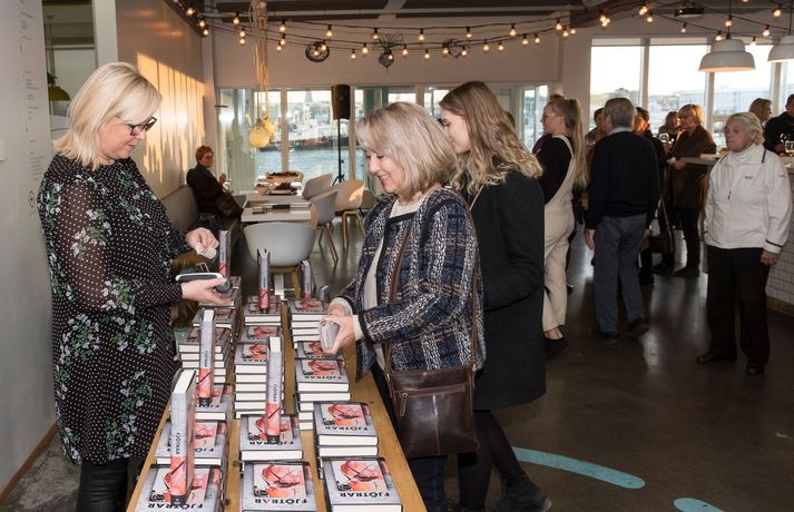 Rjómi glæpasagnahöfunda fagnaði Fjötrum Sólveigar Sylvía Rut Sigfúsdóttir skrifar 25. október 2019 09:00 Fullt var út úr dyrum í Sjávarklasanum í útgáfuhófi bókarinnar Fjötrar eftir Sólveigu Pálsdóttur. Myndir/Salka Sólveig Pálsdóttir rithöfundur og bæjarlistamaður Seltjarnarness fagnaði í vikunni útgáfu fimmtu bókar sinnar sem ber heitið Fjötrar. Gleðskapurinn fór fram í Sjávarklasanum og vel á annað hundruð manns lögðu leið sína út á Granda til að samfagna með höfundinum. Þeirra á meðal var rjóminn af glæpasagnahöfundum landsins en Yrsa Sigurðardóttir, Lilja Sigurðardóttir og Óskar Guðmundsson nældu sér öll í eintak í veislunni. Fjötrar segja frá konu sem finnst látin í klefa sínum í fangelsinu á Hólmsheiði. Guðgeir og félagar hans rannsaka málið sem reynist hafa ótal þræði og teygja anga sína víða, alla leið til stóra skjálftans um aldamótin þar sem ungur maður hvarf sporlaust. Lögreglan stendur frammi fyrir stórum spurningum og kynnist hversu langt fólk er tilbúið að ganga til að viðhalda ákveðinni mynd af sér út á við og hvers fjölskyldur eru megnugar til að vernda leyndarmál sín.Sólveig fagnaði á dögunum sextugsafmæli sínu en Fjötrar er hennar fimmta bók.Aðsend myndSólveig er leikkona og starfaði lengi við leiklist og kennslu í framhaldsskóla áður en hún sneri sér alfarið að ritstörfum. Fjötrar er fimmta bók Sólveigar en hún fagnaði sextugsafmælinu sínu á dögunum. Bækur Sólveigar hafa verið tilnefndar til Blóðdropans, þýddar á þýsku og sem stendur vinna bresk framleiðslufyrirtæki að gerð sjónvarpsþátta eftir síðustu bók hennar Refnum samkvæmt upplýsingum frá útgefanda. Sólveig var valin bæjarlistamaður Seltjarnarness fyrir árið 2019, fyrst rithöfunda. „Ég verð að leyfa hugmyndunum að setjast í mér og þroskast,“ sagði Sólveig í viðtali að því tilefni. Myndir frá þessum viðburði má finna í myndaalbúminu hér fyrir neðan. Menning Mest lesið Breytti um nafn eftir djúpa ástarsorg Tónlist Fasteignasalar og ofurskvísur í Októberfest stemningu Lífið Eitt glæsilegasta hús Reykjavíkur til sölu Lífið Sjóðheitt fyrir snjóstorm Tíska og hönnun Cecilie tekur við af Auði Menning Troðningur á yfirfullri opnun: „Þetta var svolítið kreisí“ Lífið Fékk lífið til baka á korteri eftir tólf ár af sársauka Lífið Bragðgott quesadilla á einni plötu Matur Nýir réttir Serrano aðgengilegir í LifeTrack appinu Lífið samstarf Hvað þýðir „six-seven“? Lífið Fleiri fréttir Sigurjón og Sóley gjörbreyttu eldhúsinu með einstakri útkomu „Alvöru“ jólasveinn gisti á Hótel Rangá Fasteignasalar og ofurskvísur í Októberfest stemningu Eitt glæsilegasta hús Reykjavíkur til sölu „Þetta er það fallegasta sem einhver hefur sagt um mig“ Hvað þýðir „six-seven“? Smáforrit til að deila heimilisverkum: „Fæ þrjú stig fyrir að þurrka af á heimilinu“ Kynslóðabilið kom í ljós þegar umræðan beindist að blautbolakeppni Ljúffengar banana- og kakóbollakökur í nestisboxið Troðningur á yfirfullri opnun: „Þetta var svolítið kreisí“ Pétur Kr. og Ingibjörg selja 270 fermetra eign við Ægisíðu Barist upp á líf og dauða „Get ekki hætt að hugsa um bragðarefinn sem hann pantaði“ Langþráður draumur verður að veruleika Samsæriskenningar notaðar sem stjórntæki Stjörnulífið: „Dagur sem mun aldrei gleymast“ Gisti hálft ár á sófum hjá bekkjarfélögum Betra að vera blankur nemi í New York Kynlífið innantómt með öðrum en fyrrverandi Fékk lífið til baka á korteri eftir tólf ár af sársauka Staðfesta loks sambandið Einar og Milla skírðu drenginn Með blæðandi hjarta og ber örin með stolti Krakkatían: Kvennafrídagurinn, Ólsen ólsen og málsháttur Áslaug Arna kom alblóðug inn í sjúkratjaldið Upplifði stöðugan ótta við helvíti í samfélagi múslima í Svíþjóð Getur alls ekki verið einn Fréttatía vikunnar: Ungfrú Ísland Teen, Louvre-þjófnaður og hrukkur Myndaveisla: Troðfullur miðbær á kvennafrídegi Borgarfulltrúi bjargaði stolnum barnavagni Sjá meira
