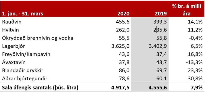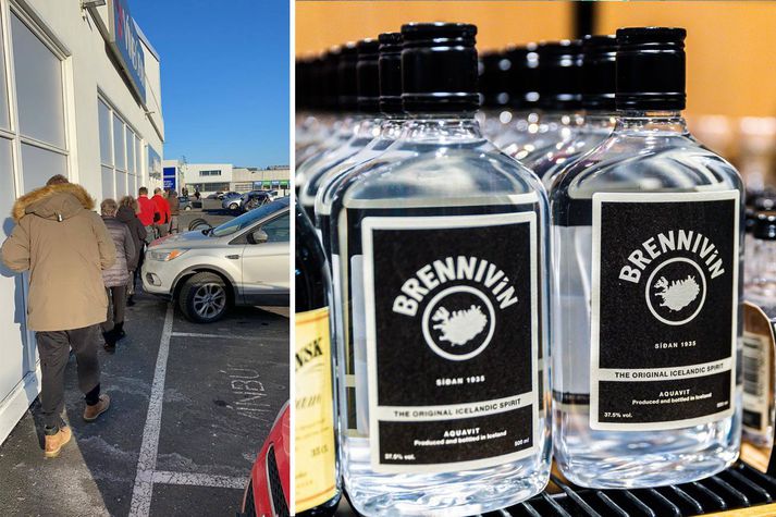 Ekki endilega víst að þjóðin sé lögst í kojufyllerí Jakob Bjarnar skrifar 3. apríl 2020 14:15 Ýmsir hafa af því áhyggjur að stórir hópar séu að bregðast við ástandinu með því að hella í sig áfenginu og víst er að í gær mynduðust langar raðir fyrir utan útsölustaði ÁTVR. Í gær mynduðust langar raðir fyrir utan útsölustaði Áfengis- og tóbaksverslun ríkisins. Og samkvæmt upplýsingum frá ÁTVR er það svo að aukning á sölu áfengis nemur um 20 prósentum frá því sem venju ber til. Svo virðist sem hluti þjóðarinnar ætli að bregðast við samkomubanni og þeirri vá sem að steðjar vegna kórónuveirufaraldursins með kojufylleríi. En, varasamt er þó að hrapa að ályktunum, ýmsir þættir gætu haft veruleg áhrif á þessa söluaukningu. Alma varar við brennivíninu Alma Möller landlæknir gerði þessa auknu sölu áfengis að sérstöku umtalsefni á hinum venjubundna fundi almannavarna í gær; hún vill vara við áfengisneyslu meðan á faraldri stendur. „Ég vil ítreka sérstaklega að það er ekki gagnlegt að nota áfengi til að takast á við erfiðar tilfinningar eða kvíða,“ sagði Alma. Landlæknir sagði áfengisneyslu skammgóðan vermi, veikti ónæmiskerfin og sé hreinlega heilsuspillandi. Það brengli dómgreindina, auki líkur á heimilisofbeldi og ef fólk héldi að það hjálpaði til við svefn þá væri það bábilja; hugsanlega væri hægt að rota sig með áfengi en það rýrði gæði svefnsins. Þegar þessi viðvörunarorð landlæknis og söluaukning hjá ÁTVR eru lögð saman verður eiginlega ekki hjá því komist að draga þá ályktun að hluti þjóðarinnar vilji mæta ástandinu með kojufylleríi. En, þetta er ekki alveg svo einfalt. Fólk er að hafa áhyggjur af því að vínsala hér hafi aukist um rúm 8% í mars miðað við í fyrra. Í USA er aukning 66% og UK 58% samkvæmt þessari grein. Annað áhugavert; Á meðan við erum hvött til að sleppa því að drekka vín þá eru vínbúðir í UK settar á lista yfir essetial buisnes https://t.co/c9oH5gOxus— Ólafur Örn Ólafsson (@olafurorn) April 2, 2020 Ýmsir aðrir velta fyrir sér þessari stöðu, svo sem veitingamaðurinn Ólafur Örn Ólafsson sem bendir á það á sinni Twittersíðu að fólk hafi af því áhyggjur að vínsala hér hafi aukist um 8 prósent miðað við í fyrra. En í Bandaríkjunum nemi aukingin 66 prósentum og á Bretlandseyjum 58 prósentum. Næsta vika með þeim stærstu í áfengissölu Sigrún Ósk Sigurðardóttir aðstoðarforstjóri hjá ÁTVR segir það vissulega svo að það sé meiri sala. Og í gær var mikið álag sem lýsti sér meðal annars í miklum röðum sem mynduðust við útsölustaði. „Við erum auðvitað ekki á okkar hefðbundu afköstum, það eru færri kassar í notkun og út af samkomubanninu eru takmarkanir inn í búðirnar. En, miðað við í hvernig verkefnum starfsfólkið er þá gengur þetta vel.“ Í gær mynduðust langar raðir við helstu útsölustaði ÁTVR. Ljóst er að margir eru að birgja sig upp af áfengi. Og næstu viku er ein stærsta vika í áfengissölu hjá ÁTVR. Engin vandkvæði komu uppá á í gær sem gær þó óæskilegt sé að viðskiptavinir hafi þurft að bíða fyrir utan. Sigrún Ósk segir að þau hafi hvatt til þess að álaginu verði dreift. Í næstu viku stefnir í stóra söluviku hjá ÁTVR. „Næsta vika er ein sú stærsta ársins, vika fyrir páska er að jafnaði mjög stór. Ekki kannski eins og um jól og Verslunarmannahelgi en hún er stór.“ Fólk kaupir mikið magn og Sigrún Ósk telur að það megi ef til vill rekja til þess að fólk er hvatt til að versla sjaldnar. „Hvatning frá þríeykinu,“ segir Sigrún Ósk og vísar til Ölmu, Þórólfs og Víðis. Ýmsir þættir sem hafa áhrif En, erum við þá að horfa fram á það að þjóðin sé lögst í kojufyllerí sem viðbrögð við þessum erfiðu tímum? „Við getum ekki metið það en við höfum bent á að jafnaði er sala í vínbúðum 75 prósent á móti veitingageiranum,“ segir Sigrún Ósk. Sem sagt að ef engin er sala í veitingahúsum þá gæti það orsakað meiri sölu hjá ÁTVR. Við það bætist að engin umferð er um fríhöfnina en þar er töluverð sala á áfengum drykkjum. Sigrún Ósk aðstoðarforstjóri ÁTVR segir að þó greina megi mikla aukingu í sölu áfengis hjá ÁTVR séu ýmisir þættir sem þar geti haft áhrif aðrir en þeir að fólk almennt drekki meira. „Án þess að við vitum nokkuð um hvað fólk gerir við vöruna þegar hún er komin úr búðinni en það eru aðrir þættir sem skipta máli,“ segir Sigrún Ósk. Hún bendir einnig á að nú séu fjölmargir Íslendingar komnir heim sem öðru jöfnu dvelja erlendis. „Þegar maður hugsar það er ekkert óeðlilegt að það sé meira álag hjá okkur. Þetta eru nú bara vangaveltur sem má hafa í huga en það er ekki hægt að draga fyrirvaralaust þá ályktun að áfengisneyslan sé meiri per einstakling. Þetta er það sem við erum að velta fyrir okkur en ég hef engar tölulegar upplýsingar sem snúa að þessu.“ Um það bil tuttugu prósenta aukning Sigrún Ósk metur það svo að undanfarnar tvær vikur megi greina 20 prósenta aukningu í sölu á áfengi. „Salan í mars 8,2 prósent yfir sölu marsmánaðar í fyrra. Í heildina er sala ársins 7,9 prósent yfir sama tíma. Mikil söluaukning hefur orðið í léttvíni og þá sérstaklega í mars,“ segir Sigrún Ósk og fer nánar í bókahald sitt: „Aukin sala er einnig í öðrum flokkum þá sérstaklega öðrum bjór. Sala á ávaxtavínum heldur áfram að dragast saman en það var þróun sem við sáum einnig á síðasta ári en á sama tíma jókst sala í blönduðum drykkjum. Síðustu tvær vikurnar í mars var saman allt að 20 prósent meiri en í hefðbundnum vikum á þessum árstíma.