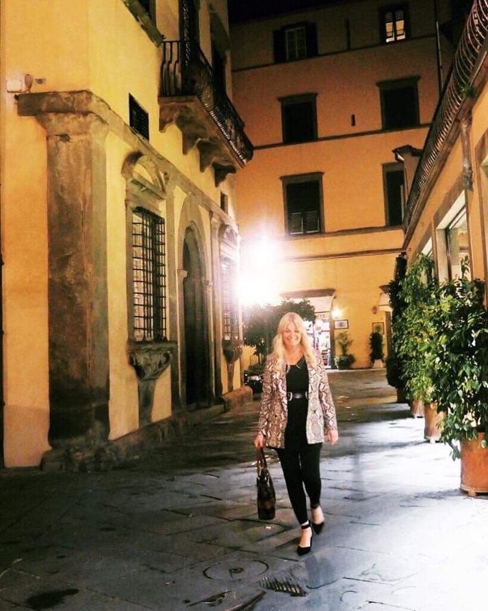 Ítalíudraumur Nínu Bjarkar breyttist fljótt í martröð Sylvía Rut Sigfúsdóttir skrifar 12. apríl 2020 09:00 Nína Björk Gunnarsdóttir giftist Aroni Karlssyni árið 2018. Mynd/Nína Björk Gunnarsdóttir Ljósmyndarinn Nína Björk Gunnarsdóttir flutti með fjölskylduna til Ítalíu í ágúst á síðasta ári. Nína Björk og eiginmaður hennar Aron Karlsson bjuggu í Bagni di Lucca sem er í 20 mínútna fjarlægð frá Lucca og höfðu dvalið þar í sjö mánuði þegar kórónuveiran fór að breiðast út á Ítalíu. Í samtali við Vísi segir Nína Björk að þau hafi ákveðið að flytja til Ítalíu vegna ýmissa viðskiptatækifæra en Ítalíuævintýrið breyttist hratt í martröð og eru þau flutt aftur heim til Íslands í bili. „Við erum að selja ítalskan marmara, erum með sveitagistingu í húsinu okkar og aðra sveitabæi, erum líka með margar glæsilegar villur á skrá hjá okkur á Ítalíu. Ég var búin að undirbúa fasteignamyndatökur í samstarfi við Remax og vera í sambandi við nokkrar íslenskar ferðaskrifstofur sem höfðu áhuga á að búa til skemmtiferðir til Ítalíu,“ segir Nína Björk um Ítalíudvölina. Hún telur að faraldurinn hafi allt of seint verið tekinn alvarlega þar í landi. „Þau voru allt of lengi að grípa í taumana, hefðu átt að bregðast mun fyrr við, en það má samt segja um flest stjórnvöld fyrir utan Ísland og sárafá önnur lönd.“ Mynd/Nína Björk Gunnarsdóttir Eyðublað nauðsynlegt til að komast út Fjölskyldan var í þrjár vikur í sóttkví á Ítalíu áður en þau yfirgáfu landið. „Við fengum póst frá utanríkisráðuneytinu um að við ættum að huga að brottför og byrja að pakka, áður en öll landamæri lokuðust. Þessi faraldur hefur lamað alla ferðaþjónustu á Ítalíu, eins og um allan heim. Það er mjög ólíklegt að þetta ástand jafni sig á Ítalíu fyrr en fyrsta lagi í haust, en flestir búast við því að þetta ástand geti varað lengur en það. Þannig að allt sem við vorum búin að undirbúa fyrir páska, vor, sumar og haust var þurrkað út eins og hendi væri veifað. En við erum búin að byggja upp góð sambönd á Ítalíu, sem við munum nýta áfram, þá bara á næsta ári.“ Hún segir að ástandið á Ítalíu hafi verið orðið hræðilegt. „Það voru engin staðfest smit í okkar bæ þegar við fórum, en það var nánast allt lokað nema matarbúðir og apótek, hleypt inn í hollum. Þegar við fórum út úr húsi þurfti að fylla út eyðublað með tilgangi ferðarinnar, því það mátti ekki yfirgefa heimilin nema til að sækja nauðsynjar eða í neyðartilfellum. Allir vinnustaðir voru lokaðir fyrir utan sjúkrahús. Vikuna áður en við fórum voru lögreglubílar farnir að keyra um göturnar með gjallarhorn og skipa fólki að vera inni.“ Nína Björk hefur kennt dóttur sinni heima á ítölsku frá því í byrjun mars.Mynd/Nína Björk Gunnarsdóttir Voru ekki tilbúin að kveðja Háar sektir eru á Ítalíu fyrir að brjóta gegn fyrirmælum yfirvalda. „Það gekk á ýmsu, við vorum ekkert tilbúin að kveðja Ítalíu, en við vorum vissulega orðin einangruð heima, allt lokað. Vorum með stóra verönd og garð sem bjargaði okkur í fyrstu, þangað til að öllum var bannað að fara út úr húsi. Við byrjuðum að pakka 300 kílóum, en skildum slatta eftir. Það var ekkert annað í stöðunni en koma heim, því heilbrigðiskerfið á Ítalíu var sprungið og allt mjög sorglegt. Það var smá erfitt að finna út úr því hvernig við gætum komist til Íslands, þar sem búið var að loka öllum smærri flugvöllum á Ítalíu og byrjað að loka landamærum víðs vegar um Evrópu. Flugvöllurinn í Róm var enn þá opinn og við fundum flug til London.“ Fjölskyldan lenti á Íslandi þann 25. mars síðastliðinn og er nú í sóttkví á Íslandi. „Ferðalagið var erfitt með mikinn farangur, við sprittuðum okkur mikið og vorum með fullt af gúmmíhönskum. Fengum engar grímur þar sem allt var uppselt. Það var nánast enginn bíll á götunum nema trukkar og lögreglubílar þegar við keyrðum til Rómar. Flugvöllurinn í Róm var tómur, en hann er nánast alltaf stútfullur, okkur leið eins og Palli - einn í heiminum. Lentum síðan í London sem var mjög súrt, mér leið eins og enginn þar væri að passa sig eða skilja ástandið þangað til við ætluðum að bóka á flugvallarhótelið, því þau voru hætt að taka á móti bókunum og við áttum flug daginn eftir.“ Mynd/Nína Björk Gunnarsdóttir Útúrtauguð með tárin í augunum Þau prófuðu að fara á fjögur mismunandi hótel með allan farangurinn með sér en fengu alltaf sömu svörin. „Embla mín sem er tíu ára var orðin verulega þreytt. Með tárin í augunum, örmagna og útúrtauguð settumst við niður í móttöku á einu af flugvallarhótelunum á Heathrow í tvær klukkustundir og reyndum allt til að bjarga þessu, sendum á fullt af hótelum og airbnb en fengum engin svör. Þá loksins kom hótelstjórinn á hótelinu og horfði á okkur með stórum augum, bauð okkur herbergi með einu skilyrði að segja engum frá, því hann gæti misst starfið sitt. Hótelið var að loka daginn eftir vegna faraldursins.“ Með grímur fyrir andlitinu komst fjölskyldan með flugi heim til Íslands. Egill, sonur Nínu Bjarkar, hafði þá komið bílnum þeirra út á Keflavíkurflugvöll. „Við rétt náðum að troða öllum farangrinum inn í bíl, keyrðum beinustu leið í lánshúsnæði. Tengdaforeldrar mínir voru svo yndisleg að leyfa okkur að vera þar í nokkra daga í byrjun tveggja vikna sóttkvíar. Við höfðum samband við fjölskylduna sem leigði íbúðina okkar á Íslandi skömmu áður en við komum. Þau voru svo góð og skilningsrík að finna sér annað húsnæði nánast innan viku, það standa allir sa