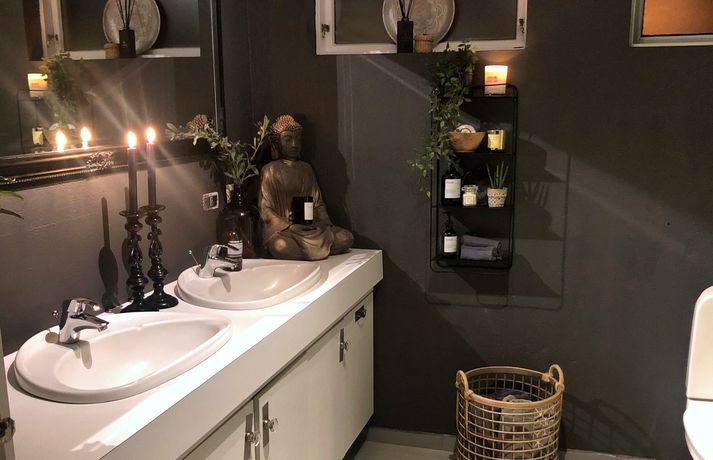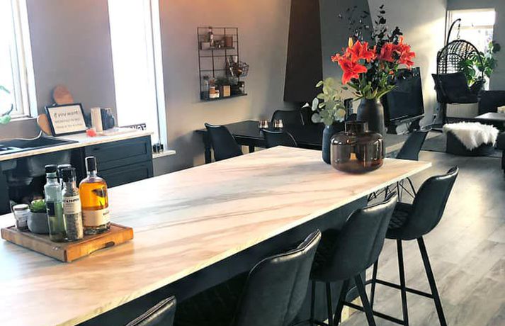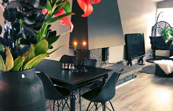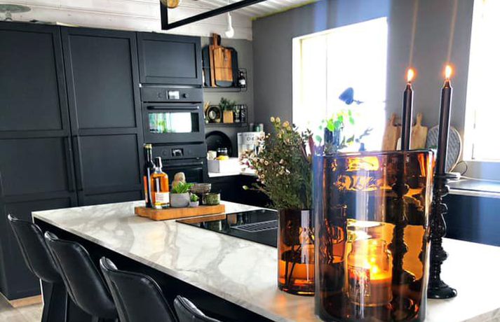 Svana gjörbreytti húsinu: „Mér finnst ég búa á hóteli“ Sylvía Rut Sigfúsdóttir skrifar 10. mars 2020 14:03 Svana Símonar keypti sér einbýlishús í nóvember og gerði það upp í sínum stíl. Mynd/Svana Svana Símonar og Ríkarð Svavar Axelsson keyptu sér hús á síðasta ári og gerðu ýmsar breytingar áður en þau fluttu inn. Svana deildi útkomunni í Facebook hópnum Skreytum hús og vakti það mikla athygli. Hjónin eru hrifin af svörtu og völdu meðal annars að skipta út hvítri eldhúsinnréttingu fyrir svarta. „Við byrjuðum framkvæmdir 29. nóvember og fluttum inn þremur vikum seinna, korter í jól,“ segir Svana í samtali við Vísi. „Vorum þá búin að rífa alla veggi í eldhúsi og stofu, parketleggja með hjálp frá Vigni mági mínum snillingi og mála alla hæðina, brjóta niður fyrir nýju hurðargati og fylla upp í annað. Svo vorum við búin að koma eldhúsinnréttingunni upp með hjálp frá smið. Ég sá samt um að skrúfa allar skúffur og skápa saman með hjálp frá vinum.“ Svana segir að þau hjónin hafi reynt að mála í stað þess að henda en þurftu þó að brjóta niður veggi til þess að opna rýmið.Mynd/Svana Hjónin eru í fullri vinnu og gerðu þetta með börnin en sjá ekki eftir því að hafa farið af stað í þetta krefjandi verkefni. „Ég mæli ekki endilega með þessu en með jákvæðni og dass af þolinmæði tókst þetta,“ segir Svana. Þau breyttu eldhúsinu, ganginum, baðherberginu og svefnherberginu sínu síðustu mánuði en reyndu að láta framkvæmdirnar vera ekki of kostnaðarsamar. Svefnherbergisgangurinn fyrir og eftir breytingar. Mynd/Svana Svana hefur áður breytt húsi á Akureyri með ódýrum og sniðugum lausnum. Fjallað var um breytingarnar á Vísi fyrir tveimur árum. Sjá einnig - Tóku hús í gegn á Akureyri: Það þarf ekki að vera dýrt að gera heimilið fallegra Svarti liturinn er í miklu uppáhaldi hjá Svönu.Mynd/Svana „Við tókum bara í gegn það sem var komið á tíma og þurftum að gera, nýttum allt sem hægt var að nýta, eins og á baðinu og allar hurðar.“ Svana valdi að lakka flísarnar í stað þess að brjóta þær upp og setja nýjar.Mynd/Svana Svana vandaði einstaklega mikið litavalið á rýminu, til þess að láta það henta betur þeirra stíl. „Litapallettan er úr Sérefni, þeir heita deep sarcelles á alrýminu, dark sarcelles á baðinu og arninum, intence sarcelles í svefnherberginu. Dásamlegir og hlýir að mínu mati. Mér finnst ég búa á hóteli. Ég lakkaði múrsteinavegginn með lakki frá Sérefni sem heitir superfinish og það kom út eins og flauelsáferð, mjög töff. Við máluðum hurðar með superfinish og baðflísarnar með wapex 660“ Svefnherbergið er dökkt og kósýMynd/Svana Hún er ánægð með allar breytingarnar sem þau gerðu og á erfitt með að velja hvað stendur upp úr. „Ég myndi líklega vera alltaf inn í svefnherbergi ef það væri í boði en annars er ég rosalega glöð með eldhúsið okkar. Skápaplássið er geggjað og það er orðið virkilega gaman að elda.“ Borðplatan í eldhúsinu er filmuð spónaplata.Mynd/Svana Hún bætir því svo við að reyndar sé það eiginmaðurinn sem eldi oftast. „Það er vel hægt að gera fallegt án þess að rífa allt út, málningin gerir kraftaverk,“ segir Svana að lokum. Áhugasamir geta fylgst með Svönu á Instagram. Mest lesið Fékk hvorki að setja eigið nafn né dulnefni á þættina sína Lífið Fyrrverandi ráðherra Dana: „Þið voruð aldrei nýlenda“ Menning Svona er kynlífsþjónusta á Íslandi Lífið Klæddi sig upp sem hjákona eiginmannsins Tíska og hönnun Stjörnulífið: „Ef fólk hættir að gagnrýna mig svelt ég“ Lífið Dagur Sig genginn í það heilaga Lífið Leikstýrir kærastanum í stærsta harmleik sögunnar Lífið Hefur farið í gegnum sambandsslit, gjaldþrot og fjárkúgunarmál frammi fyrir þjóðinni Lífið Ljúffengir hafraklattar með kaffinu Lífið Kyngdi stoltinu og fjölmargir buðu fram nýra Lífið Fleiri fréttir Stjörnulífið: „Ef fólk hættir að gagnrýna mig svelt ég“ Hefur farið í gegnum sambandsslit, gjaldþrot og fjárkúgunarmál frammi fyrir þjóðinni Leikstýrir kærastanum í stærsta harmleik sögunnar Fékk hvorki að setja eigið nafn né dulnefni á þættina sína Spenna á rafíþróttaæfingu fyrir eldri borgara Dagur Sig genginn í það heilaga Svona er kynlífsþjónusta á Íslandi Tók tíu klukkustundir að komast í búninginn Krakkatían: Dóra landkönnuður, Neyðarlínan og „borgin eilífa“ Kyngdi stoltinu og fjölmargir buðu fram nýra Tchéky Karyo látinn Stjörnurnar á hrekkjavökunni: Louvre-þjófur og vampírur Fréttatía vikunnar: Ríkislögreglustjóri, fellibylur og rasisti Láta forræðishyggju hinna fullorðnu ekki fipa sig Heillandi raðhús Evu Maríu og Trausta til sölu Nýr skemmti- og spjallþáttur á Sýn Fundin eftir sjö vikur á vergangi: „Takk hver sem þú ert“ Fresta hrekkjavöku til að tryggja öryggi lítilla skrímsla Stjörnurnar skinu skært á sögulegum sjónvarpsverðlaunum Atli Steinn fann ástina á ný „Síðasta flugtak“ Play í Gamla bíói Már Gunnars genginn út Verk Þórdísar Erlu munu prýða auglýsingaskilti borgarinnar Steingleymdi að taka niður sólgleraugun Hvenær má byrja að spila jólalög? Stílhrein og stílíseruð útsýnisíbúð við Heiðmörk Ískyggilega líkur ofurfyrirsætu: „Ég er með píku“ „Get ekki gengið óstudd og framundan er mikil endurhæfing“ Ótrúlegur bílskúr Hönnu Rúnar: „Hvar ertu?“ Lét flúra brúðkaupsdaginn á sig en gerði mistök Sjá meira