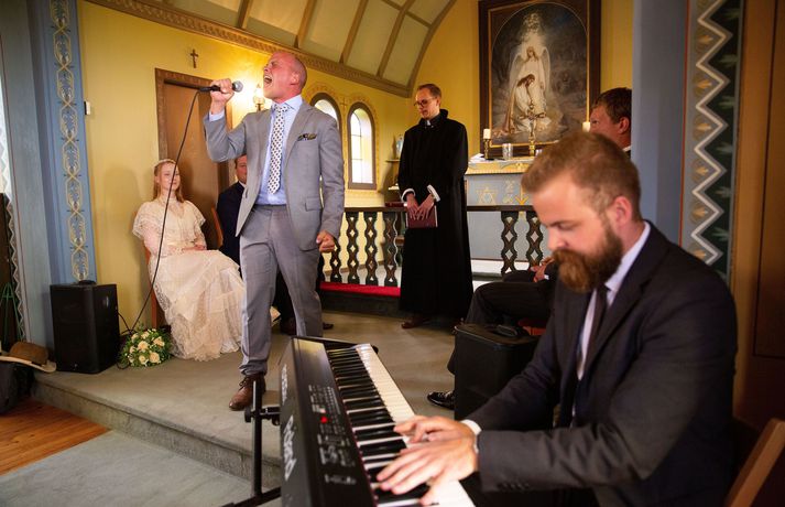 Um 90 manna vinahópur hélt nú um helgina upp á sveitabrúðkaup þeirra Gumma og Urðar við mikinn fögnuð. Athöfnin fór fram í Oddakirkju rétt hjá Hvolsvelli og veislan á hóteli þar nærri. Það er svo sem ekki í frásögur færandi að ungt par hafi ákveðið að ganga í það heilaga en það sem vekur athygli er að enginn gifti sig í raun og veru. Brúðhjónin voru í raun áhugaleikarar og vinahópurinn fékk hlutverk hinna ýmsu persóna í veislunni. Nokkrir meðlimir vinahópsins ákváðu í vor að taka sig til og skipuleggja veislu sem allra flestir meðlimir í þessum stóra vinahópi kæmust í. Þá kom ákveðin spurning upp. Við hvaða tilefni getur fólk kastað öllu frá sér á stuttum tíma, fengið frí í vinnu og pössun fyrir börnin? Svarið var að sjálfsögðu hjónavígsla og hófst þá undirbúningur þessarar stórglæsilegu brúðkaupsveislu. View this post on Instagram Besta dag í livið okkur #gurdur2020 A post shared by @ urduroggummi on Jul 25, 2020 at 12:26pm PDT „Ég er einn af góðum hópi manna og kvenna sem var að standa fyrir þessu sveitabrúðkaupi þar sem við í raun settum á svið brúðkaup, fengum leikara til að taka að sér hlutverk brúðhjóna. Hugmyndin kviknaði fyrst vegna þess að það er búið að vera að aflýsa brúðkaupum og enginn í vinahópnum er að fara að gifta sig í sumar. Við vildum henda í eitthvað gott kvöld með stórvinahópnum, það er langt síðan fólk kom allt saman,“ segir Ísak Einar Rúnarsson, einn skipuleggjenda veislunnar. Staðgengill prests verður hér eftir kallaður Sigurður hinn Helgi Út voru send boðskort í brúðkaup þeirra Gumma og Urðar – sem auðvitað enginn í hópnum kannaðist við – og hótel og kirkja voru tekin á leigu fyrir herlegheitin. Áhugaleikarar voru ráðnir í hlutverk brúðhjóna og prests og undirbúningur tónlistaratriða, ræðuhalda og annarra fastaliða í brúðkaupsveislum hófst. View this post on Instagram Best vinir okkur #gurdur2020 A post shared by @ urduroggummi on Jul 25, 2020 at 12:28pm PDT „Fólk vissi ekkert hvað á sig stóð veðrið þegar þetta kom í pósti. Við vorum ekki búin að láta þau vita að það stæði til að halda eitthvað brúðkaup og náttúrulega enginn þekkti þau sem ætluðu að gifta sig,“ segir Ísak. Á boðskortunum var svokallaður QR kóði sem fólk gat skannað og opnaðist þá viðburður á Facebook þar sem veislan var útskýrð. „Þá kom aðeins betur í ljós hvernig í pottinn var búið,“ segir Ísak. View this post on Instagram Kórdrengir fagna ástinni í brúðkaupi aldarinnar. #gurdur2020 photocred: @broderlund A post shared by Birkir Grétarsson (@birkirgretars) on Jul 27, 2020 at 5:57am PDT Þrátt fyrir að fæstir í hópnum vissu hverjir Gummi og Urður væru slógu flestir til og mættu prúðbúnir til kirkju. Hátt í áttatíu manns mættu til veislu sem haldin var á Hvolsvelli. Sóknarpresturinn í Odda, Elína Hrund Kristjánsdóttir, leyfði hópnum að halda hjónavígsluna í kirkjunni og ávarpaði hún brúðkaupsgesti þegar til kirkju var komið. „Svo var einn úr hópnum, Sigurður Helgi, hér eftir kallaður Sigurður hinn Helgi sem tók að sér hlutverk prests og gaf þau bara í þykjustunni saman. Það var farið með alla ritninguna.“ View this post on Instagram #gurdur2020 A post shared by @ skurdur91 on Jul 26, 2020 at 12:47pm PDT „Svo var þetta bara með hefðbundnu sniði. Einn úr hópnum sem er píanóleikari, Jón Birgir Eiríksson, spilaði undir þegar brúðurin gekk inn kirkjugólfið og það var í raun í fyrsta skipti sem fólk sá hana. Einn úr vinahópnum leiddi hana inn, var með hlutverk föður brúðarinnar. Þau þekktu hann en ekki brúðina sjálfa.“ „Heppnaðist alveg stórkostlega“ Leikararnir sem fóru með hlutverk brúðhjóna, þau Fannar Arnarsson og Gréta Arnarsdóttir, voru í karakter allt kvöldið. „Þau blönduðu geði við gestina. Svo tóku þau lagið, sungu til hvors annars „Don‘t Go Breaking My Heart,“ Elton John dúettinn. Það var alveg geggjað!“ segir Ísak. Áhugamannakór vinahópsins, sem ber nafnið Miðkórinn, söng þegar brúðhjónin gengu út kirkjugólfið að lokinni „hjónavígslu“. Aðrir meðlimir hópsins höfðu fengið hin ýmsu hlutverk, hlutverk systur brúðarinnar og svaramanns og fluttu þau ræður um brúðhjónin og „kynni“ sín af þeim. „Þau bjuggu til baksögu fyrir brúðhjónin sem var þrædd inn í það sem vinahópurinn hefur gengið í gegn um saman þannig að það var hægt að tengja þau inn í alls konar atburði, gera grín að gestunum og svona.“ Hann segir stemninguna hafa verið gríðarlega góða. Fólk hafi vissulega verið hissa en mikil stemning hafi skapast. „Maður fann það líka bara áður en að þetta byrjaði að það voru allir tilbúnir að redda hinu og þessu því það þurfti að redda öllu sem þarf að redda fyrir hefðbundið brúðkaup hér um bil. Svo voru bara allir rosalega glaðir og kátir í veislunni og athöfninni sjálfri. Þetta heppnaðist alveg stórkostlega.“ „Hafa talað um fermingar eða jafnvel erfidrykkjur“ Ísak segir hugmyndina að veislunni hafa fæðst í byrjun júní og skipulagning veislunnar hafi því tekið um einn og hálfan mánuð. „Þetta var alveg svolítið mál en það var margt fólk sem lagði hönd á plóg. Það voru allir tilbúnir til að græja og gera og við njótum þess að hafa mikið af hæfileikaríku fólki í vinahópnum sem gat tekið að sér allskonar hlutverk og reddingar.“ Einn meðlimur hópsins tók jafnframt að sér hlutverk æskuástar brúðarinnar og tók hann lagið fyrir brúðhjónin. Hann flutti lagið „Álfheiður Björk“ eftir Eyjólf Kristjánsson. „Það var ákveðinn kýtingur á milli hans og brúðgumans í veislunni,“ segir Ísak. Hann segir engar áætlanir li