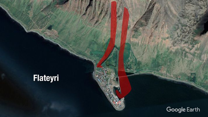 Tómas Jóhannesson, fagstjóri ofanflóðavarna hjá Veðurstofu Íslands, lýsir snjóflóðinu sem kom úr Skollahvilft fyrir ofan Flateyri á þriðjudagskvöld eins og teppi niður hlíðina sem var allt á mjög mikilli ferð. Meginkjarni flóðsins hafi svo farið eins og boxsleði í halla upp á varnargarðinn og sveigt svo niður meðfram garðinum. „Þannig að þessi þungi straumur, sem lendir svo í höfninni og út í sjó hinu megin, hann er aðalsnjóflóðið. En massinn sem er þarna við garðinn er bara svo þykkur og mikill. Þetta teppi ýtist upp garðhliðina af þessum hraðfara kjarna sem streymir meðfram garðinum. Þetta flæðir yfir garðinn eins og svona teppi eða gusa en það er í rauninni að flæða yfir garðinn í ákveðinn tíma á meðan allra hraðfarasti hluti flóðsins flæðir meðfram garðinum. Svo kemur halinn á eftir og rennur áfram meðfram garðinum,“ segir Tómas.Sjá einnig: Varnargarðarnir á Flateyri ekki hannaðir fyrir flóð sem fer á allt að 200 kílómetra hraða Kollegi Tómasar hjá ofanflóðavörnum Veðurstofunnar, Auður Elva Kjartansdóttir, sagði í samtali við fréttastofu í gærmorgun að eins konar öldugangur hafi verið í flóðinu sem olli því að það skvettist yfir varnargarðinn. Tómas segir að flóðið sé ekki eins og sjávarbylgja sem fari yfir garðinn í nokkrum gusum. „Heldur er þetta hraðfara massi sem kemur í einu höggi og hluti af honum slæðist yfir garðinn. Og það sem fer yfir garðinn er miklu þynnra. Þessi tunga sem er sitthvoru megin við garðinn er í raun og veru mjög lítill hluti af flóðinu. Hún er kannski hálfur metri að þykkt víðast hvar. Það er meira en nógu þykkt til að valda mikilli slysahættu og alveg stórhættulegt að þetta fari yfir garðinn en hið eiginlega risastóra flóð fer nánast að öllu leyti meðfram garðinum. Það á við á báðum stöðum,“ segir Tómas og vísar í hitt flóðið á Flateyri á þriðjudagskvöld sem kom úr Innra-Bæjargili og flæddi líka yfir varnargarð. Almenna öryggið til langs tíma eitthvað sem þarf að skoða Hann segir enga hættu á því varnargarðarnir sem slíkir eyðileggist í snjóflóði. Þeir séu hluti af landslaginu og meira eða minna frosnir. Þá hafi þeir sigið og þjappast og séu eins og hvert annað form í landslagi. „Snjóflóð bera með sér grjót og eru mjög öflug fyrirbæri sem móta landslag og býr til ákveðnar hrúgur af frambornu grjóti í tíðustu snjóflóðafarvegum en snjóflóð rjúfa ekki í burtu heilu fjöllin eða garðana,“ segir Tómas. En í ljósi þess að flóðin fóru bæði yfir varnargarðana má spyrja hvort að Flateyringar séu í raun öruggir með þessa garða fyrir ofan byggðina. „Almenna öryggið þarna til langs tíma er eitthvað sem við þurfum að skoða í sambandi við þessa endurskoðun á hættumatinu. En snjóflóð falla ekki af himnum ofan. Það þarf snjósöfnun og nú eru þessi flóð fallin og þau hafa tæmt upptakasvæðið. Þótt það sé margt á huldu í þessum fræðum, og við þurfum greinilega að endurskoða þarna ákveðna hluti, þá vitum við að svona snjóflóðahrina verður ekki nema með ákveðnum aðdraganda, það þarf skafrenning og mikla snjókomu og þangað til það kemur næsta snjóflóðahrina þá er ekki hætta á því á Flateyri að það fari annað flóð yfir garðana og ógni þessum húsum sem eru undir görðunum,“ segir Tómas og bendir í þessu samhengi á að starfsmenn Veðurstofunnar hafi farið í dag til mælinga upp í fjallið. Það væri ekki gert ef hætta væri á öðru stóru flóði.