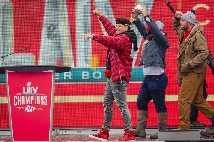 NFL Ofurskálin Tengdar fréttir „Að horfa á Mahomes er eins að horfa á Denzel í kvikmynd eða LeBron í úrslitakeppninni“ Það er óhætt að segja að liðsfélagar Patrick Mahomes séu ánægðir með sinn mann en þessi 24 ára strákur leiddi endurkomu Kansas City Chiefs í Super Bowl leiknum í nótt. 3. febrúar 2020 14:30 Úr blokkaríbúð í Mosfellsbæ yfir í þessa villu í Kansas Patrick Mahomes leiddi Kansas City Chiefs til sigurs í NFL-deildinni á sunnudaginn þegar liðið vann San Francisco 49ers í Super Bowl í Miami. 5. febrúar 2020 11:30 Tengdasonurinn með tilþrif á titilhátíðinni Patrick Mahomes er ekki aðeins frábær að henda því hann er líka frábær að grípa eins og sást í sigurskrúðgöngu Kansas City Chiefs í gær. 6. febrúar 2020 13:00 Nýbakaður Super Bowl-meistari var of stór fyrir rúmin í Mosfellsbæ og þurfti að sofa á sófanum Sigurbjartur Sigurjónsson í Mosfellsbæ hýsti Patrick Mahomes, nýbakaðan Super Bowl meistara, í Mosfellsbæ fyrir þremur árum síðan. 3. febrúar 2020 20:00 Sá yngsti frá upphafi til að ná því að verða bæði bestur í NFL og NFL-meistari Patrick Mahomes leiddi Kansas City Chiefs til sigurs í Super Bowl og það kom fáum á óvart að hann hafi verið kosinn mikilvægasti leikmaður úrslitaleiksins. Með því skrifaði hann NFL-söguna. 3. febrúar 2020 03:48 Mahomes ætlar að halda upp á titilinn með því að fara í Disney World Patrick Mahomes átti sér draum og hann rættist í gær tæpum sjö árum eftir skemmtilega Twitter færslu hjá kappanum. 3. febrúar 2020 11:45 Tengdasonur Mosfellsbæjar leiddi endurkomuna og lið Höfðingjanna til sigurs í Super Bowl Kansas City Chiefs fagnaði sínum fyrsta NFL-titli í hálfa öld í nótt þegar liðið vann 31-20 sigur á San Francisco 49ers í Super Bowl í Miami. Leikurinn var frábær skemmtun þar sem sigurvegararnir litu ekki alltof vel út þegar langt var liðið á lokaleikhlutann. 3. febrúar 2020 03:16 Mest lesið Stór nöfn úr leik á HM í pílukasti Sport Dómarinn hlýtur mikið lof fyrir stundarbræði í garð Jake Paul og Joshua Sport Ronaldo á nærbuxunum lætur Elon Musk efast um sjálfan sig Fótbolti Gleði og sorg í sigri Liverpool Enski boltinn Slot fámáll um stöðuna á Isak Enski boltinn Calvert-Lewin hættir ekki að skora Enski boltinn Donni fagnaði EM vali með skotsýningu Handbolti Körfuboltakvöld: Tilþrif tímabilsins til þessa Körfubolti Gyökeres skaut Arsenal aftur á toppinn Enski boltinn Madrídingar anda ofan í hálsmálið á Börsungum Fótbolti Fleiri fréttir Dagskráin í dag: Stjörnur eiga leik á HM, NFL og enski Dómarinn hlýtur mikið lof fyrir stundarbræði í garð Jake Paul og Joshua Stór nöfn úr leik á HM í pílukasti Madrídingar anda ofan í hálsmálið á Börsungum Calvert-Lewin hættir ekki að skora Gyökeres skaut Arsenal aftur á toppinn Ronaldo á nærbuxunum lætur Elon Musk efast um sjálfan sig Orri Steinn kominn með nýjan þjálfara Slot fámáll um stöðuna á Isak Gleði og sorg í sigri Liverpool Real Madrid - Sevilla | Tekst að róa ástandið fyrir jól? Willum spilaði sinn fyrsta leik í tæpa fjóra mánuði Donni fagnaði EM vali með skotsýningu Dramatík er Broja reyndist hetja Burnley Haaland frábær er Manchester City komst á toppinn Sigvaldi Björn fjarri góðu gamni í sjaldséðu tapi Kolstad Skagastrákarnir áttu misjöfnu gengi að fagna Guðrún Brá tveimur höggum frá því að öðlast fullan keppnisrétt á LET Afríkukeppnin verður haldin á fjögurra ára fresti Andri Lucas skoraði í langþráðum sigri Blackburn Chelsea vann upp tveggja marka forskot á St James' Park Eva Björk með stórleik í fyrsta sigri Stjörnunnar Ekkert fararsnið á Guardiola sem segir að City verði að vera undirbúið Gagnrýndi Paul: „Beið eftir að verða sleginn“ Tíu bestu mörkin úr leikjum Liverpool og Tottenham Rekinn af HM eftir að hafa fallið á lyfjaprófi „Hann er ein stærsta ástæðan fyrir því“ Joshua kjálkabraut Paul KA-menn fengu góða jólagjöf Salah bað samherjana afsökunar Sjá meira