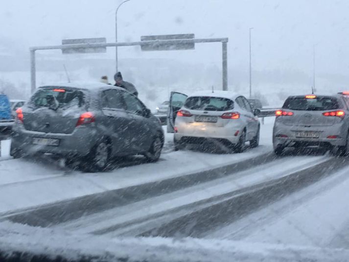 Árekstrar á Reykjanesbrautinni Kolbeinn Tumi Daðason skrifar 29. febrúar 2020 17:22 Töluverð snjókoma hefur verið á suðvesturhorninu seinni partinn í dag. Vísir Tveir voru fluttir minniháttar slasaðir á slysadeild eftir árekstur jeppa og bíls á Reykjanesbrautinni nærri Mjóddinni síðdegis í dag. Samkvæmt upplýsingum frá slökkviliðinu á höfuðborgarsvæðinu hefur verið nokkuð um óhöpp í snjónum á höfuðborgarsvæðinu í dag. Sem betur fer hafa ekki orðið alvarleg slys á fólki. Þó nokkrar tafir urðu á umferð á Reykjanesbrautinni seinni partinn í dag vegna þessa. Lögregla og slökkvilið hafa sinnt þó nokkrum útköllum vegna óhappa á höfuðborgarsvæðinu.Vísir Reykjavík Samgönguslys Umferðaröryggi Veður Mest lesið Sextán ára fékk greitt fyrir að færa Epstein stúlkur Erlent Milljónir til almannatengla og átta sinnum meira en í fyrra Innlent Systir og amma drengs í meðferð létust í Suður-Afríku Innlent Ljósmyndir horfnar úr Epstein-skjölunum, þar á meðal ein af Trump Erlent „En hver sagði að þetta ætti að vera auðvelt?“ Innlent Grunuð um að koma til landsins til að brjóta á öldruðum Innlent Eyjólfur í orlof og Inga þrefaldur ráðherra Innlent Sex hundruð miðar á vettvangi morðsins: „Fokking hálfvita fífl bæði tvö!!!!“ Innlent Bindur vonir við Vor til vinstri Innlent „Við erum pottþétt að koma út í mínus, hversu miklum vitum við ekki“ Innlent Fleiri fréttir Eyjólfur í orlof og Inga þrefaldur ráðherra Vegagerðin segir flóðin í Vík fyrirséð Fjölmiðlar, bókmenntir og hægrimennska á Sprengisandi „En hver sagði að þetta ætti að vera auðvelt?“ Milljónir til almannatengla og átta sinnum meira en í fyrra Grunuð um að koma til landsins til að brjóta á öldruðum Leggja hald á skip á alþjóðahafsvæði undan ströndum Venesúela Bindur vonir við Vor til vinstri Systir og amma drengs í meðferð létust í Suður-Afríku „Við erum pottþétt að koma út í mínus, hversu miklum vitum við ekki“ „Þetta er alveg ásættanlegur samningur“ Deildi nöfnum skjólstæðinga á Instagram Íslendingar þægileg fórnarlömb fyrir vasaþjófa „Að öllu óbreyttu mun þjóðvegurinn fara í sundur“ Vonbrigði í Vík og rýnt í Epstein-skjölin Morgundagurinn sá stysti á árinu Langtímaleigan 23 þúsund krónum dýrari á ári Grenjandi rigning og hífandi rok á aðfangadag Reyndi að komast inn á lögreglustöð með fíkniefni Svona á að raða í uppþvottavélina „Verður vonandi til að styrkja íslensku einkareknu miðlana“ Talinn hafa komið til landsins til að stela Snorkstelpan snýr aftur eftir ágreining um höfundarrétt Framlög til einkarekinna fjölmiðla næstum tvöfaldast Meðferð við spilafíkn loks niðurgreidd af Sjúkratryggingum Kílómetragjaldið bitni helst á sparneytnum eldsneytisbílum Tvær íslenskar konur létust í umferðarslysinu í Suður-Afríku Íslendingar lentu í alvarlegu slysi í Suður-Afríku Stóraukið fjármagn til Frú Ragnheiðar Standi ekki til að leggja niður Rás 2 þrátt fyrir boðaða heimild Sjá meira