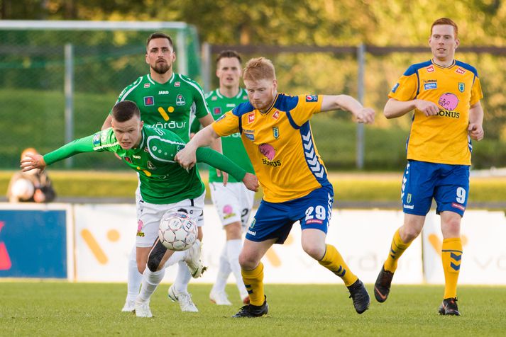 Fjölnir vann Val á Hlíðarenda og Eyjamenn gerðu góða ferð í Garðabæinn Ingvi Þór Sæmundsson skrifar 22. febrúar 2020 13:55 Guðmundur Karl skoraði fyrir Fjölni í sigrinum á Val. vísir/bára Fjölnir sigraði Val, 2-3, á Hlíðarenda í riðli 4 í A-deild Lengjubikars karla í fótbolta. Fjölnismenn komust í 0-2 eftir 33 mínútur með mörkum Hallvarðar Óskars Sigurðssonar og Guðmundar Karls Guðmundssonar. Birkir Már Sævarsson minnkaði muninn á 68. mínútu en Hallvarðar skoraði annað mark sitt og þriðja mark Fjölnis á 77. mínútu. Tveimur mínútum síðar minnkaði Patrick Pedersen muninn í 2-3 en nær komust Valsmenn ekki. Eyjamenn eru með fullt hús á toppi riðils 4 eftir 1-2 sigur á Stjörnunni í Garðabænum. HK komst upp í 2. sæti riðils 3 með 2-0 sigri á Þrótti R. í Kórnum. Leifur Andri Leifsson og Ásgeir Marteinsson skoruðu mörk HK-inga. Upplýsingar um úrslit og markaskorara eru fengnar frá úrslit.net. Inkasso-deildin Pepsi Max-deild karla Mest lesið Sakaður um svindl á HM í pílukasti Sport Hleður Kjartan lofi eftir frábæra frumraun með Aberdeen Fótbolti Óttast að Isak hafi fótbrotnað Enski boltinn Ótrúleg tíðindi á HM í pílukasti: „Mikið sjokk“ Sport Hjalti Þór ráðinn aðalþjálfari Álftaness Körfubolti HM í pílu: Littler flaug áfram og kvöldinu lauk með spennutrylli Sport Túfa gerir þriggja ára samning í Svíþjóð Fótbolti Körfuboltakvöld: Tilþrif tímabilsins til þessa Körfubolti Arnór Ingvi orðinn leikmaður KR Íslenski boltinn Albert skoraði í fyrsta sigri Fiorentina Fótbolti Fleiri fréttir Arnór Ingvi orðinn leikmaður KR Breiðablik kaupir Jónatan frá Norrköping Elías mættur til meistaranna KR sagt vera að landa Arnóri Ingva Hilmar Árni til starfa hjá KR Segir fjórðung í bók Óla ósannan Víkingur í úrslit Bose-bikarsins eftir sigur „Verið heiður að spila í appelsínugulu með frábærum liðsfélögum“ Þekkir Egilshöllina vel og skoraði gegn fyrrum félögum Strákar Heimis Guðjóns fengu slæman skell í fyrsta leik Axel verður áfram hjá Aftureldingu Kveður pabba sinn í Laugardalnum og fer til FH „Félag sem var í basli með að ná endum saman og greiða laun á réttum tíma“ Skrýtið og taktlaust: „Ég er ekkert sátt með niðurstöðuna“ Fanndís kveður sviðið: „Ég er búin að fella nokkur tár“ Gylfi með tvö og Víkingar byrja á sigri Frá Akureyri til Danmerkur Markadrottningin heldur að landsliðið sé búið spil Strákarnir í 2. flokki Vals þeir einu sem ekki spila fyrir áramót Dæturnar vildu norður: „Mun alltaf gera allt fyrir þær“ Stjarnan sækir markvörð í 3. deildina „Ég var orðinn algjörlega bugaður“ Jónatan áfram á Hlíðarenda: „Var alltaf jákvæður fyrir því að framlengja“ Óli Jó kallar ráðninguna á Jóa Kalla algjört bull „Ég elska þig Ísland, takk fyrir allt!“ Sextán ára með fernu fyrir meistara Víkings Valur dregur sig úr Bose-bikarnum „Sagði bara við hann: Djöfulsins fíflið þitt“ Yngir upp í allt of gamalli deild Þróttur keypti Adam Árna frá Grindavík Sjá meira