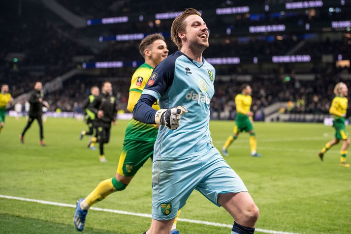 Svona komust Manchester City, Leicester og Norwich áfram í enska bikarnum í gær Óskar Ófeigur Jónsson skrifar 5. mars 2020 10:45 Tim Krul var hetja Norwich City í bikarsigrinum á Tottenham í gærkvöldi. Getty/Sebastian Frej Manchester City, Leicester og Norwich komust öll í átta liða úrslit ensku bikarkeppninnar í gærkvöldi. Manchester City og Leicester unnu bæði 1-0 sigra en Norwich vann Tottenham í vítakeppni. Vísir er með öll mörkin og vítaspyrnukeppnina. Aðeins eitt sæti er nú laust en áður höfðu Arsenal, Chelsea, Sheffield United og Newcastle United öll unnið sína leiki í sextán liða úrslitunum. Lokaleikurinn er síðan í kvöld þegar Derby County tekur á móti Manchester United. Ricardo Pereira skoraði sigurmark Leicester City í 1-0 sigri á b-deildarliðinu Birmingham City en markið kom átta mínútum fyrir leikslok. Sergio Agüero skoraði eina mark Manchester City í 1-0 útisigri á b-deildarliðinu Sheffield Wednesday en sigurmarkið hans kom á 53. mínútu. Tottenham Hotspur og Norwich City gerðu 2-2 jafntefli á heimavelli Tottenham liðsins en Norwich City vann 3-2 í vítakeppni. Liðsmenn Tottenham klikkuðu á þremur spyrnum þar af varði Tim Krul tvær þeirra.Liðin sem mætast í átta liða úrslitunum eru: Sheffield United - Arsenal Newcastle United - Manchester City Norwich City - Derby County eða Manchester United Leicester City - Chelsea Hér fyrir neðan má sjá mörkin úr þessum þremur leikjum og svo líka vítakeppnina á Tottenham Hotspur Stadium. Klippa: Mörkin úr bikarleik Tottenham og Norwich Klippa: Manchester City áfram í enska bikarnum Klippa: Leicester City áfram í enska bikarnum Enski boltinn Mest lesið Arnar Daði rekinn frá Stjörnunni en áfram þjálfari kvennaliðsins Handbolti Koepka fyrsta stjarnan sem riftir samningi við LIV Golf Ótrúlegur sigur á HM: „Ég er mjög tregur svo pressan nær ekki til mín“ Sport „Þetta er stærsti klúbbur Íslands“ Íslenski boltinn Man. Utd reyndi stíft en Semenyo kaus City Enski boltinn Þessi tíu eru tilnefnd sem Íþróttamaður ársins 2025: 23 ára aldursmunur Sport Sagan ekki sönn: „Veit ekki hvaðan þetta á að hafa komið“ Íslenski boltinn Öll höllin æpti nafn Gísla í spennutrylli Handbolti Stefndi á ÓL en fannst látinn á hótelherbergi Sport Ekkert spilað í vetur en gæti mætt Íslandi í fyrsta leik á EM Handbolti Fleiri fréttir Arsenal í undanúrslit eftir vító Man. Utd reyndi stíft en Semenyo kaus City „Tölfræðilega séð eiga þeir ekkert að vera í þessari stöðu“ Chelsea setur sig í samband við Semenyo Jiménez jafnaði bestu vítaskyttu sögunnar Slot mun sakna Isak í tvo mánuði eftir „glórulausa tæklingu“ Sjáðu „auma“ vítið sem skilaði Fulham sigri Fulham skildi Forest eftir við fallsvæðið Áfallið staðreynd og Isak búinn í aðgerð Fagnaði titli Liverpool sem óður maður um alla borg „Allir virðast elska hann“ „Þetta mun ekki buga okkur“ Guardiola mun vigta leikmenn Man City eftir jólin „Ef þið væruð Antoine Semenyo, hvert mynduð þið fara?“ Sjáðu mörkin: Rogers sá um Manchester United Óttast að Isak hafi fótbrotnað Tvenna frá Rogers tryggði Villa sigur gegn Manchester United Fimmta sinn sem Arsenal er á toppnum um jólin: Unnu ekki titilinn í fyrstu fjögur skiptin „Viljum við að okkar verði minnst fyrir að vera skræfur?“ „Ef dómarinn hefði sinnt sínu starfi almennilega hefði Romero ekki fengið spjald“ Haaland gaf barnabarni Hareide gjöf Sjáðu mörkin úr enska: Sviptingar, sænskt þema og svakalegar tæklingar Calvert-Lewin hættir ekki að skora Gyökeres skaut Arsenal aftur á toppinn Slot fámáll um stöðuna á Isak Gleði og sorg í sigri Liverpool Dramatík er Broja reyndist hetja Burnley Haaland frábær er Manchester City komst á toppinn Andri Lucas skoraði í langþráðum sigri Blackburn Chelsea vann upp tveggja marka forskot á St James' Park Sjá meira