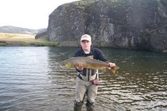 Urriðaveiðin að toppa á Þingvöllum Karl Lúðvíksson skrifar 9. maí 2020 08:35 Rígvænn urriði af ION svæðinu Mynd: Ion fishing FB Þingvallavatn hefur verið þétt setið af veiðimönnum undanfarna daga enda hefur verið að ganga vel að setja í stóra urriða. Það er nokkurn veginn sama hvar er drepið niður fæti en veiðin virðist þó vera langsamlega mest á ION svæðinu og við Kárastaði. Það eru líka að berast veiðifréttir af Villingavatnsárós, Svörtuklettum og svo við þjóðgarðinn en sem dæmi um veiðina þar voru þrír veiðimenn við Lambhaga sem fengu ellefu fiska þar í gærkvöldi. Lykilatriðið er að standa vaktina í það minnsta til miðnættis. Þeir fengu að sögn alla fiskana milli tíu og tólf um kvöldið og fyrir utan þá sem þeir náðu misstu þeir annað eins. Sá stærsti var 86 sm og allir nema einn yfir 70 sm. Einn var þó greinilega stærstur en hann stökk og sýndi sig nokkrum sinnum á meðan það var verið að þreyta hann. Sú barátta fór þannig að samskeytin við flotlínu og undirlínu slitnuðu í átökunum. Stangveiði Mest lesið Mikið af sjóbirting í Varmá Veiði Nýtt veiðihús klárt fyrir næsta sumar í Brynjudalsá Veiði Söluskrá SVFR komin út Veiði Stefnir í algjöra örtröð á hreindýrslóð Veiði Nýtt Sportveiðiblað komið út Veiði Nokkuð jöfn veiði í Eystri Rangá Veiði Eitt og annað um laxveiðina í sumar Veiði Meira bókað en söluaðilar áttu von á Veiði Stutt í 3.000 laxa í Eystri Rangá Veiði Góð byrjun í Haffjarðará Veiði