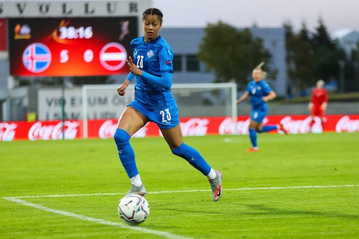 Sveindís Jane Jónsdóttir byrjaði A-landsliðsferill sinn frábærlega með því að skora tvö mörk í sínum fyrsta landsleik í 9-0 sigrinum á Lettlandi í undankeppni EM á Laugardalsvellinum í gær. Hún er sú fyrsta sem nær því í sögu íslenska kvennalandsliðsins. Sveindís Jane Jónsdóttir skoraði bæði mörkin á fyrstu 32 mínútum sínum með íslenska landsliðinu. Sveindís Jane átti reyndar mögulega á því að skora fleiri mörk í gær en hún var síógnandi og þá sérstaklega í fyrri hálfleiknum. Það hafa vissulega landsliðskonur skorað með sinni fyrstu snertingu eins og þær Margrét Lára Viðarsdóttir og Sandra María Jessen og þá tryggði Olga Færseth íslenska landsliðinu mikilvægan 1-0 útisigur í undankeppni EM í sínum fyrsta leik. Sveindís hefði viljað hafa fjölskylduna sína á staðnum en naut þess að spila fyrsta A-landsleikinn.https://t.co/fTvEsNiEgC— Sportið á Vísi (@VisirSport) September 17, 2020 Þær Bryndís Einarsdóttir og Ásta Breiðfjörð Gunnlaugsdóttir voru þær fyrstu en þær skoruðu báðar í fyrsta leik íslenska kvennalandsliðsins frá upphafi. Af þeim átta sem höfðu opnað markareikninginn sinn í fyrsta A-landsleiknum hafði engum þeirra tekist að skora meira en eitt mark. Sveindís Jane Jónsdóttir er ein af fimm sem skoruðu í fyrsta leik eftir að hafa verið í byrjunarliðinu. Þær Bryndís Einarsdóttir, Ásta Breiðfjörð Gunnlaugsdóttir, Olga Færseth og Andrea Rán Snæfeld Hauksdóttir gerðu það líka. Sveindís Jane skoraði sitt fyrsta mark á áttundu mínútu en það gerði Andrea Rán Snæfeld Hauksdóttir einnig. Bryndís, Ásta og Olga skoruðu allar í seinni hálfleik í sínum fyrsta leik. Rakel Björk Ögmundsdóttir, Margrét Lára Viðarsdóttir, Dóra María Lárusdóttir og Sandra María Jessen skoruðu aftur á móti eftir að hafa komið inn á sem varamenn í fyrsta landsleiknum sínum. Sandra María var aðeins búin að vera inn á í þrjár mínútur og Margrét Lára skoraði fjórum mínútum eftir að hún kom inn á völlinn. Dóra María skoraði fimm mínútum eftir að hún kom inn á sem varamaður. Rakel kom inn á sem varamaður í fyrri hálfleik en skoraði markið sitt í þeim síðari. Hér fyrir neðan má sjá hvaða knattspyrnukonur hafa skorað í sínum fyrsta A-landsleik. 1. Bryndís Einarsdóttir - 1981 á móti Skotlandi (2-3 tap) 2. Ásta Breiðfjörð Gunnlaugsdóttir - 1981 á móti Skotlandi (2-3 tap) 3. Olga Færseth - 1994 á móti Hollandi (1-0 sigur) 4. Rakel Björk Ögmundsdóttir - 1999 á móti Úkraínu (2-2 jafntefli) 5. Margrét Lára Viðarsdóttir - 2003 á móti Ungverjalandi (4-1 sigur) 6. Dóra María Lárusdóttir - 2003 á móti Póllandi (10-0 sigur) 7. Sandra María Jessen - 2012 á móti Ungverjalandi (3-0 sigur) 8. Andrea Rán Snæfeld Hauksdóttir - 2016 á móti Póllandi (1-1 jafntefli) 9. Sveindís Jane Jónsdóttir - 2020 á móti Lettlandi (9-0 sigur)