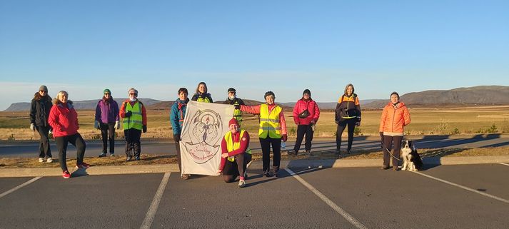 Gangandi kvenfélagskonur í Grímsnesi í allan dag Magnús Hlynur Hreiðarsson skrifar 10. október 2020 12:16 Konurnar tólf, ásamt hundi, sem lögðu af stað Sólheimahringinn í morgun klukkan 09:00. Þær reikna með að ljúka 24 kílómetra göngunni um klukkan 17:00 í dag. Kvenfélagskonur í Grímsnesi eru búnir að vera á gangi í alla morgun og ætla að ganga fram eftir degi en um er að ræða áheitagöngu þar sem þær ganga Sólheimahringinn, sem er tuttugu og fjórir kílómetrar. Félagið fagnaði hundrað ára afmæli á síðasta ári. Allt félagsstarf í kvenfélögum landsins liggur meira og minna niðri vegna Covid – 19 en þá þarf að huga út fyrir boxið eins og kvenfélagskonur í Kvenfélagi Grímsneshrepps hafa gert með því að ganga áheitagöngu úti í dag í góða veðrinu þar sem fjarlægðatakmörk verða virt og sóttvarnir hafðar í fyrirrúmi. Laufey Guðmundsdóttir er „Við ætlum að ganga 24 kílómetra, Sólheimahringinn svokallaða. Við byrjuðum í morgun klukkan níu og erum hérna að fikra okkur áfram hringinn. Við ákváðum að gera þetta því að við getum ekki hagað okkar starfsemi eins og vanalega, við gátum t.d. ekki haldið okkar árlegu Grímsævintýri og þar að leiðandi ekki tombólu og við reiknum ekki með að geta haldið jólabingó. Þetta eru okkar aðal fjáröflunarleiðir og við gefum alltaf alla afkomu til góðra málefna,“ segir Laufey. Laufey Guðmundsdóttir, formaður Kvenfélags Grímsneshrepps, sem er yfir sig stolt af konunum í félaginu, sem taka þátt í göngu dagsins.Einkasafn Það sem safnast í áheitagöngu dagsins rennur til „Sjóðsins góða“, sem er sjóður í Árnessýslu, sem úthlutað er út fyrir hver jól til þeirra sem eiga ekki fyrir nauðþurftum. „Við ætlu ekki bara að gefa það sem kemur inn á reikninginn, heldur ætlum við líka að veita ákveðið mótframlag, allt að fimm hundruð þúsundum frá kvenfélaginu sjálfu, þannig að þetta gæti verið ágætis búbót fyrir þá sem minna mega sín,“ bætir Laufey við. Tólf konur og einn hundur taka þátt í göngunni á öllum aldri. Laufey er stolt af sínu félagi og konum, enda ótrúlega vel gert og flott framtak hjá kvenfélaginu. „Já, það er náttúrlega alltaf gott að geta gefið af sér og það veitir manni hamingju og ef ekki í dag, hvenær eigum við að gera það,“ segir Laufey. Þeir sem vilja leggja málefninu lið og heita á konurnar í Grímsnesi geta lagt fram áheit á reikning félagsins, 0152-26-020958 og kennitalan er; 420389-1329 – skýring „áheit“. Kvenfélag Grímsneshrepps var stofnað 24.apríl 1919. Tilgangur félagsins er að efla samúð og samheldni kvenna í Grímsneshreppi. Vinna að menningar og líknarmálum innan sveitar og utan, eftir því sem þörf krefur og geta leyfir.Kvenfélag Grímsneshrepps Grímsnes- og Grafningshreppur Heilsa Mest lesið Fátækari eftir að hafa svindlað á ferðakonum Innlent Hvar er opið á aðfangadag? Innlent Tveir lögreglumenn sprengdir í loft upp Erlent Blússandi hagvöxtur í Bandaríkjunum Erlent Minni rekstrarkostnaður fyrir eigendur bensínháka Innlent Bæta við allt að 200 íbúðum og mathöll í Spöngina Innlent Foreldrar skipverjans fá áheyrn í Hæstarétti Innlent Maður í umferðarslysi reyndist fíkniefnasali Innlent Arion banki varar við svikaherferð Innlent Innflytjendamálin almenningi efst í huga Innlent Fleiri fréttir Gleðileg jól, kæru lesendur Einn fluttur á sjúkrahús eftir bílslys Skiluðu hagnaði á kosningaári Hátíðarveisla á kaffistofu Samhjálpar: „Það er ró og friður yfir fólki“ Björgunarsveitin kölluð út í fokverkefni Grjóthrun undir Eyjafjöllum Fátækari eftir að hafa svindlað á ferðakonum Arion banki varar við svikaherferð Innanlandsflugi aflýst Foreldrar skipverjans fá áheyrn í Hæstarétti Hvar er opið á aðfangadag? Innflytjendamálin almenningi efst í huga Bæta við allt að 200 íbúðum og mathöll í Spöngina Maður í umferðarslysi reyndist fíkniefnasali Minni rekstrarkostnaður fyrir eigendur bensínháka Hafnar „jólakveðju“ ríkisins Hefði þurft hjólbörur undir öll verðlaunin sín Ýmis ráð til taugatrekktra á Þorláksmessu Ekkert því til fyrirstöðu að Ásthildur Lóa verði aftur ráðherra Óvissa um ráðherraskipan og skata fyrir byrjendur Maðurinn fundinn Sigríður Halldórsdóttir nýr ritstjóri Kastljóss Íslendingur í gæsluvarðhaldi í Kólumbíu vegna gruns um kynferðisbrot Forsætisráðuneytið eyddi meiru í almannatengla í fyrra en í ár Inkalla snuð vegna of mikils magns BPA-plastefna Svanhildur Sif heiðruð Falskar netverslanir: Auglýsir rýmingarsölu nokkrum dögum eftir opnun Meðallaun upplýsingafulltrúa hækkuðu hlutfallslega mest Skötuilmurinn leggst yfir landið og Samkeppniseftirlitið ætlar að fylgjast vel með bensínverðinu Áfram auknar líkur á eldgosi Sjá meira