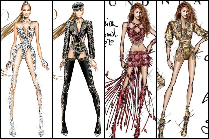 Það tók mörg hundruð klukkutíma að handsauma milljónir kristala og steina á búninga Shakiru og Jennifer Lopez fyrir rúmlega 14 mínútna hálfleikssýningu Ofurskálarinnar (e. Super Bowl). Undirbúningurinn byrjaði í september á síðasta ári. Shakira notaði þrjá mismunandi búninga og Lopez notaði alls fimm. Lopez er fimmtug en Shakira varð 43 ára í gær og hélt upp á afmælið á skemmtistað eftir leikinn en söngkonurnar hafa æft í marga mánuði fyrir atriði sitt. Shakira og Jennifer Lopez skiptu samtals átta sinnum um búning á sviðinu í nótt.Getty/Jeff Kravitz Lopez klæddist Versace búningum en á dögunum var tilkynnt að hún væri andlit vorherferðarinnar þeirra. Lopez fór aldrei út af sviðinu svo búningarnir voru í nokkrum lögum og fækkaði hún þeim á meðan sýningunni stóð. Öll fimm lúkkin voru frá Versace. Á einum tímapunkti klæddist hún tvískiptum fána en hann var gerður með handsaumuðum fjöðrum í bláu, rauðu og hvítu. Swarovski kristalar og steinar voru á öllum búningunum. Stílistar Lopez, Rob Zangardi og Mariel Haenn, sögðu í viðtali við The Hollywood Reporter að það hafi þurft að útbúa 213 búninga og 143 pör af skóm fyrir Lopez og 130 dansarana sem voru á sviðinu með þeim. Dóttir söngkonunnar á meðal þeirra sem komu á sviðið með henni. Stílistarnir hafa unnið með söngkonunni frá 2011. Það tók alls yfir mörg hundruð klukkustundir að festa þúsundir kristala á búningana og skóna. Mynd/Versace Mynd/Versace Mynd/Versace Mynd/Versace Mynd/Versace Það var hugsað fyrir hverju smáatriði og fékk Tom Bachik það verkefni að gera neglur á Lopez, sem einnig voru skreyttar með Swarovski. View this post on Instagram @jlo killed it! #SuperBowl 2020 #nailsbytombachik The @swarovski crystals were the perfect partner to create #jlo’s nail bling A post shared by (@tombachik) on Feb 2, 2020 at 5:43pm PST Shakira, afmælisbarn gærdagsins, skipti tvisvar um föt á meðan sýningunni stóð en norski hönnuðurinn Peter Dundas hannaði öll þrjú lúkkin. Hann notaði víst tæplega tvær milljónir Swarovski kristalsteina í fötin. View this post on Instagram A post shared by Peter Dundas (@peter_dundas) on Feb 2, 2020 at 5:19pm PST View this post on Instagram A post shared by Peter Dundas (@peter_dundas) on Feb 2, 2020 at 5:19pm PST View this post on Instagram A post shared by Peter Dundas (@peter_dundas) on Feb 2, 2020 at 5:24pm PST The Dan Life gerði stígvélin og sýndi frá gerð þeirra á Instagram. Hann segir að það hafi þurft 30.000 steina á þau og það tók tíu daga að líma þá á. View this post on Instagram A post shared by Papelpop (@papelpop) on Feb 2, 2020 at 9:26am PST Hálfleikssýningu Shakiru og Jennifer Lopez í heild sinni má sjá í spilaranum hér fyrir neðan. v