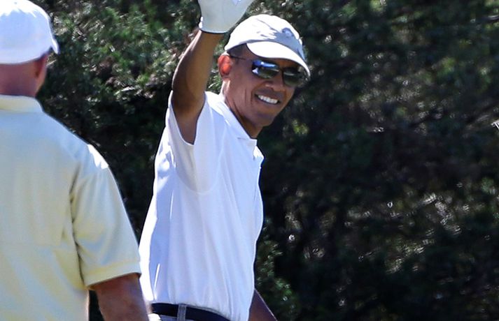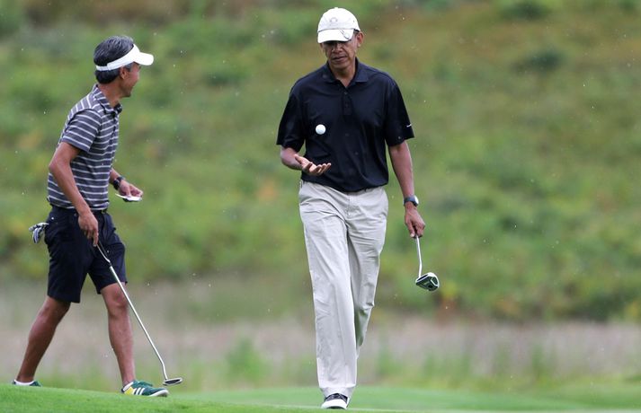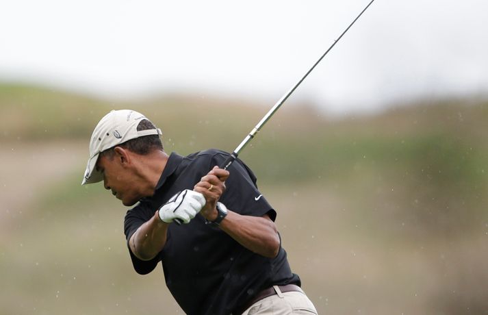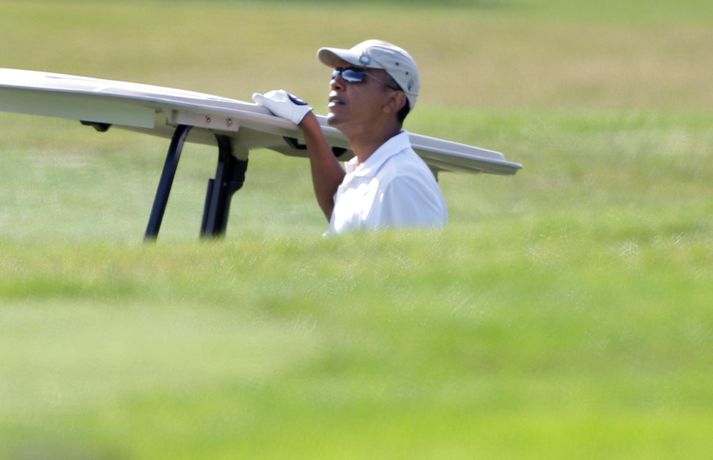 Barack Obama Bandaríkjaforseti er mikill íþróttaáhugamaður og spilar talsvert oft körfubolta. Hann er einnig á kafi í golfinu. Forsetinn tók sér þá vikufrí til þess að spila á Marth's Vineyard um daginn. Hann þykir nokkuð liðtækur. Obama spilaði meðal annars golf með Tiger Woods á dögunum en þá fengu fjölmiðlar ekki að mynda forsetann. Hann leyfði þó myndatöku núna og tilþrifin voru nokkuð góð eins og sjá má á myndunum hér að ofan. Þá lék hann golf meðal annars með bankastjóra World Bank og leikaranum og handritshöfundinum Larry David sem meðal annars skrifaði Seinfeld-þættina.