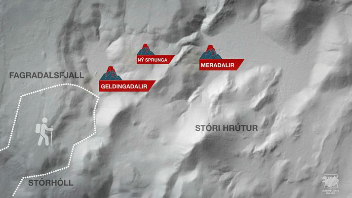 Eldgos og jarðhræringar Eldgos í Fagradalsfjalli Tengdar fréttir Ný sprunga hefur opnast og hraun rennur inn í Geldingadali Hraun streymir nú úr nýrri sprungu sem sérfræðingar á Veðurstofu Íslands tóku eftir um miðnætti. Erfitt er að greina á þessu stigi hve stór sprungan er. 7. apríl 2021 00:43 Bílastæðin opin en viðbragðsaðilar funda um þróun mála kl. 9 Ekki hefur verið tilkynnt um breytingar á opnun á gossvæðinu í og umhverfis Geldingadali þrátt fyrir þróun mála í nótt. Samkvæmt stöðufærslu á Facebook-síðu lögreglunnar á Suðurnesjum frá því í gærkvöldi stóð til að opna kl. 6 í morgun. 7. apríl 2021 06:38 „Þetta er þar sem fólk stóð fyrir viku síðan“ Kári Rafn Þorbergsson björgunarsveitarmaður frá Hellu er einn fjögurra sem stóð til að stæðu næturvaktina á gosstöðvunum í nótt. Fjölgað hefur í þeim hópi eftir að ný sprunga opnaðist á miðnætti. 7. apríl 2021 01:06 Mest lesið Ríkissjóður greiðir fyrir flutning hinna látnu til Íslands Innlent Falskar netverslanir: Auglýsir rýmingarsölu nokkrum dögum eftir opnun Innlent Maðurinn fundinn Innlent „Krítískur massi af snarbrjáluðu fólki nær yfirhöndinni“ Innlent Íslendingur í gæsluvarðhaldi í Kólumbíu vegna gruns um kynferðisbrot Innlent Ekið á konu á Langholtsvegi Innlent Fleiri Epstein-skjöl birt: Prinsinn bað um „óviðeigandi vinkonur“ Erlent Trump nefnir nýja kynslóð orrustuskipa í höfuðið á sjálfum sér Erlent Undrandi á ráðningu ráðgjafa Innlent Hyggst kæra dyraverði Auto til lögreglu Innlent Fleiri fréttir Minni rekstrarkostnaður fyrir eigendur bensínháka Hafnar „jólakveðju“ ríkisins Hefði þurft hjólbörur undir öll verðlaunin sín Ýmis ráð til taugatrekktra á Þorláksmessu Ekkert því til fyrirstöðu að Ásthildur Lóa verði aftur ráðherra Óvissa um ráðherraskipan og skata fyrir byrjendur Maðurinn fundinn Sigríður Halldórsdóttir nýr ritstjóri Kastljóss Íslendingur í gæsluvarðhaldi í Kólumbíu vegna gruns um kynferðisbrot Forsætisráðuneytið eyddi meiru í almannatengla í fyrra en í ár Inkalla snuð vegna of mikils magns BPA-plastefna Svanhildur Sif heiðruð Falskar netverslanir: Auglýsir rýmingarsölu nokkrum dögum eftir opnun Meðallaun upplýsingafulltrúa hækkuðu hlutfallslega mest Skötuilmurinn leggst yfir landið og Samkeppniseftirlitið ætlar að fylgjast vel með bensínverðinu Áfram auknar líkur á eldgosi Sektaður um hundruð þúsunda fyrir að sparka í hund Stýra fjármálum og mannauðsmálum Þjóðleikhússins Sló mann í höfuðið með glerflösku á ísfirskum skemmtistað Ekið á konu á Langholtsvegi Ríkissjóður greiðir fyrir flutning hinna látnu til Íslands Undrandi á ráðningu ráðgjafa „Krítískur massi af snarbrjáluðu fólki nær yfirhöndinni“ Fjölgun eldri kvenna í Kvennaathvarfi: „Þessar konur bíða ekki“ Ráðist á pilt á heimleið Stytting framhjá Blönduósi ekki á samgönguáætlun Vestmannaeyingar fá að eiga Vestmannaeyjar Hyggst kæra dyraverði Auto til lögreglu „Ótrúlega sorglegt að pabbi sé búinn að vera svona lengi í þessari stöðu“ Höfðu samband við dönsku herstjórnina á Grænlandi Sjá meira