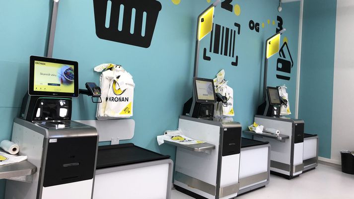 Hlutfall sjálfsafgreiðslu um 70 til 80 prósent hjá Krónunni og Högum Hólmfríður Gísladóttir skrifar 29. apríl 2021 06:30 Sjálfsafgreiðslukassar í Krónunni. Vísir Hlutfall sjálfsafgreiðslu er orðið allt að 80 prósent í verslunum Haga og um 70 prósent að meðaltali í verslunum Krónunnar. Finnur Oddson, forstjóri Haga, segir verslunarferðir hafa „einfaldast“ og þá heyri raðir nánast sögunni til. Frá þessu er greint í Morgunblaðinu í dag. Fyrsti sjálfsafgreiðslukassi Krónunnar var tekinn í notkun á Bíldshöfða árið 2007 en nýjasta kynslóð kassanna var hins vegar sett upp í Krónunni í Nóatúni árið 2018. Fyrstu sjálfsafgreiðslukassar Haga voru teknir í notkun í Bónus á Smáratorgi sama ár. Að sögn Ástu Sigríðar Fjeldsted, framkvæmdastjóra Krónunnar, bjóða nokkrar verslanir nú eingöngu upp á sjálfsafgreiðslu. „En það er auðvitað alltaf starfsfólk við kassana til að aðstoða viðskiptavini,“ segir hún. Hlutfall sjálfsafgreiðslu hjá Samkaupum er eilítið minna en hjá hinum verslanakeðjunum, eða um 50 prósent. Verslun Mest lesið Virðist ekki vera hægt á Íslandi Innlent Hyggst kæra dyraverði Auto til lögreglu Innlent Hiti geti mest náð átján stigum Veður „Ótrúlega sorglegt að pabbi sé búinn að vera svona lengi í þessari stöðu“ Innlent Ný könnun Maskínu: „Væri alveg ný staða í íslenskum stjórnmálum“ Innlent Stytting framhjá Blönduósi ekki á samgönguáætlun Innlent Gaf fingurinn á Miklubraut Innlent „Bandaríkin eiga ekki að taka yfir Grænland“ Erlent Breiddi út faðminn fyrir rasista: „Þið þurfið ekki að biðjast afsökunar á að vera hvít lengur“ Erlent „Ég hef aldrei upplifað annan eins harm“ Innlent Fleiri fréttir Virðist ekki vera hægt á Íslandi Stytting framhjá Blönduósi ekki á samgönguáætlun Vestmannaeyingar fá að eiga Vestmannaeyjar Hyggst kæra dyraverði Auto til lögreglu „Ótrúlega sorglegt að pabbi sé búinn að vera svona lengi í þessari stöðu“ Höfðu samband við dönsku herstjórnina á Grænlandi Ný könnun Maskínu: „Væri alveg ný staða í íslenskum stjórnmálum“ Glæný Maskínukönnun og jólaóveður Ársæll hringdi beint í utanríkisráðherra eftir fundinn Ósannað að fimmtán ára stúlka hafi stungið sextán ára pilt tvisvar Sameina Farice, Öryggisfjarskipti og hluta Neyðarlínunnar Gaf fingurinn á Miklubraut Birtir drög að lögum um lagareldi: Hyggst leggja niður Fiskeldissjóð Hundrað og fjörutíu milljarða bótakrafa á Samherja sé súrrealísk Skemmdir í kirkjugörðum vegna aksturs utan vegar Ólýsanlegur harmur fyrir fjölskylduna og söfnun hleypt af stokkunum „Ég hef aldrei upplifað annan eins harm“ Vill leiða lista Sjálfstæðismanna í Reykjanesbæ „Þetta hefur verið þungur tími“ Naut aðstoðar samskiptasérfræðinga vegna veiðigjaldamálsins Hrindir af stað söfnun fyrir móður stúlkunnar sem lést í Suður-Afríku Varð vitni að ótrúlegum norðurljósum: „Mér fannst þetta magnað“ Færir nýársboðið fram á þrettándann Fjórir fluttir á sjúkrahús eftir bílveltu á Suðurlandi Leggur aftur til hverfislögreglustöð í Breiðholti Nú má heita Love, Tóní, Ranimosk og Draumur Kvartar til umboðsmanns og vonar að Vegagerðin sjái að sér Ætlar ekki að beita sér í máli starfsmanns Útlendingastofnunar „Ég vil ekki nokkurn tímann sjá neitt svona aftur“ Gyðingar á Íslandi upplifa aukinn ótta Sjá meira