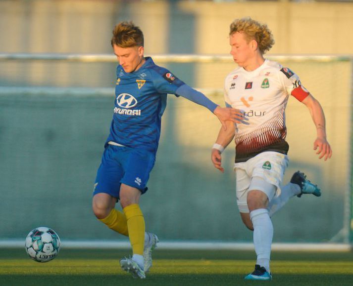 Kórdrengir nálgast toppbaráttuna og Grótta og Afturelding fjarlægjast botnbaráttuna Hjörtur Leó Guðjónsson skrifar 15. júlí 2021 21:14 Grótta lyfti sér upp í fimmta sæti Lengjudeildarinnar með sigrinum í kvöld. Vísir/Haraldur Þrem leikjum var að ljúka í Lengjudeild karla. Kórdrengir sóttu þrjú stig á Selfoss með 1-0 sigri, Grótta vann sterkan 2-1 sigur gegn Fjölni á heimavelli og Afturelding átti ekki í vandræðum með Víking frá Ólafsvík þegar þeir unnu 6-1. Davít Ásbjörnsson skoraði eina mark leiksins fyrir Kórdrengi rúmum tíu mínútum fyrir leikslok þegar þeir heimsóttu Selfyssinga. Kórdrengir eru nú í þriðja sæti Lengjudeildarinnar með 22 stig. Selfyssingar eru í því tíunda með níu stig. Grótta náði forsytunni gegn Fjölni á 65.mínútu þegar að Guðmundur Karl Guðmundsson varð fyrir því óláni að skora sjálfsmark. Kristófer Melsted tvöfaldaði forystu heimamanna þegar um tíu mínútur lifðu leiks, áður en Helgi Snær Agnarsson klóraði í bakkann undir lok leiks. Sigurinn lyftir Gróttu upp fyrir Fjölni í fimmta sæti, en liðin eru bæði með 17 stig. Afturelding fór illa með Víkinga frá Ólafsvík þegar liðin mættust í Mosfellsbænum í kvöld. Víkingar komust reyndar yfir á áttundu mínútu með marki frá Joseja Amat, en fljótlega eftir það fór að fjara undan. Arnór Ragnarsson skoraði tvö mörk fyrir heimamenn fyrir leikhlé og breytti stöðunni í 2-1. Aron Sævarsson kom heimamönnum í 3-1 þegar seinni hálfleikur var tæplega fjögurra mínútna gamall, áður en Pedro Vázquez skoraði fjórða mark Aftureldingar. Kristófer Óskarsson bætti fimmta markinu við þegar að fimm mínútur voru til leiksloka og Hafliði Sævarsson gulltryggði sigurinn algjörlega rétt fyrir leikslok. Afturelding er nú í sjöunda sæti með 16 stig, en Víkingur Ólafsvík er enn án sigurs á botni deildarinnar með tvö stig. Lengjudeildin Grótta Fjölnir UMF Selfoss Afturelding Víkingur Ólafsvík Kórdrengir Mest lesið Arnar Daði rekinn frá Stjörnunni en áfram þjálfari kvennaliðsins Handbolti Koepka fyrsta stjarnan sem riftir samningi við LIV Golf Ótrúlegur sigur á HM: „Ég er mjög tregur svo pressan nær ekki til mín“ Sport Viðurkenna að VAR hafi bilað Fótbolti „Þetta er stærsti klúbbur Íslands“ Íslenski boltinn Stefndi á ÓL en fannst látinn á hótelherbergi Sport Þessi tíu eru tilnefnd sem Íþróttamaður ársins 2025: 23 ára aldursmunur Sport Man. Utd reyndi stíft en Semenyo kaus City Enski boltinn Sagan ekki sönn: „Veit ekki hvaðan þetta á að hafa komið“ Íslenski boltinn Úr Bestu heim í Hauka Íslenski boltinn Fleiri fréttir Úr Bestu heim í Hauka „Þetta er stærsti klúbbur Íslands“ Sagan ekki sönn: „Veit ekki hvaðan þetta á að hafa komið“ Meira en 37 stöðugildi hjá Knattspyrnusambandi Íslands Óskar Hrafn um komu Arnórs Ingva: „Gífurlega dýrmætt fyrir KR“ Arnór Ingvi orðinn leikmaður KR Breiðablik kaupir Jónatan frá Norrköping Elías mættur til meistaranna KR sagt vera að landa Arnóri Ingva Hilmar Árni til starfa hjá KR Segir fjórðung í bók Óla ósannan Víkingur í úrslit Bose-bikarsins eftir sigur „Verið heiður að spila í appelsínugulu með frábærum liðsfélögum“ Þekkir Egilshöllina vel og skoraði gegn fyrrum félögum Strákar Heimis Guðjóns fengu slæman skell í fyrsta leik Axel verður áfram hjá Aftureldingu Kveður pabba sinn í Laugardalnum og fer til FH „Félag sem var í basli með að ná endum saman og greiða laun á réttum tíma“ Skrýtið og taktlaust: „Ég er ekkert sátt með niðurstöðuna“ Fanndís kveður sviðið: „Ég er búin að fella nokkur tár“ Gylfi með tvö og Víkingar byrja á sigri Frá Akureyri til Danmerkur Markadrottningin heldur að landsliðið sé búið spil Strákarnir í 2. flokki Vals þeir einu sem ekki spila fyrir áramót Dæturnar vildu norður: „Mun alltaf gera allt fyrir þær“ Stjarnan sækir markvörð í 3. deildina „Ég var orðinn algjörlega bugaður“ Jónatan áfram á Hlíðarenda: „Var alltaf jákvæður fyrir því að framlengja“ Óli Jó kallar ráðninguna á Jóa Kalla algjört bull „Ég elska þig Ísland, takk fyrir allt!“ Sjá meira