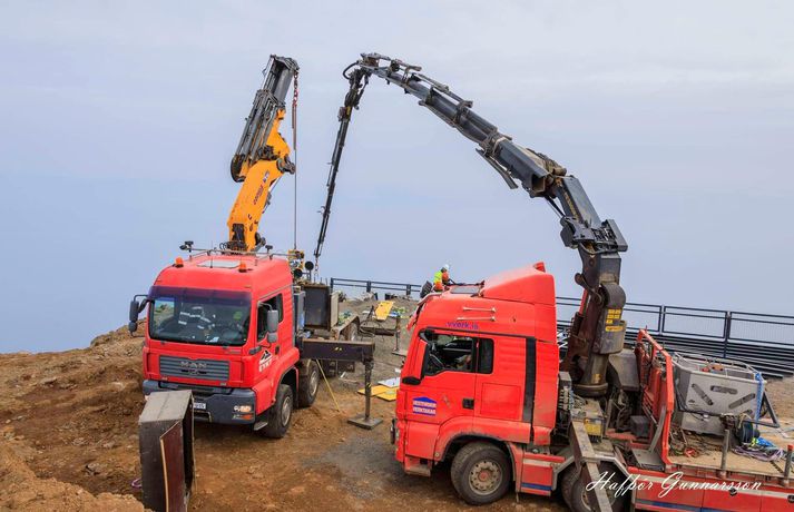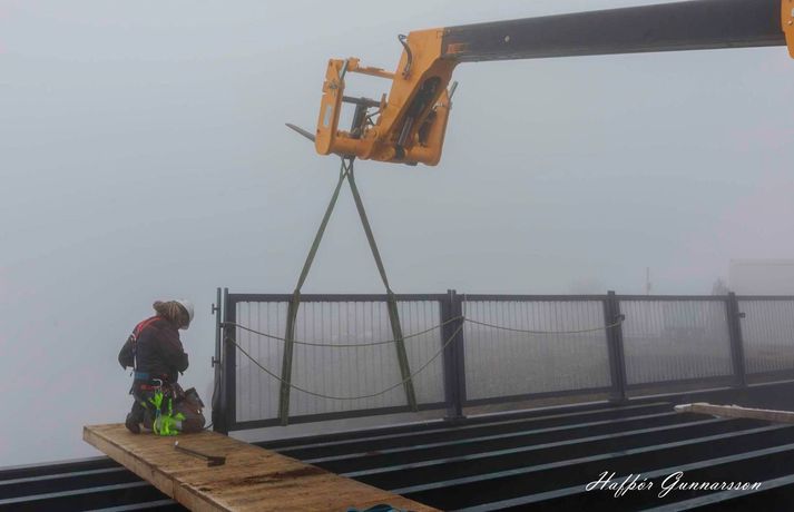 Stórum áfanga náð á útsýnispallinum á Bolafjalli Sylvía Rut Sigfúsdóttir skrifar 26. ágúst 2021 09:29 Vonast er til þess að pallurinn verði einn vinsælasti ferðamannastaður Vestfjarða. Hafþór Gunnarsson Það er að koma lokamynd á útsýnispallinn á hinu 640 metra háa Bolafjalli við Bolungarvík. Pallurinn opnar í haust, aðeins tveimur árum eftir að hugmyndin kom fyrst upp. Pallurinn var smíðaður í Póllandi og fluttur til landsins, þar sem hann var boraður inn í fjallið. Nú hefur útsýnisglerið verið sett á fremsta punkt pallsins, en þar munu þeir allra hugrökkustu njóta stórfenglegs útsýnis yfir Ísafjarðardjúpið. Hafþór Gunnarsson Öryggislínur eru festar í vinnuhópinn, þar sem meira en sex hundruð metra fall er niður í hafið fyrir neðan.Hafþór Gunnarsson Iðnaðarmenn hafa undið hörðum höndum að verkefninu í yfir sex hundruð metra hæð. Eins og sjá má á meðfylgjandi myndum eru þetta einstaklega krefjandi og hættulegar aðstæður. Hafþór Gunnarsson hefur myndað verkefnið frá upphafi og þannig skrásett þessa einstöku framkvæmd. Sallarólegir á stálbitum í 640 metra hæð.Hafþór Gunnarsson Einbeitingin í hámarki.Hafþór Gunnarsson Eins og komið hefur fram í umfjöllun okkar um verkefnið veitti Framkvæmdasjóður ferðamannastaða 160 milljónum króna til byggingar pallsins. Búast má við því að pallurinn verði einn vinsælasti ferðamannastaður Vestfjarða. Fylgst með að allt gangi vel fyrir sig.Hafþór Gunnarsson Fleiri myndir frá Hafþóri má sjá í myndaalbúminu hér fyrir neðan. Einstaklega krefjandi vinnuaðstæður en útsýnið er að minnsta kosti frábært.Hafþór GunnarssonÞað er ekki hver sem er sem hefði getað tekið af sér að vinna að útsýnispallinum á Bolafjalli.Hafþór GunnarssonHandriðið er komið á sinn stað og lokamynd að koma á pallinn.Hafþór GunnarssonÖryggisglerið flutt á réttan stað.Hafþór GunnarssonHafþór GunnarssonHafþór GunnarssonVonast er til þess að pallurinn verði einn vinsælasti ferðamannastaður Vestfjarða.Hafþór GunnarssonHafþór GunnarssonHafþór GunnarssonHafþór GunnarssonHandriðinu komið fyrir í þokunni.Hafþór GunnarssonHafþór Gunnarsson Ferðamennska á Íslandi Ljósmyndun Bolungarvík Útsýnispallur á Bolafjalli Tengdar fréttir Sallarólegir við störf í rúmlega 600 metra hæð Útsýnispallur á hinu 640 metra háa Bolafjalli við Bolungarvík er að taka á sig endanlega mynd, aðeins rúmum tveimur árum eftir að hugmyndir um hann voru kynntar. 16. ágúst 2021 11:52 Á hengiflugi í hlíðum Bolafjalls Þessa dagana er unnið að undirbúningi uppsetningar á einum magnaðasta útsýnispalli landsins á tindi Bolafjalls. Pallurinn verður tilbúinn seinnipart næsta sumars eða í haustbyrjun. 2. ágúst 2020 20:01 Reikna með tugþúsundum á útsýnispall í háloftunum í Bolungarvík Bolvíkingar eiga von á því að tugir þúsunda ferðamanna muni nýta sér útsýnispall á Bolafjalli í Bolungarvík. 7. febrúar 2019 15:45 60 prósenta munur á tilboðum í útsýnispallinn á Bolafjalli Fjögur tilboð bárust Bolungarvík í smíði og uppsetningu útsýnispalls á Bolafjalli. Tilboðin voru opnuð í Ráðhúsi Bolungarvíkur í gær. 29. október 2019 11:13 Mest lesið Breytti um nafn eftir djúpa ástarsorg Tónlist Lét flúra brúðkaupsdaginn á sig en gerði mistök Lífið Sigurjón og Sóley gjörbreyttu eldhúsinu með einstakri útkomu Lífið Fasteignasalar og ofurskvísur í Októberfest stemningu Lífið Komu höndum yfir fæðingarvottorðið og ljóstruðu upp um fæðinguna Bíó og sjónvarp Eitt glæsilegasta hús Reykjavíkur til sölu Lífið Ótrúlegur bílskúr Hönnu Rúnar: „Hvar ertu?“ Lífið Elegant eftirréttur sem hlýjar um hjartarætur Matur Sviti, mjólk og hóstakast eftir að hafa manað hvor annan Lífið Nýir réttir Serrano aðgengilegir í LifeTrack appinu Lífið samstarf Fleiri fréttir Ótrúlegur bílskúr Hönnu Rúnar: „Hvar ertu?“ Lét flúra brúðkaupsdaginn á sig en gerði mistök Sviti, mjólk og hóstakast eftir að hafa manað hvor annan Yfir 170 góðgerðafélög hlutu styrk í áheitasöfnun Reykjavíkurmaraþons Sigurjón og Sóley gjörbreyttu eldhúsinu með einstakri útkomu „Alvöru“ jólasveinn gisti á Hótel Rangá Fasteignasalar og ofurskvísur í Októberfest stemningu Eitt glæsilegasta hús Reykjavíkur til sölu „Þetta er það fallegasta sem einhver hefur sagt um mig“ Hvað þýðir „six-seven“? Smáforrit til að deila heimilisverkum: „Fæ þrjú stig fyrir að þurrka af á heimilinu“ Kynslóðabilið kom í ljós þegar umræðan beindist að blautbolakeppni Ljúffengar banana- og kakóbollakökur í nestisboxið Troðningur á yfirfullri opnun: „Þetta var svolítið kreisí“ Pétur Kr. og Ingibjörg selja 270 fermetra eign við Ægisíðu Barist upp á líf og dauða „Get ekki hætt að hugsa um bragðarefinn sem hann pantaði“ Langþráður draumur verður að veruleika Samsæriskenningar notaðar sem stjórntæki Stjörnulífið: „Dagur sem mun aldrei gleymast“ Gisti hálft ár á sófum hjá bekkjarfélögum Betra að vera blankur nemi í New York Kynlífið innantómt með öðrum en fyrrverandi Fékk lífið til baka á korteri eftir tólf ár af sársauka Staðfesta loks sambandið Einar og Milla skírðu drenginn Með blæðandi hjarta og ber örin með stolti Krakkatían: Kvennafrídagurinn, Ólsen ólsen og málsháttur Áslaug Arna kom alblóðug inn í sjúkratjaldið Upplifði stöðugan ótta við helvíti í samfélagi múslima í Svíþjóð Sjá meira