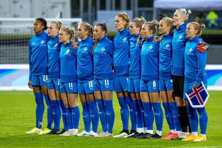 Þorsteinn: Við fórum hugrökk inn í þennan leik og ætluðum að þora Óskar Ófeigur Jónsson skrifar 21. september 2021 21:07 Byrjunarlið Íslands á móti Hollandi í kvöld. Vísir/Hulda Margrét Landsliðsþjálfarinn sá jákvæða hluti í leik íslensku stelpnanna í kvöld og það vantaði oft lítið upp á að fá meira út úr lofandi sóknum liðsins. „Það voru jákvæðir punktar hjá okkur en auðvitað vissum við alveg að við vorum að spila á móti mjög góðu liði og mjög vel spilandi liði. Það voru kaflar í leiknum þar sem var að slitna aðeins á milli hjá okkur og við þurfum aðeins að laga það,“ sagði Þorsteinn Halldórsson, þjálfari íslenska kvennalandsliðsins, í samtali við Henry Birgi Gunnarsson, eftir 2-0 tap á móti Hollandi í kvöld í fyrsta leik liðsins í undankeppni HM 2023. „Við þurfum að vinna í því að halda liðinu aðeins þéttar því þá er erfiðara að færa boltann á milli svæða hjá okkur og erfiðara að spila á móti okkur. Það eru hlutir sem við þurfum að skoða vel því mín tilfinningin mín núna var að það var að slitna aðeins á milli hjá okkur. Það gerði okkur aðeins erfiðara að komast upp í hraðar sóknir eða halda boltanum,“ sagði Þorsteinn en hverjir voru jákvæðustu punktarnir í leik íslenska liðsins. Þorsteinn Halldórsson kallar á íslensku stelpurnar í kvöld.Vísir/Hulda Margrét „Mér fannst vera kraftur í okkur og við náðum upp köflum í leiknum þar sem við vorum að ógna vel, komast á bak við þær og komast í fínar stöður. Það vantaði kannski úrslitasendinguna, finna hlaupin inn í teig og finna möguleikana sem mér fannst ver að opnast þarna. Við hittum ekki á samherja í þeim hlaupum,“ sagði Þorsteinn. Íslenska liðið var að mæta einu besta fótboltaliði í heimi í kvöld. „Við fórum hugrökk inn í þennan leik því við ætluðum ekki að liggja til baka og bíða að sjá. Við ætluðum að þora að vera kröftugt lið og þora að vera lið sem framkvæmir hluti sóknarlega. Ekki bara hanga í vörn, bomba fram og sjá hvað gerist. Við ætluðum að reyna að spila og reyna að halda boltanum,“ sagði Þorsteinn. „Mér fannst margt jákvætt sem við gerðum og þó að við höfum tapað sem er ógeðslega fúlt og leiðinlegt þá þýðir ekkert að gráta yfir því. Það er bara næsti leikur og við þurfum bara að vera undirbúin fyrir næsta verkefni eftir mánuð,“ sagði Þorsteinn. Klippa: Viðtal við Þorstein Halldórsson HM 2023 í Ástralíu og Nýja-Sjálandi Mest lesið Arnar Daði rekinn frá Stjörnunni en áfram þjálfari kvennaliðsins Handbolti Koepka fyrsta stjarnan sem riftir samningi við LIV Golf Viðurkenna að VAR hafi bilað Fótbolti Ótrúlegur sigur á HM: „Ég er mjög tregur svo pressan nær ekki til mín“ Sport Stefndi á ÓL en fannst látinn á hótelherbergi Sport „Þetta er stærsti klúbbur Íslands“ Íslenski boltinn Þessi tíu eru tilnefnd sem Íþróttamaður ársins 2025: 23 ára aldursmunur Sport Úr Bestu heim í Hauka Íslenski boltinn Sagan ekki sönn: „Veit ekki hvaðan þetta á að hafa komið“ Íslenski boltinn Man. Utd reyndi stíft en Semenyo kaus City Enski boltinn Fleiri fréttir Vill ekki segja hversu lengi Bruno er frá Spyr hvort Guardiola stígi á vigtina Viðurkenna að VAR hafi bilað Úr Bestu heim í Hauka „Þetta er stærsti klúbbur Íslands“ Kaupmannahafnarbúi afgreiddi Úganda Arsenal í undanúrslit eftir vító Man. Utd reyndi stíft en Semenyo kaus City Iwobi og Lookman áberandi í sigri Nígeríu „Tölfræðilega séð eiga þeir ekkert að vera í þessari stöðu“ Amanda hætt hjá Twente Jackson hóf Afríkumótið með látum Fullkrug leysir Origi af í Mílanó Versta tímabil Vinícius í mörg ár og samningaviðræður sigla í strand Kongóliðar byrja á sigri Glódís framlengir samninginn við Bayern Chelsea setur sig í samband við Semenyo Sagan ekki sönn: „Veit ekki hvaðan þetta á að hafa komið“ Hætt við að spila í Ástralíu en óvíst hvar leikurinn verður Neymar kominn á lappir og lofar að skora í úrslitaleik HM Jiménez jafnaði bestu vítaskyttu sögunnar Slot mun sakna Isak í tvo mánuði eftir „glórulausa tæklingu“ Sjáðu „auma“ vítið sem skilaði Fulham sigri Erfitt að vera í burtu þegar mamma greindist „Svona lítur frábær ákvörðun út“ Einn leikmaður með samning og völlurinn ólöglegur Salah færði Egyptum draumabyrjun Fulham skildi Forest eftir við fallsvæðið Áfallið staðreynd og Isak búinn í aðgerð Neres hetja Napoli í Sádi-Arabíu Sjá meira