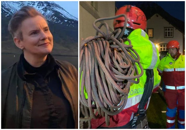 Rignir inn í öll herbergi á efstu hæð: „Þú keppir ekki við kára“ Óttar Kolbeinsson Proppé skrifar 7. október 2021 22:36 Brynja segir að farið sé að rigna inn í öll herbergi á efstu hæðinni. aðsend „Ég tek þessu bara af æðruleysi og reyni að sjá spaugilegu hliðarnar á þessu,“ segir Brynja Baldursdóttir listakona á Siglufirði, sem missti í kvöld efsta lagið af þakinu á húsinu sínu, sem hún var nýbúin að láta skipta um, í stormi sem gengur yfir fjörðinn. Nú rignir beint inn á efstu hæðina hennar. „Við erum búin að setja út alla bala og potta, dollur og ílát sem ég á út á gólfið og svo stendur maður bara í ströngu við að ausa úr því fram eftir nóttu,“ segir hún. Fréttastofa náði tali af Brynju þegar hún var nýbúin að koma þessum ílátum fyrir á eftir hæðinni. Nú er bara að hita sér sterkt kaffi og horfa á eitthvað skemmtilegt þangað til hún fer upp að vitja ílátanna. Var svo montin af vel festu þaki „Ég er sem sagt nýbúin að láta skipta um allt hérna og koma fyrir splunkunýju þaki. Við vorum einmitt að tala um það hérna hvað þetta væri einstaklega vel gert hjá þeim, þetta væri fest eins og í gamla daga og ég var eiginlega búin að vera hálfmontin einmitt af því hversu vel festur pappinn væri á þakinu,“ segir Brynja. Björgunarsveitarmenn aðstoðuðu Brynju í kvöld áður en það varð allt of hvasst til að vera ofan á þakinu.ingvar erlingsson Pappinn fór svo af í miklum vindi í kvöld og eftir stendur ber viðurinn og einangrun sem eru farin að leka. „Og nú rignir bara inn í öllum herbergjum hér á efstu hæðinni. Það verður líklega ekki hægt að fjarlægja einangrunina fyrr en undir morgun hugsa ég,“ segir Brynja. Segldúkur hefði getað tekið menn með sér Björgunarsveitin Strákar voru hjá Brynju fyrr í kvöld til að reyna að halda þakinu. „En þau urðu frá að hverfa vegna þess að það var komið svo mikið rok og þau gátu ekki verið viss um að vera örugg uppi á þaki. Það gengur að sjálfsögðu fyrir. Þetta er auðvitað ekki nema bara hús. Þú keppir ekki við kára.“ Þá var planið að festa segldúk yfir þakið til að hlífa efstu hæðinni við bleytunni en vindáttin og vindstyrkurinn voru orðin það mikil að það þótti ekki öruggt að vera með segldúk á ferð. „Því hann hefði getað farið á flug og tekið menn bara með sér,“ segir Brynja. Að sögn björgunarsveitarmanns að norðan skall óveðrið nokkuð óvænt á í kvöld. Það hefur ringt og gengið á með mjög sterkum hviðum á Siglufirði í kvöld.ingvar erlingsson Um leið og vindáttin breytist eða gengur niður á Brynja von á að björgunarsveitarfólkið komi aftur til að reyna að festa dúkinn yfir þakið. Brynja veit ekki hversu mikið tjónið er. „Ég tek þetta bara eitt skref í einu. Og nú er það að fá sér kaffi og passa ílátin á efstu hæðinni. Svo þurfum við bara að meta hitt síðar.“ Náttúruhamfarir Fjallabyggð Mest lesið Blússandi hagvöxtur í Bandaríkjunum Erlent Minni rekstrarkostnaður fyrir eigendur bensínháka Innlent Hafnar „jólakveðju“ ríkisins Innlent Ekkert því til fyrirstöðu að Ásthildur Lóa verði aftur ráðherra Innlent Hefði þurft hjólbörur undir öll verðlaunin sín Innlent „Krítískur massi af snarbrjáluðu fólki nær yfirhöndinni“ Innlent Íslendingur í gæsluvarðhaldi í Kólumbíu vegna gruns um kynferðisbrot Innlent Ríkissjóður greiðir fyrir flutning hinna látnu til Íslands Innlent Gaf fingurinn á Miklubraut Innlent Falskar netverslanir: Auglýsir rýmingarsölu nokkrum dögum eftir opnun Innlent Fleiri fréttir Minni rekstrarkostnaður fyrir eigendur bensínháka Hafnar „jólakveðju“ ríkisins Hefði þurft hjólbörur undir öll verðlaunin sín Ýmis ráð til taugatrekktra á Þorláksmessu Ekkert því til fyrirstöðu að Ásthildur Lóa verði aftur ráðherra Óvissa um ráðherraskipan og skata fyrir byrjendur Maðurinn fundinn Sigríður Halldórsdóttir nýr ritstjóri Kastljóss Íslendingur í gæsluvarðhaldi í Kólumbíu vegna gruns um kynferðisbrot Forsætisráðuneytið eyddi meiru í almannatengla í fyrra en í ár Inkalla snuð vegna of mikils magns BPA-plastefna Svanhildur Sif heiðruð Falskar netverslanir: Auglýsir rýmingarsölu nokkrum dögum eftir opnun Meðallaun upplýsingafulltrúa hækkuðu hlutfallslega mest Skötuilmurinn leggst yfir landið og Samkeppniseftirlitið ætlar að fylgjast vel með bensínverðinu Áfram auknar líkur á eldgosi Sektaður um hundruð þúsunda fyrir að sparka í hund Stýra fjármálum og mannauðsmálum Þjóðleikhússins Sló mann í höfuðið með glerflösku á ísfirskum skemmtistað Ekið á konu á Langholtsvegi Ríkissjóður greiðir fyrir flutning hinna látnu til Íslands Undrandi á ráðningu ráðgjafa „Krítískur massi af snarbrjáluðu fólki nær yfirhöndinni“ Fjölgun eldri kvenna í Kvennaathvarfi: „Þessar konur bíða ekki“ Ráðist á pilt á heimleið Stytting framhjá Blönduósi ekki á samgönguáætlun Vestmannaeyingar fá að eiga Vestmannaeyjar Hyggst kæra dyraverði Auto til lögreglu „Ótrúlega sorglegt að pabbi sé búinn að vera svona lengi í þessari stöðu“ Höfðu samband við dönsku herstjórnina á Grænlandi Sjá meira