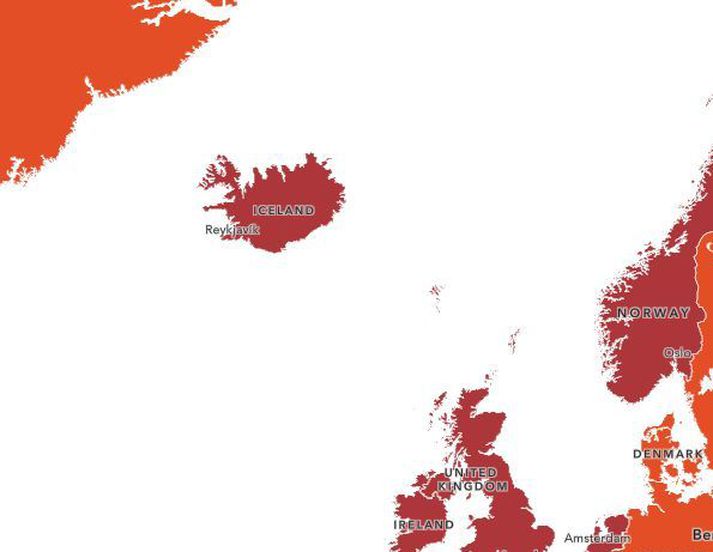 Ísland aftur komið í hæsta áhættuflokk í Bandaríkjunum Árni Sæberg skrifar 15. nóvember 2021 22:42 Forðist ferðalög til Íslands, segir CDC. Skjáskot/CDC Sóttvarnastofnun Bandaríkjanna hefur sett Ísland aftur í hæsta áhættuflokk og varar Bandaríkjamenn við ferðalögum til landsins. Ísland var síðast skilgreint rautt í bókum CDC 6. október síðastliðinn. Á heimasíðu CDC er Bandaríkjamönnum sagt að forðast ferðalög til Íslands en séu þau nauðsynleg sé mikilvægt að vera fullbólusettur áður en lagt er af stað. Vegna ástandsins hér séu jafnvel fullbólusettir í hættu á að fá og dreifa Covid-19. Þá eru Bandaríkjamenn sem þurfa að ferðast hingað til lands hvattir til að fylgja tilmælum sóttvarnaryfirvalda. Þeir skuli bera grímu og viðhalda tveggja metra fjarlægð frá næsta manni. Ísland var sett á rauða listann hjá stofnunni í ágúst en hafði verið í næsthæsta áhættuflokki frá því í byrjun október, þangað til í dag er stofnunin uppfærði áhættumat sitt. Breytingin gæti mögulega haft nokkur áhrif á ferðamannaiðnaðinn á Íslandi, þar sem fjöldi Bandaríkjamanna hefur sótt landið heim á árinu. Þann 28. október síðastliðinn var Ísland aftur sett á rauðan lista sóttvarnarstofnunar Evrópu. Bandaríkin Faraldur kórónuveiru (COVID-19) Ferðamennska á Íslandi Tengdar fréttir Vonar að uppfært hættumat Bandaríkjamanna fæli ekki ferðamenn frá landinu Óbólusettum Bandaríkjamönnum er ráðlagt frá því að ferðast til Íslands vegna mikillar fjölgunar smitaðra hér á landi. Formaður samtaka ferðaþjónustunnar segir einungis bólusetta Bandaríkjamenn ferðast til landsins og vonar því að tilmælin hafi lítil áhrif. 4. ágúst 2021 12:33 Ísland ekki lengur á rauðum lista vestanhafs Ísland er ekki lengur á rauðum lista Sóttvarnarstofnunar Bandaríkjanna. Það þýðir að stofnunin ræður ekki lengur öllum Bandaríkjamönnum frá því að ferðast til Íslands vegna stöðu kórónuveirufaraldursins hér á landi. 6. október 2021 09:00 Mest lesið Virðist ekki vera hægt á Íslandi Innlent Hyggst kæra dyraverði Auto til lögreglu Innlent Hiti geti mest náð átján stigum Veður „Ótrúlega sorglegt að pabbi sé búinn að vera svona lengi í þessari stöðu“ Innlent Ný könnun Maskínu: „Væri alveg ný staða í íslenskum stjórnmálum“ Innlent Stytting framhjá Blönduósi ekki á samgönguáætlun Innlent Gaf fingurinn á Miklubraut Innlent „Bandaríkin eiga ekki að taka yfir Grænland“ Erlent Breiddi út faðminn fyrir rasista: „Þið þurfið ekki að biðjast afsökunar á að vera hvít lengur“ Erlent „Ég hef aldrei upplifað annan eins harm“ Innlent Fleiri fréttir Virðist ekki vera hægt á Íslandi Stytting framhjá Blönduósi ekki á samgönguáætlun Vestmannaeyingar fá að eiga Vestmannaeyjar Hyggst kæra dyraverði Auto til lögreglu „Ótrúlega sorglegt að pabbi sé búinn að vera svona lengi í þessari stöðu“ Höfðu samband við dönsku herstjórnina á Grænlandi Ný könnun Maskínu: „Væri alveg ný staða í íslenskum stjórnmálum“ Glæný Maskínukönnun og jólaóveður Ársæll hringdi beint í utanríkisráðherra eftir fundinn Ósannað að fimmtán ára stúlka hafi stungið sextán ára pilt tvisvar Sameina Farice, Öryggisfjarskipti og hluta Neyðarlínunnar Gaf fingurinn á Miklubraut Birtir drög að lögum um lagareldi: Hyggst leggja niður Fiskeldissjóð Hundrað og fjörutíu milljarða bótakrafa á Samherja sé súrrealísk Skemmdir í kirkjugörðum vegna aksturs utan vegar Ólýsanlegur harmur fyrir fjölskylduna og söfnun hleypt af stokkunum „Ég hef aldrei upplifað annan eins harm“ Vill leiða lista Sjálfstæðismanna í Reykjanesbæ „Þetta hefur verið þungur tími“ Naut aðstoðar samskiptasérfræðinga vegna veiðigjaldamálsins Hrindir af stað söfnun fyrir móður stúlkunnar sem lést í Suður-Afríku Varð vitni að ótrúlegum norðurljósum: „Mér fannst þetta magnað“ Færir nýársboðið fram á þrettándann Fjórir fluttir á sjúkrahús eftir bílveltu á Suðurlandi Leggur aftur til hverfislögreglustöð í Breiðholti Nú má heita Love, Tóní, Ranimosk og Draumur Kvartar til umboðsmanns og vonar að Vegagerðin sjái að sér Ætlar ekki að beita sér í máli starfsmanns Útlendingastofnunar „Ég vil ekki nokkurn tímann sjá neitt svona aftur“ Gyðingar á Íslandi upplifa aukinn ótta Sjá meira
