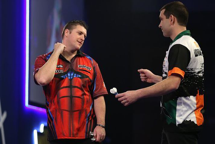 Gurney of sterkur fyrir þann leiftursnögga Ingvi Þór Sæmundsson skrifar 16. desember 2021 16:33 Daryl Gurney er kominn áfram í 2. umferð heimsmeistaramótsins í pílukasti. getty/Luke Walker Fjórum viðureignum er lokið á heimsmeistaramótinu í pílukasti í dag. Hinn norður-írski Daryl Gurney, sem komst í átta manna úrslit á HM í fyrra, vann Ricky Evans, 3-1, í síðasta leik dagsins. Hinn stórskemmtilegi Evans, sem kastar hraðar en flestir, átti góða kafla og vann fyrsta settið en Gurney kom sterkur til baka, vann síðustu þrjú settin og leikinn. ! Daryl Gurney comes from 1-0 down to defeat Ricky Evans 3-1 to close out this afternoon's action!A brilliant battle between two friends pic.twitter.com/l2rXr38Pg3— PDC Darts (@OfficialPDC) December 16, 2021 Hollendingurinn Chris Landmann hafði mikla yfirburði gegn Scott Mitchell í fyrsta leik sínum á HM. Landmann vann viðureignina, 3-0, og tapaði aðeins tveimur leggjum í henni. !An afternoon to forget for Scott Mitchell as Chris Landman only drops two legs to defeat 'Scotty Dog' 3-0 in sets in his Ally Pally debut! Up next Chas Barstow v John Norman Jnr pic.twitter.com/Abf83684Pp— PDC Darts (@OfficialPDC) December 16, 2021 Chas Barstow hafði betur gegn John Norman í viðureign tveggja nýliða, 3-1. Barstow mætir Michael van Gerwen, þreföldum heimsmeistara, í næstu umferð á laugardaginn. !Chas Barstow completes a dominant 3-1 victory over John Norman Jnr on his Ally Pally debut, setting up a second round clash with Michael van Gerwen! Up next Daryl Gurney v Ricky Evans pic.twitter.com/85SDV6AQGI— PDC Darts (@OfficialPDC) December 16, 2021 Í fyrstu viðureign dagsins bar Írinn Steve Lennon sigurorð af Madars Razma frá Lettlandi, 3-1. ! Steve Lennon comes through a hard-fought battle with Madars Razma, closing out a 3-1 set victory! Up next Scott Mitchell v Chris Landman pic.twitter.com/2exFsZtaUE— PDC Darts (@OfficialPDC) December 16, 2021 Keppni hefst á ný klukkan 19:00. Bein útsending verður á Stöð 2 Sport 3. Leikir kvöldsins William O'Connor - Danny Lauby Ryan Meikle - Fabian Schmutzler Ron Meulenkamp - Lisa Ashton Gary Anderson - Adrian Lewis Pílukast Mest lesið Þessi tíu eru tilnefnd sem Íþróttamaður ársins 2025: 23 ára aldursmunur Sport Áfallið staðreynd og Isak búinn í aðgerð Enski boltinn Einn leikmaður með samning og völlurinn ólöglegur Fótbolti Sakaður um niðurlægingu: „Við viljum ekki hafa hann sem þjálfara“ Handbolti Vildi tapa legg: „Mesti hávaði sem ég hef heyrt“ Sport Salah færði Egyptum draumabyrjun Fótbolti Steraleikarnir segi ungu fólki að það sé aldrei nógu fullkomið Sport Körfuboltakvöld: Tilþrif tímabilsins til þessa Körfubolti Sagði látna systur sína hafa tryggt sigurinn ótrúlega Sport Dagskráin í dag: Kæst yfir NFL, pílu og enska boltanum Sport Fleiri fréttir Sakaður um niðurlægingu: „Við viljum ekki hafa hann sem þjálfara“ Þessi tíu eru tilnefnd sem Íþróttamaður ársins 2025: 23 ára aldursmunur Dagskráin í dag: Kæst yfir NFL, pílu og enska boltanum Einn leikmaður með samning og völlurinn ólöglegur Vildi tapa legg: „Mesti hávaði sem ég hef heyrt“ Salah færði Egyptum draumabyrjun Fulham skildi Forest eftir við fallsvæðið Áfallið staðreynd og Isak búinn í aðgerð Neres hetja Napoli í Sádi-Arabíu Aron Einar lagði upp dýrmætt sigurmark Sagði látna systur sína hafa tryggt sigurinn ótrúlega Steraleikarnir segi ungu fólki að það sé aldrei nógu fullkomið Afkáralegt fagn hjá hetju Sambíu Glódís Perla veik í jólafríið en enn taplaus Hættur aðeins þrítugur Glódís og Hákon best í fótboltanum á árinu Frelsaði fjárfestirinn Dani Alves gefur sjálfum sér samning Fagnaði titli Liverpool sem óður maður um alla borg Mbappé breytti um fagn af góðu tilefni „Allir virðast elska hann“ Stjörnuútherji Steelers sló til áhorfenda í miðjum leik Haukur getur náð hundrað plús hundrað fyrir EM-fríið Meira en 37 stöðugildi hjá Knattspyrnusambandi Íslands Táningur fær mikið hrós fyrir viðbrögð sín þegar mótherji missti meðvitund „Þetta mun ekki buga okkur“ Guardiola mun vigta leikmenn Man City eftir jólin Stórstjarna úr WNBA-deildinni í heimsókn á Íslandi Mætir öldungnum sem breytti lífi hans Missti af tveimur mánuðum eftir að hafa slasast við að tengja sjónvarpið „Ef þið væruð Antoine Semenyo, hvert mynduð þið fara?“ Sjá meira