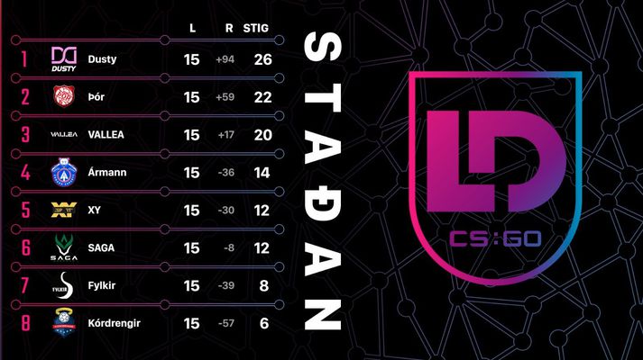 Leikir vikunnar Fylkir – Kórdrengir Umferðin hófst á leik Fylki og Kórdrengja í Mirage, en Fylkir haði unnið báða fyrri leiki liðanna. Kórdrengir mættu til leiks af krafti enda gátu þeir með sigri farið að narta í hælana á Fylki og skiptir hver sigur miklu máli í fallbaráttunni. Framan af höfðu Kórdrengir tökin á leiknum þar sem þeir léku árásargjarnt í vörninni. Fylkir komst aðeins á skrið undir lok hálfleiks en forskot Kórdrengja var gott og staðan 10–5 í hálfleik. Kórdrengir héldu uppteknum hætti í upphafi síðari hálfleiks en þá tóku Fylkismenn 7 lotur í röð og staðan skyndilega orðin afar jöfn. Með herkjum tókst Kórdrengjum þó að sigla sigrinum heim að lokum. Var það BlazteR sem tryggði þeim síðustu lotuna með þrefaldri fellu í erfiðri stöðu og fór leikurinn 16–12 fyrir Kórdrengjum. Dusty – Ármann Síðari leikur þriðjudagskvöldsins var svo á milli Dusty og Ármanns. Ármann átti harma að hefna eftir að hafa verið pakkað saman 16–3 í Ancient í fyrstu umferðinni og svo aftur 16–6 í þeirri áttundu. Kokhraustir leikmenn Dusty gerðu sér lítið fyrir og gjörsamlega rústuðu fyrri hálfleiknum. Ármann komst hvorki lönd né strönd á útisvæðinu og virtist Dusty hreinlega vera að leika sér að þeim. Staðan í hálfleik var því 12–3 fyrir Dusty og allt útlit fyrir að sá síðari yrði stuttur. Það reyndist þó ekki raunin þar sem Ármann varðist framarlega í síðari hálfleik. Fóru þeir allir sem einn um kortið og stilltu upp í snarpar endurtökur til að tengja saman tíu lotur í röð og jafna 12–12. Eftirleikurinn var svo auðveldur þar sem Dusty náði einungis í eina lotu í viðbót og Ármann stóð því uppi sem sigurvegari leiksins, 16–13. Saga – XY Á föstudagskvöldið mættust svo erkifjendurnir Saga og XY. XY hafði unnið báðar fyrri viðureignir liðanna en með sigri gat Saga jafnað XY að stigum. Sniðugt kortaval Sögu átti eftir að skila sínu en bæði lið una sér vel í Nuke. Þess í stað hafði XY valið á milli Ancient og Dust 2, og valdi Dust 2. Þrátt fyrir breytingar á Dust 2 kortinu hafði ADHD algjör tök á miðjunni og hitti hvern leikmann XY á fætur öðrum með vappanum. Nýtti Saga sér það til að koma sprengjunni fyrir með snyrtilegum aðgerðum í fyrri hálfleik og komast í 11–4. XY minnkaði muninn örlítið í upphafi síðari hálfleiks en Saga mætti af hörku inn á sprengjusvæðið til að sjá við leikmönnum XY og hafa betur í leiknum, 16–10. Slakur varnarhálfleikur XY og kortavalið urðu þeim þannig að falli. Þór – Vallea Lokaleikur umferðarinnar var svo á milli Þórs og Vallea, liðanna í öðru og þriðja sæti deildarinnar. Eftir tap Dusty gegn Ármanni hafði myndast glufa fyrir Þór til að vinna deildina og því mikið í húfi fyrir liðið. Þór náði forskoti strax í upphafi leiks og gátu þeir vopnast vel gegn skammbyssum Vallea. Góð hraðabreyting í sókn Vallea gerði það þó að verkum að staðan í hálfleik var eins jöfn og hugsast getur, 8–7 fyrir Þór. Í vörninni átti Vallea auðvelt með að losa um þá pressu sem sókn Þórs setti á liðið og sigldi Vallea því fljótlega fram úr þeim. Vallea var komið ansi nálægt því að vinna leikinn þegar Þórsarar spýttu í lófana, létu sprengjum rigna og brutu efnahag Vallea á bak aftur. Það var þó of seint í rassinn gripið og var það fjórföld fella frá Minidegreez sem tryggði Vallea sigur, 16–13. Staðan Að 15. umferð lokinni hefur uppröðun töflunnar ekkert breyst, en mjórra er á mununum en oft áður. Dusty er enn sem fyrr á toppi deildarinnar og verður Þór að treysta á að Dusty tapi öðrum leik til að Þór eigi möguleika á að vinna deildina. Með sigri sínum fikrar Vallea sig enn nær Þór og skilja einungis tvö stig liðin að þó Þór hafi yfirhöndina í innbyrðisviðureignum liðanna. Næst á eftir raða sér Ármann, XY og Saga og enn sem áður reka svo Fylkir og Kórdrengir lestina. Næstu leikir Ljósleiðaradeildin heldur áfram í næstu viku og fer 16. umferðin fram dagana 15. og 18. febrúar: Þór – Fylkir, 15. feb. kl. 20:30. Kórdrengir – XY, 15. feb. kl. 21:30. Dusty – Saga, 18. feb. kl. 20:30. Ármann – Vallea, 18. feb. kl. 21:30. Sýnt verður frá leikjunum á Stöð 2 Esport og á Twitch síðu Rafíþróttasamtaka Íslands.