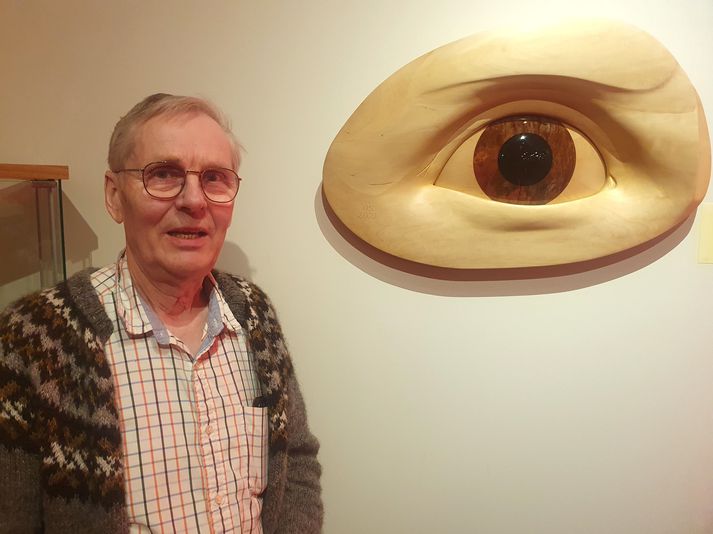 Eftirmynd af auga Lindu Pé komið upp á vegg Magnús Hlynur Hreiðarsson skrifar 6. júní 2022 20:31 Ólafur Sigurjónsson listamaður í Tré og list í Flóahreppi við augað, sem hann kallar „„Auga almættisins“ en fyrirmyndin eru augu Lindu Pétursdóttur, alheimsfegurðardrottningar. Magnús Hlynur Hreiðarsson Efturlíking af auga Lindu Pétursdóttur, alheimsfegurðardrottingu er nú komið upp á vegg á safni í Flóanum en það var rennt og skorið út í tré. Listamaðurinn er mjög stoltur af auganu, svo ekki sé minnst á gesti safnsins, sem dást af verkinu og auga Lindu Pé. Tré og list er glæsilegt safn í Forsæti í Flóahreppi en eigendur þess eru Ólafur Sigurjónsson og Bergþóra Guðbergsdóttir. Hjónin taka á móti mikið af hópum, sem eru forvitnir um sögu safnsins og munina á því. Sigga á Grund á nokkur falleg verk á safninu og nokkur þeirra eru eftir Ólaf sjálfan, m.a. þetta glæsilega auga. „Mig langaði til þess að gera verk, sem talaði svolítið sterkt til manns um það að mér finnst oft að eitthvað vaki yfir manni og þá kom upp hugmyndin „Auga almættisins“ . Þetta eru allt náttúrlegir litir úr tré,“ segir Ólafur. Ólafur segir að mikil vinna liggi á bak við augað, en mjög skemmtileg og krefjandi vinna. En er þetta eitthvað ákveðið auga? „Ég get ekki neitað því að ég prentaði út mynd af Lindu Pé og hennar fallegu augum og hafði á borðinu hjá mér, þannig að við getum alveg sagt með það sanni að það sé svona ákveðin fyrirmynd. Þannig að Linda Pé er komin upp á vegg? „Já, það má segja það,“ segir Ólafur og hlær. Lýsingin við augað kemur mjög skemmtilega út og gefur mikla dýpt þegar horft er á það. Augað vekur mikla athygli hjá Tré og list, ekki síst þegar sagan um Lindu Pé fær að fylgja með. Mikiði af fólki heimsækir Tré og list og nýtur þess að skoða fallegu verkin þar inn og að hlusta á Ólaf segja frá safninu.Magnús Hlynur Hreiðarsson Heimasíða Tré og list í Flóahreppi Flóahreppur Menning Mest lesið „Ég hef aldrei upplifað annan eins harm“ Innlent Hrindir af stað söfnun fyrir móður stúlkunnar sem lést í Suður-Afríku Innlent Breiddi út faðminn fyrir rasista: „Þið þurfið ekki að biðjast afsökunar á að vera hvít lengur“ Erlent Gaf fingurinn á Miklubraut Innlent „Þetta hefur verið þungur tími“ Innlent Hundrað og fjörutíu milljarða bótakrafa á Samherja sé súrrealísk Innlent Sprengdu rússneskan hershöfðingja í loft upp í Moskvu Erlent Appelsínugular og gular viðvaranir á aðfangadag Veður Undirbúningur árásarinnar stóð yfir í marga mánuði Erlent Naut aðstoðar samskiptasérfræðinga vegna veiðigjaldamálsins Innlent Fleiri fréttir Sameina Farice, Öryggisfjarskipti og hluta Neyðarlínunnar Gaf fingurinn á Miklubraut Birtir drög að lögum um lagareldi: Hyggst leggja niður Fiskeldissjóð Hundrað og fjörutíu milljarða bótakrafa á Samherja sé súrrealísk Skemmdir í kirkjugörðum vegna aksturs utan vegar Ólýsanlegur harmur fyrir fjölskylduna og söfnun hleypt af stokkunum „Ég hef aldrei upplifað annan eins harm“ Vill leiða lista Sjálfstæðismanna í Reykjanesbæ „Þetta hefur verið þungur tími“ Naut aðstoðar samskiptasérfræðinga vegna veiðigjaldamálsins Hrindir af stað söfnun fyrir móður stúlkunnar sem lést í Suður-Afríku Varð vitni að ótrúlegum norðurljósum: „Mér fannst þetta magnað“ Færir nýársboðið fram á þrettándann Fjórir fluttir á sjúkrahús eftir bílveltu á Suðurlandi Leggur aftur til hverfislögreglustöð í Breiðholti Nú má heita Love, Tóní, Ranimosk og Draumur Kvartar til umboðsmanns og vonar að Vegagerðin sjái að sér Ætlar ekki að beita sér í máli starfsmanns Útlendingastofnunar „Ég vil ekki nokkurn tímann sjá neitt svona aftur“ Gyðingar á Íslandi upplifa aukinn ótta Ferðaþjónusta blómstrar í uppsveitum Árnessýslu „Þetta er bara ljótt“ Hljóti að vera komið að því að skoða öryggisgæslu við skóla Ætlar að skýra hvenær rjúfa megi þagnarskyldu Þagnarskylda heilbrigðisstarfsfólks og öryggisgæsla við grunnskóla Eyjólfur í orlof og Inga þrefaldur ráðherra Vegagerðin segir flóðin í Vík fyrirséð Fjölmiðlar, bókmenntir og hægrimennska á Sprengisandi „En hver sagði að þetta ætti að vera auðvelt?“ Milljónir til almannatengla og átta sinnum meira en í fyrra Sjá meira
