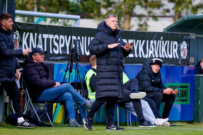 Það var mikið húllumhæ fyrir leik KR og FH. Ný útgáfa af stuðningsmannalagi KR, Öll sem eitt var frumflutt og var fjölmennt á vellinum. Leikurinn var einn sá allra lokaðasti sem hefur verið spilaður á tímabilinu og var afar lítið um marktækifæri og var markalaust jafntefli niðurstaðan. Leikurinn fór rólega af stað. Hvorugu liðinu tókst að skapa sér færi á fyrstu tuttugu mínútunum. Eftir því sem leið á fyrri hálfleik fór að færast aðeins meira líf á Meistaravelli. Theodór Elmar Bjarnason í leik kvöldsinsVísir/Hulda Margrét FH-ingar sköpuðu sér nokkur marktækifæri með því að beita skyndisóknum en skyndisóknirnar áttu það allar sameiginlegt að það voru teknar lélegar ákvarðanir á síðasta þriðjungi. Atli Sigurjónsson átti lang hættulegasta færi fyrri hálfleiks. Eftir gott spil við Sigurð Bjart sem dró menn til sín inn í teig og kom boltanum á Atla sem náði föstu skoti þrátt fyrir að þurfa að teygja sig í boltann en skotið fór rétt yfir markið. Það var hart barist á MeistaravöllumVísir/Hulda Margrét Tveimur mínútum eftir skot Atla var flautað til hálfleiks. Liðunum gekk bölvanlega að skapa sér færi og það kom á óvart að enginn áhorfandi hafi farið í hálfleik. Takturinn í síðari hálfleik var alveg eins og í fyrri hálfleik til að byrja með. Liðin voru í vandræðum með að skapa sér færi en sóknarþungi liðanna jókst aðeins þegar líða tók á leikinn. Atli Sigurjónsson var líflegastur hjá KRVísir/Hulda Margrét Þau færi sem heimamenn fengu komu flest öll í gegnum Atla Sigurjónsson sem var nokkuð líflegur. Atli var nálægt því að koma KR yfir um miðjan seinni hálfleik en skot hans sleikti stöngina. Á 89. mínútu vildi FH fá víti. Það kom skoppandi bolti fyrir framan Vuk Oskar Dimitrijevic í teignum þar sem Vuk ætlaði að láta vaða en Kristinn flæktist í honum. Hvorugu liðinu tókst að skora og var niðurstaðan markalaust jafntefli. Markalaust jafntefli var niðurstaðanVísir/Hulda Margrét Af hverju endaði leikurinn með jafntefli? KR-ingar hafa verið með það í kollinum að ætla ekki að spila sama varnarleik og í síðustu umferð þegar þeir fengu á sig fjögur mörk gegn Leikni. FH lagðist til baka og beitti skyndisóknum en sköpuðu sér nánast engin færi á meðan KR hélt boltanum innan liðs en ógnuðu lítið sem ekkert á síðasta þriðjungi og úr varð markalaust jafntefli. Hverjir stóðu upp úr? Atli Gunnar Guðmundsson, markmaður FH, sýndi það í kvöld og einnig í undanförnum leikjum að hann er betri markmaður en Gunnar Nielsen sem er orðinn varamarkmaður. Atli varði það sem kom á markið og var traustur milli stanganna. Atli Sigurjónsson var hættulegasti maður KR. Þau færi sem heimamenn fengu komu flest öll í gegnum hann. Hvað gekk illa? Ég fullyrði það að þetta var leiðinlegasti leikur tímabilsins. Sóknarleikur beggja liða var nánast enginn. Það var allt mjög fyrirsjáanlegt og hættulegustu færin komu eftir föst leikatriði sem voru ekki mörg. FH-ingar beittu skyndisóknum og þegar þeir fengu góðar stöður á vellinum var tekin skelfileg ákvörðun sem eyðilagði sóknina. Hvað gerist næst? Næsta sunnudag fer KR upp á Skaga og mætir ÍA klukkan 17:00. Á sama degi fer FH í Breiðholtið og mætir Leikni klukkan 14:00. Sigurvin: Áverkar Vuk segja til um að við hefðum átt að fá vítaspyrnu Sigurvin Ólafsson á hliðarlínunni ásamt Eiði SmáraVísir/Hulda Margrét Sigurvin Ólafsson, aðstoðarþjálfari FH, var ósáttur með að hafa ekki fengið víti undir lok leiks. „Það var vissulega leiðinlegt að áhorfendur sáu engin mörk í leiknum en þessi leikur var svolítil skák,“ sagði Sigurvin og hélt áfram. „Allt sem við vildum loka á í leik KR heppnaðist og þeir sköpuðu sér fá færi. Við fengum tækifæri til að refsa þeim en útfærðum það illa og náðum því ekki að skora.“ FH beitti skyndisóknum og hefði Sigurvin viljað sjá sína menn gera betur á síðasta þriðjungi. „Það er þekkt að þegar maður er búinn að liggja mikið til baka og fær loksins boltann hinu megin á vellinum verður maður spenntur og hefði ég viljað sjá mína menn vera aðeins yfirvegaðri á boltanum.“ Sigurvin vildi fá vítaspyrnu undir lok leiks þegar Kristinn Jónsson braut á Vuk Oskar Dimitrijevic. „Mér fannst við átt að fá vítaspyrnu undir lok leiks. Ég hef séð áverkana á mínum leikmanni sem er verið að tjasla saman núna og augljóslega var sparkað í hann.“ „Það stór sér á drengnum en dómarinn missti af þessu. Dómarinn tóka þessa ákvörðun í skyndi og því verður ekki breytt,“ sagði Sigurvin að lokum. Myndir: Barátta um boltannVísir/Hulda Margrét Pálmi Rafn að tækla boltannVísir/Hulda Margrét Sigurður Bjartur skallar boltannVísir/Hulda Margrét Steven Lennon með boltann í leik kvöldsinsVísir/Hulda Margrét Rúnar Kristinsson á hliðarlínunniVísir/Hulda Margrét