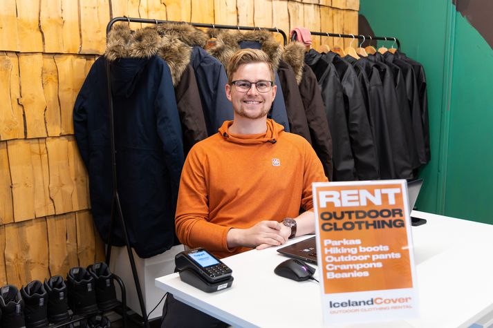 Hugmyndin að fyrirtækinu IcelandCover fæddist þegar annar stofnenda fyrirtækisins vann í Bláa lóninu, þar spjallaði hann við ferðamenn sem furðuðu sig á því af hverju ekki væri hægt að leigja útivistarfatnað. „Stuttu eftir það þá förum ég og vinur minn, sem er meðeigandi minn í fyrirtækinu á rúntinn. Ég segi honum frá hugmyndinni og honum finnst þetta frábært hugmynd og býr til SWOT greiningu daginn eftir, við eiginlega bara byrjum þetta strax eftir það,“ segir Davíð Örn Ingimarsson annar stofnenda. Stofnendur fyrirtækisins eru tveir, Davíð Örn Ingimarsson og Sveinbjörn Traustason en Sveinbjörn er viðskiptafræðimenntaður á meðan Davíð er með B.A. gráðu í handritagerð. Hann segir fyrirtækjarekstur sem þennan ekki hafa legið beinast við. Davíð Örn Ingimarsson (t.v.) og Sveinbjörn Traustason eru stofnendur fyritækisins. Seldu ekki eina flík fyrsta árið „Við stofnuðum þetta fyrirtæki og það gerðist ekkert í eitt ár, við seldum ekki eina flík í heilt ár nánast,“ segir Davíð. Fyrirtækið hafi verið stofnað í desember 2018 og fyrsta flík leigð út í ágúst eða september 2019. Hann segir þó söluleysið hafa verið þeim sjálfum að kenna, þeir hafi ekki vitað hvað þeir væru að gera. Davíð segir fyrirtækið hafa verið rekið í hjáverkum fyrst um sinn þeir hafi þó verið heppnir að vera ekki komnir á fullt skrið þegar Covid skall á. Hann segir reksturinn nú vera að komast á fulla ferð en fyrirtækið er komið í húsnæði á Laugavegi 54. Búðin er staðsett á Laugavegi 54 og opnaði á mánudaginn í síðustu viku.Vísir/Vilhelm Davíð segist upplifa mikla eftirspurn eftir þjónustu sem þessari, hótelin, fólkið sem sé að þjónusta ferðamennina sé mjög spennt fyrir þessu. „Við erum fyrirtæki sem að leigir út útivistarfatnað fyrir þennan hefðbundna ferðamann sem er að fara á Snæfellsnes, sem er að fara gullna hringinn, suðurströndina,“ segir Davíð. Kjarna fyrirtækisins segir hann vera að gera ferðamönnum kleift að njóta landsins. „Við erum að gera ferðamönnum kleift að upplifa Ísland án þess að þurfa að hafa of miklar áhyggjur af veðrinu. Þú vilt ekki vera að reyna að sjá norðurljósin en þér er svo ótrúlega kalt af því þú ert svo illa klæddur að þú þorir ekki að fara út úr bílnum eða vilt ekki vera lengur úti heldur en tvær, þrjár mínútur,“ segir Davíð. Í boði eru til dæmis úlpur og fóðraðir regnjakkar.Vísir/Vilhelm Bandaríkjamenn helstu viðskiptavinirnir Hann segir ferlið ganga þannig fyrir sig að fólk panti flíkurnar á netinu, velji sér stærð og hvenær það vilji fá flíkurnar afhentar. IcelandCover keyri fatnaðinn svo út á höfuðborgarsvæðinu og fari með á hótel, hostel eða í Airbnb íbúðir. „Við reynum að ábyrgjast það að fólk fái réttu stærðina, þegar við komum með fötin til þeirra þá erum við með nokkrar stærðir. Þannig ef þú pantar medium þá komum við vanalega með medium og small.“ Aðspurður hverjir helstu viðskiptavinir fyrirtækisins séu segir hann það vera Bandaríkjamenn, þá sérstaklega frá hlýju fylkjum Bandaríkjanna. Hann segir allur gangur vera á því hvort fólk sé að leigja fatnað fyrir lengri eða styttri ferðir. „Sérstaklega núna eftir að við opnuðum búðina þá fáum við fólk sem vill bara leigja fötin í einn dag og svo kom hérna manneskja og vildi leigja föt í tvær vikur,“ segir Davíð. Þurftu að loka fyrir pantanir í desember Hann segir athyglina sem fyrirtækið hafi fengið hingað til verið lífræna en fyrirtækið hafi ekki auglýst neitt. „Við erum bara rétt að byrja núna og erum mjög vongóðir fyrir veturinn, sérstaklega líka horfandi á ferðamannatölurnar sem við erum að sjá,“ segir Davíð. Dæmi séu um kúnna sem séu að bóka langt fram í tímann en Davíð segir fatnaðinn hafa verið uppbókaðan í desember 2019 og 2021. Hann segir fyrirtækið hafa þurft að loka fyrir pantanir í desember 2021 en hann vilji gera það sem hann getur til þess að þeir þurfi ekki að gera það aftur. Flækjulaus fatnaður Fatnaður fyrirtækisins kemur frá sænska útivistarmerkinu Didriksons en flíkurnar segir Davíð vera einfaldar og góðar. „Pælingin á bak við fötin er alltaf, eins og ég kalla það á ensku svona „no nonsense“ úrval. Þetta eru föt sem þú þarft fyrir Ísland sem ég og við Íslendingar notum á veturna, ekkert meira og ekkert minna,“ segir Davíð. Hann segir fyrirtækið hlusta á eftirspurn til þess að ákvarða hvort þörf sé á frekara vöruúrvali. Þeir hafi til dæmis farið að leigja út útivistarskó vegna þess að önnur hvor skilaboð sem þeir fengu snerust að því hvort hægt væri að fá slíka. „Við erum til dæmis búin að fá þá nokkrar fyrirspurnir um göngustafi en við þurfum aðeins að sjá hvort það hafi verið út af eldfjallinu eða hvort að það sé raunveruleg eftirspurn eftir göngustöfum og þá náttúrulega hikum við ekki við það að kaupa nokkra göngustafi og leigja þá út,“ segir Davíð. Hér má sjá útivistarskóna sem standa ferðalöngum til boða.Vísir/Vilhelm Hann segir þá til dæmis hafa verið fljóta að byrja að bjóða upp á mannbrodda en ástæðuna megi rekja til starfsreynslu Davíðs hjá Bláa lóninu. Þar hafi hann séð marga renna og slasa sig. „Ég sá svo ótrúlega marga einstaklinga, reyndar augljóslega hálf nakin í sundfötunum sínum, renna og þá þurfti bara að hringja á sjúkrabíl af því að þau brutu eitthvað. Þá var bara ferðin búin, það er ótrúlega leiðinlegt.“ Að lokum segist Davíð vona að vöxtur verði hjá fyrirtækinu, það væri frábært að þurfa að redda meiri fatnaði vegna þess að hann væri allur í útleigu. „Ég bara hérna kó