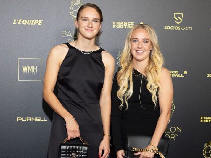 Mead var að sjálfsögðu viðstödd verðlaunahófið vegna Gullboltans í gærkvöld og varð í 2. sæti í valinu á knattspyrnukonu ársins, á eftir spænska snillingnum Alexiu Putellas. Hollenska markamaskínan Vivianne Miedema var einnig á hófinu og hefur mynd af þeim Mead, sem eru samherjar hjá enska félaginu Arsenal, vakið athygli á samfélagsmiðlum. Myndin er úr Getty-myndabankanum og í texta með myndinni stendur að sjá megi Miedema ásamt „gesti“ á verðlaunahófinu í París í gær. Miedema deildi sjálf myndinni og kvaðst ánægð með að hafa fengið að taka þennan gest með sér. Happy I got to take my guest yesterday @bmeado9 pic.twitter.com/8CmpFeUDag— Vivianne Miedema (@VivianneMiedema) October 18, 2022 Miedema er húmoristi og má geta þess að hún bauðst til að taka viðtal á íslensku þegar sá sem þetta skrifar ræddi við hana eftir 1-0 sigur Hollands gegn Íslandi í síðasta mánuði. Sjálf virtist Mead hafa húmor fyrir meðvitundarleysi þess sem skrifaði myndatextann fyrir Getty og skrifaði „LOL“ til marks um að hún hefði hlegið upphátt. LOL — Beth Mead (@bmeado9) October 18, 2022 Þær Mead og Miedema geta haldið kyrru fyrir í Frakklandi því Arsenal á fyrir höndum fyrsta leik í riðlakeppni Meistaradeildar Evrópu, gegn meisturum Lyon annað kvöld. Liðin leika í sama riðli og Zürich og Juventus, lið Söru Bjarkar Gunnarsdóttur, sem einnig mætast á morgun.