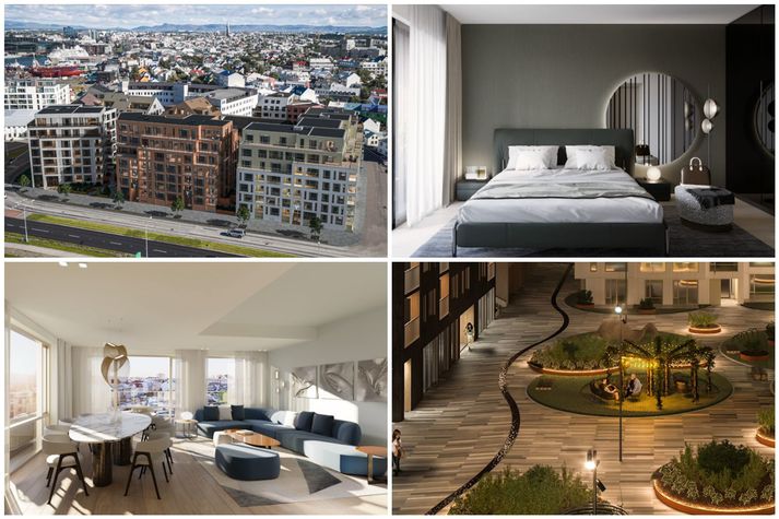 Það var arkitektastofan Nordic Office of Architecture, áður Arkþing, sem vann samkeppni um húsin fremst á reitnum og er hönnunin alveg einstök. Arkitektinn Hjalti Brynjarsson er einn af þeim sem kom að teikningu húsanna. „Þegar við komum að þessu verkefni fannst okkur svona svolítil þörf á því að brjóta byggingarnar upp, aðeins svona að minnka skalann, og hugsuðum þetta svona sem þrjú stakstæð hús í staðinn fyrir eitt,“ segir Hjalti. Með þessu vildu þau hámarka birtu og útsýnisskilyrði í íbúðunum og fjölga íbúðum með sjávarútsýni. Þá vildu þau gefa íbúðunum meira pláss og draga fram þau gæði sem svæðið hefur upp á að bjóða. „Það eru mjög fjölbreyttar íbúðagerðir, allt frá litlum einstaklingsíbúðum upp í stórar og miklar með þakgörðum. En það eru í rauninni allir sem fá flott útsýni hérna, bæði litlu íbúðirnar og þessar mjög stóru íbúðir.“ Fjölbreyttar íbúðir verða í boði.Stöð 2 Lækur minning um járnbrautarlestina Á milli húsanna er einstakur garður þar sem form, lýsing og plöntur eru í aðalhlutverki. Í garðinum verður einnig lítill lækur sem setur mikinn svip á garðinn. Landslagsarkitektinn Hermann Ólafsson er einn af þeim sem hannaði garðinn. Við hönnunina tók hann mið af Héðinslóðinni og umhverfinu. „Svo erum við með nálægðina við höfnina og þá staðreynd að þarna í gegnum reitinn fór eina járnbrautarlest Íslandssögunnar. Við veltum því dálítið fyrir okkur hvernig við ættum að gera þeirri sögu skil en enduðum á því að gera þarna svona spor í gegnum allan garðinn sem á að minna á þetta,“ segir Hermann. Af praktískum ástæðum eru það þó ekki raunverulegir járnbrautarteinar sem liggja í gegnum garðinn. Þess í stað var ákveðið að láta vatn renna eftir bogadreginni línu. Úr verður eins konar lækur og er útkoman einstök. „Það er okkar svona minning um járnbrautarteinanna.“ Lækur mun renna í gegnum garðinn.Stöð 2 Plöntur gegna stóru hlutverki Gróður spilar einnig stórt hlutverk í hönnuninni. Klifurplöntur eru látnar þekja nokkra veggi og notast er við led-lýsingu til þess að lýsa upp ákveðin svæði. „Vonandi lukkast það. Það eru ekki mörg dæmi um þetta. Við höfum séð þetta víða erlendis. Auðvitað eru ekki margar tegundir sem lifa þetta af hérna, en allir þekkja gömlu bergfléttuna,“ segir Hermann. Hér fyrir neðan má sjá Ísland í dag innslagið í heild sinni. Klippa: Ísland í dag - Lækur og töff hönnun á Héðinsreitnum!