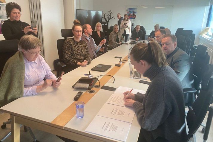 Búið að semja og öllum verkföllum aflýst Magnús Jochum Pálsson skrifar 10. júní 2023 07:54 Samninganefndin við undirritun samningsins í morgun. Ríkissáttasemjari Ellefu aðildarfélög BSRB og Samband íslenskra sveitarfélaga undirrituðu nýjan kjarasamning á áttunda tímanum í morgun. Verkfallsaðgerðum 2500 félagsmanna aðildarfélaga BSRB í þrjátíu sveitarfélögum hefur verið aflýst. Samningurinn var undirritaður klukkan 7.15 í morgun eftir fjórtán klukkustunda formlega samningalotu. Í fréttatilkynningu BSRB um fundinn segir að mánaðarlaun hækki að lágmarki um 35.000 krónur og desemberuppbót á árinu 2023 verði 131.000 krónur. Samkomulag hafi náðs um sáttagreiðslu að upphæð 105.000 kr. eftir að aðstoðarsáttarsemjarar lögðu fram innanhústillögu á fjórða tímanum í nótt. Auk þess var samið um hækkun á lægstu launum og viðbótargreiðslur fyrir tiltekin starfsheiti. Samningurinn gildir frá 1. apríl 2023 til 31. mars 2024 og nær til um 7000 félagsmanna BSRB. Formlegur samningafundur samninganefnda hófst klukkan sex í gærkvöldi. Fyrir það höfðu óformlegir fundir sáttasemjara, Aldísar G. Sigurðardóttur og Elísabetar S. Ólafsdóttur, með samningsaðilum farið fram frá því í gærmorgun og náði samningalotan því alls 21 klukkustund. Sonja Ýr Þorbergsdóttir, formaður BSRB, undirritar samninginn í morgunsárið meðan aðrir samningaaðilar fylgjast með.BSRB Hóflega sátt með samninginn „Það hefur verið magnað að upplifa kraftinn, samstöðuna og baráttuþrekið meðal félagsfólks okkar síðustu vikur sem og stuðning samfélagsins,“ sagði Sonja Ýr Þorbergsdóttir, formaður BSRB, í tilefni undirritunar og sagði hún að margt jákvætt mætti finna í samningnum. „Við getum verið hóflega sátt við þessa niðurstöðu. Lægstu laun hækka verulega auk þess sem við fengum sáttagreiðslu samþykkta og hækkun á tiltekin starfsheiti,“ sagði hún einnig. Félögin sem gera kjarasamninginn eru: Félag opinbera starfsmanna á Austurlandi FOSS - stéttarfélag í almannaþjónustu Kjölur – stéttarfélag starfsmanna í almannaþjónustu Sameyki - stéttarfélag í almannaþjónustu Starfsmannafélag Garðabæjar Starfsmannafélag Húsavíkur Starfsmannafélag Hafnarfjarðar Starfsmannafélag Mosfellsbæjar Starfsmannafélag Kópavogs Starfsmannafélag Suðurnesja Starfsmannafélag Vestmannaeyjabæjar Á næstu dögum munu aðildarfélög BSRB kynna samningana fyrir sínu félagsfólki. Eftir það verða samningarnir bornir undir atkvæði félagsmanna þann 19. júní. Ekki hefur náðst í Elísabetu Ólafsdóttur, aðstoðarríkissáttasemjara, eða Sonju Ýr Þorbergsdóttur, formann BSRB. Stéttarfélög Sveitarstjórnarmál Kjaramál Vinnumarkaður Kjaraviðræður 2022-23 Tengdar fréttir Vilja að BSRB hætti birtingu „ólögmætra áróðursauglýsinga“ strax í dag Samband íslenskra sveitarfélaga hefur skorað á BSRB að láta af því sem sambandið kallar „ólögmætar áróðursauglýsingar“ fyrir klukkan fjögur í dag. Auglýsingarnar sem um ræðir eru birtar undir nafni sveitarfélaga. 9. júní 2023 11:43 Á annan tug verkfallsbrota hafi átt sér stað BSRB segir að á annan tug verkfallsbrota hafi átt sér stað í að minnsta kosti þrettán sveitarfélögum síðustu tvo sólarhringa. Verkfallsbrot á leikskólum hafi verið sérstaklega áberandi síðustu daga, þar sem stjórnendur leikskóla virðist hafa fengið fyrirmæli um breytingar á skipulagi sem feli í sér verkfallsbrot. Eins hafi borist ábendingar um brot á bæjarskrifstofum og í sundlaugum. 8. júní 2023 17:48 Segir sveitarfélögin jafnvel í hættu á að missa jafnlaunavottunina Sonja Ýr Þorbergsdóttir, formaður BSRB, segir ákvörðun sveitarfélaganna að greiða ekki sömu laun fyrir sömu störf heldur mismuna fólki eftir því hvaða stéttarfélagi það tilheyrir brjóta gegn jafnréttislögum og jafnlaunavottun. 8. júní 2023 13:40 „Þetta tilboð frá okkur hafði legið á borðinu í sex mánuði“ Inga Rún Ólafsdóttir, sviðsstjóri kjarasviðs hjá Sambandi íslenskra sveitarfélaga, segir krafa BSRB um eingreiðslu vegna munar á samningi BSRB og SGS við sveitarfélögin tilhæfulausa. Samningurinn hafi legið á borði BSRB í sex mánuði, félagið hafi verið hvatt til að breyta samningum en því tilboði hafi verið hafnað. BSRB geti auðveldlega leitað til dómstóla telji stéttarfélagið sig svikið. 6. júní 2023 10:56 Mest lesið Sextán ára fékk greitt fyrir að færa Epstein stúlkur Erlent Milljónir til almannatengla og átta sinnum meira en í fyrra Innlent Systir og amma drengs í meðferð létust í Suður-Afríku Innlent Ljósmyndir horfnar úr Epstein-skjölunum, þar á meðal ein af Trump Erlent „En hver sagði að þetta ætti að vera auðvelt?“ Innlent Grunuð um að koma til landsins til að brjóta á öldruðum Innlent Sex hundruð miðar á vettvangi morðsins: „Fokking hálfvita fífl bæði tvö!!!!“ Innlent Bindur vonir við Vor til vinstri Innlent „Við erum pottþétt að koma út í mínus, hversu miklum vitum við ekki“ Innlent „Þetta er alveg ásættanlegur samningur“ Innlent Fleiri fréttir Eyjólfur í orlof og Inga þrefaldur ráðherra Vegagerðin segir flóðin í Vík fyrirséð Fjölmiðlar, bókmenntir og hægrimennska á Sprengisandi „En hver sagði að þetta ætti að vera auðvelt?“ Milljónir til almannatengla og átta sinnum meira en í fyrra Grunuð um að koma til landsins til að brjóta á öldruðum Leggja hald á skip á alþjóðahafsvæði undan ströndum Venesúela Bindur vonir við Vor til vinstri Systir og amma drengs í meðferð létust í Suður-Afríku „Við erum pottþétt að koma út í mínus, hversu miklum vitum við ekki“ „Þetta er alveg ásættanlegur samningur“ Deildi nöfnum skjólstæðinga á Instagram Íslendingar