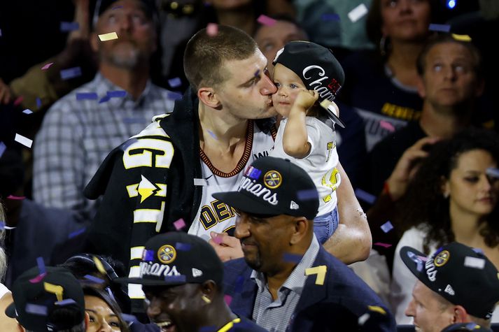 Svefnlausir Serbar að springa úr stolti yfir Jokic sínum Ingvi Þór Sæmundsson skrifar 14. júní 2023 09:00 Nikola Jokic smellir kossi á dóttur sína eftir að Denver Nuggets varð NBA-meistari. getty/Justin Edmonds Serbar eru gríðarlega stoltir af Nikola Jokic eftir að hann leiddi Denver Nuggets til síns fyrsta NBA-meistaratitils. Denver varð NBA-meistari aðfaranótt þriðjudags eftir sigur á Miami Heat, 94-89, á heimavelli. Denver vann einvígið, 4-1. Jokic skoraði 28 stig og tók sextán fráköst í fimmta leiknum og var valinn besti leikmaður úrslitaeinvígisins. Þar var hann með 30,2 stig, 14,0 fráköst og 7,2 stoðsendingar að meðaltali í leik. Mikið vatn hefur runnið til sjávar síðan Denver valdi Jokic með 41. valrétti í nýliðavalinu 2014. Þá kunnu fáir deili á honum en í dag er hann án mikils vafa besti körfuboltamaður heims. Jokic var valinn verðmætasti leikmaður NBA (MVP) 2021 og 2022 en fór loks alla leið með Denver-liðinu í vetur. Aldrei hefur leikmaður sem var valinn jafn seint í nýliðavalinu verið valinn bestur í úrslitaeinvígi. Jokic er fyrstur í sögu NBA til að skora flest stig, taka flest fráköst og gefa flestar stoðsendingar allra í sömu úrslitakeppninni.getty/Justin Edmonds Jokic er sjötti leikmaðurinn sem er fæddur utan Bandaríkjanna sem er valinn bestur í úrslitaeinvígi og sá fyrsti frá Austur-Evrópu. Og skiljanlega eru Serbar stoltir af sínum manni. „Það hefur verið mjög spennandi og sérstakt að horfa á Nikola í hverjum einasta leik,“ sagði Nebojsa Knezevic, serbneskur þjálfari karlaliðs ÍA í körfubolta. „Síðast þegar ég fékk þessa tilfinningu var þegar Sacramento Kings mætti Los Angeles Lakers í úrslitum Vesturdeildarinnar 2002. Þá léku Peja Stojakovic og Vlade Divac með Kings. Því miður unnu þeir ekki. En ég held að enginn hafi sofið í gærnótt og öll Serbía er mjög stolt.“ Hógvær fjölskyldumaður Jokic lætur verkin tala og er ekkert sérstaklega upprifinn yfir allri athyglinni sem hann fær. Eftir að Denver tryggði sér titilinn sagðist hann varla nenna að fara í meistaraskrúðgönguna sem fylgir venjulega titli sem þeim sem Nuggets vann. „Hann býr yfir ótrúlegum hæfileikum. Hann er svo hógvær, fjölskyldumaður sem gerir alla í kringum sig betri,“ sagði Nebojsa um hvað gerir Jokic að jafn frábærum körfuboltamanni og hann er. „Nikola er mjög frægur í Serbíu, sérstaklega núna og mér finnst allir vera mjög ánægðir fyrir hans hönd og stoltir af honum. Allir vonast til að hann leiði Serbíu til gullverðlauna á HM í ár.“ Frábært að vera Serbi þessa dagana Nebojsa segir að Jokic sé eflaust færsælasti íþróttamaður Serba í sögulegu samhengi, fyrir utan auðvitað Novak Djokovic, sigursælasta tenniskappa sögunnar. Eftir sigur Novaks Djokovic á Opna franska meistaramótinu hefur enginn tenniskappi unnið fleiri risamót í sögunni en hann, eða 23.getty/Quality Sport Images „Serbía átti marga frábæra íþróttamenn í gamla daga og sumir þeirra unnu ótrúleg afrek. En Djokovic og Jokic eru á öðrum stað og mjög ráðandi í sinni íþrótt. Það er frábært að vera Serbi þessa dagana,“ sagði stoltur Nebojsa að lokum. NBA Serbía Mest lesið Arnar Daði rekinn frá Stjörnunni en áfram þjálfari kvennaliðsins Handbolti Koepka fyrsta stjarnan sem riftir samningi við LIV Golf Ótrúlegur sigur á HM: „Ég er mjög tregur svo pressan nær ekki til mín“ Sport „Þetta er stærsti klúbbur Íslands“ Íslenski boltinn Þessi tíu eru tilnefnd sem Íþróttamaður ársins 2025: 23 ára aldursmunur Sport Stefndi á ÓL en fannst látinn á hótelherbergi Sport Man. Utd reyndi stíft en Semenyo kaus City Enski boltinn Sagan ekki sönn: „Veit ekki hvaðan þetta á að hafa komið“ Íslenski boltinn Öll höllin æpti nafn Gísla í spennutrylli Handbolti Viðurkenna að VAR hafi bilað Fótbolti Fleiri fréttir Missti alveg stjórn á skapinu en það skilaði sigri Stórstjarna úr WNBA-deildinni í heimsókn á Íslandi ÍR-ingar bæta við sig reyndum og hittnum Króata Í bann fyrir að kasta flösku í barn Hjalti Þór ráðinn aðalþjálfari Álftaness Kolbrún María kom við sögu í endurkomu Hannover Næstframlagshæstur í grátlegu tapi Fékk næstum 4,5 milljóna króna sekt fyrir að sýna dómara fingurinn „Komum eins og aumingjar inn í þennan leik“ „Jólasteikin mun bragðast betur í ljósi þessa sigurs“ Stjarnan - Álftanes 108-104 | Unnu grannaslaginn naumlega Uppgjörið: Ármann - ÍA 102-83 | Ármann náði í gríðarlega mikilvæg stig í fallbaráttunni með sigri gegn Skagamönnum Jokic tók NBA-met af Abdul-Jabbar í nótt KR á frábærum stað en getur ekki unnið titilinn Útilokar ekki breytingar: „Er klárlega að líta í kringum mig“ Uppgjörið: Keflavík - Njarðvík 93-83 | Enn taplausir í Sláturhúsinu „Ánægður að spila ekki betur en þetta en vinna samt“ „Svo lengi sem það er ekki jákvæð og góð umfjöllun um okkur erum við sáttir“ „Hefðum þurft að hafa heppnina með okkur í liði“ ÍR - Valur 82-85 | Baráttusigur í Breiðholti „Sáttur að geta farið heim, borðað vel og fengið mér nokkra kalda“ Tindastóll - KR 130-117 | Kláruðu gestina í seinni hálfleik Þór Þ. - Grindavík 94-106 | Baráttusigur gegn löskuðu liði Þórs Liðsfélagar Guðbjargar ekki fæddir þegar hún spilaði fyrsta leikinn Þola þeir ekki gott umtal? „Helmingur minna leikmanna skilur ekki íslensku“ „Ef við hefðum ekki verið að setja þessi skot þá hefðum við skíttapað“ KR á toppinn Uppgjörið: Grindavík - Haukar 92-93 | Fullkomin jólagjöf Spilaði 13 mínútur en var stigahæstur Rýndu í gamlar myndir: „Svakalega ertu kringlóttur í framan“ Sjá meira