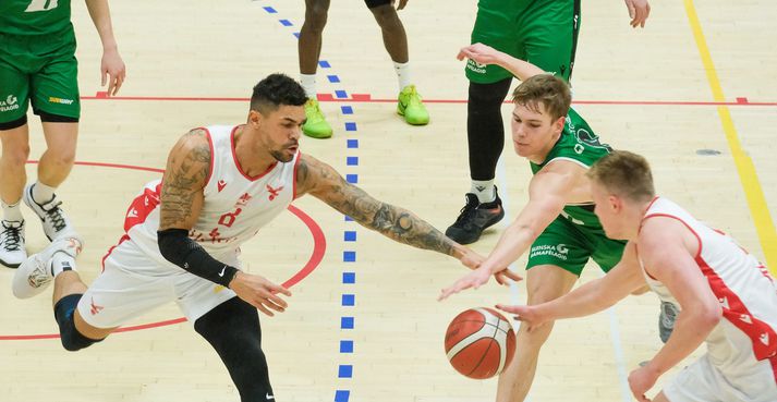 Leikur Vals og Njarðvíkur skiptist á að vera eitthvað fyrir augað og svo ekki. Úr varð spennuleikur en Valsmenn reyndust sterkari á svellinu í lok leiks og náðu í stigin sem í boði eru. Þeir verða því fyrir ofan Njarðvíkinga yfir hátíðirnar. Leikurinn endarði 91-87. Joshua Jefferson og Chaz Williams börðust í kvöld.Vísir / Anton Brink Leikurinn hófst en þegar sjö sekúndur voru liðnar af leiknum þá fraus klukkan og stigataflan lagði upp laupana. Farið var í að færa ritaraborðið yfir á vænginn fjær aðalstúkunni og tók sú aðgerð um 20 mínútur. Leikmönnum er því fyrirgefið að byrja leikinn á kaldari nótum en kannski venja er. Heimamenn byrjuðu betur og náðu fjögurra stig forskoti en Njarðvíkingar náðu að draga þá nær sér og var mikið jafnvægi á liðunum og voru liðin jafn mistæk eins og þau voru hittin á köflum. Það átti eftir að vera saga leiksins. Valsmenn enduðu fyrsta leikhlutann betur og voru yfir 26-22. Um miðjan annan leikhluta fékk Chaz Williams tvær villur og var hann settur á bekkinn. Þetta gerði Valsmönnum kleyft að stöðva sóknar aðgerðir Njarðvíkinga betur en náðu ekki að nýta sér það sóknarmegin. Njarðvíkingar náðu að lifa þann kafla af og komast yfir þegar um þrjár mínútur voru til hálfleiks en Valsmenn náðu ekki að skora í fjórar mínútur utan af velli og mikið frost í kortunum. Síðustu 10 mínútur fyrri hálfleiksins enduðu 11-10 fyrir Val en Njarðvíkingar héldur forskotinu sem þeir náðu og var staðan 46-48 í hálfleik. Frank Booker átti góðan leik gegn Njarðvík. Skoraði 20 stig og tók 10 fráköst.Vísir / Anton Brink Hittnin í upphafi seinni hálfleiks var í einu orði sagt hræðileg en það tók liðin hálfan leikhlutann að komast af stað sóknarlega. Valsmenn náðu góðum takti og komust yfir en náðu ekki að hrista gestina af sér en skipst var á aðgerðum liðanna nánast allan hálfleikinn. Þriðji leikhluti endaði í stöðunni 68-64 fyrir heimamenn. Chaz Williams á flugiVísir / Anton Brink Fjórði leikhluti byrjaði eins og hinir leikhlutarnir með lélegri hittni en Valsmenn náðu mest sex stiga forskoti þegar sex mínútur voru eftir. Þá náðu Njarðvíkingar að bíta frá sér og jafna í stöðunni 77-77 þegar þrjár mínútur voru eftir. Í stöðunni 83-81 braut Chaz á Jefferson í þriggja stiga skoti sem var ekki á leiðinni ofan með klaufalegum hætti þegar hann hljóp utan í skotmanninn. Ástþór Svalason á fleygiferð í átt að körfunniVísir / Anton Brink Þrjú víti voru veitt og skoraði Jefferson úr þeim öllum. Þá var munurinn orðinn fimm stig og 57 sekúndur voru eftir. Þetta var eitt af fjölmörgum atriðum sem Benedikt Guðmundsson þjálfari Njarðvíkinga gat pirrað sig á en nánar um það á eftir. Valsmenn settu niður vítin sín á lokakaflanum og uppskáru 91-87 sigur sem hefði getað dottið Njarðvíkur megin með örlítilli heppni og skynsemi. Afhverju vann Valur? Bæði lið voru ekki á miklu flugi í þessum leik en það má segja að Valur hafi flogið örlítið hærra í lokin. Skynsemi og reynsla skiptu kannski sköpum þarna en að sama skapi þá voru Njarðvíkingar klaufar, t.d. með því að brjóta af sér í þriggja stiga skoti, og misstu Valsmenn of langt frá sér í blálokin. Hvað gekk illa? Báðum liðum gekk illa að hitta á löngum köflum og það hafði áhrif á það hvernig þeim gekk að nýta varnarstoppin sín. Hvorugu liði tókst að slíta sig frá hinu og úr varð því spenna í lokin. Njarðvíkingum finnst örugglega dómurunum hafa gengið illa því dæmdar voru tvær tæknivillur á liðið fyrir kjaftbrúk. Dæmdar voru sjö fleiri villur á Njarðvíkinga og fengu Valsmenn 25 vítaskot gegn 12 Njarðvíkinga. Svo mikill var pirriningurinn að Benedikt Guðmundsson, þjálfari Njarðvíkinga, neitaði að koma í viðtal við Vísi og Stöð 2 Sport og sagði að hann færi í langt bann ef hann kæmi í viðtal. Sagði hann það vera vegna uppsafnaðs pirrings út í tvo af dómurum leiksins og þrátt fyrir boð um að kæla sig niður þverneitaði hann viðtali. Dómarartríóið aflaði sér engra vinsælda hjá Njarðvíkingum í kvöld.Vísir / Anton Brink Bestur á vellinum? Joshua Jefferson skoraði 24 stig fyrir sína menn og sendi sex stoðsendingar. Hann var hæstur einnig í +/- flokknum en Valur vann hans mínútur með átta stigum. Hjá Njarðvík Daðraði Chaz Williams við þrefalda tvennu með 18 stig, níu fráköst og 11 stoðsendingar. Dominykas Milka skoraði 30 stig og tók 14 fráköst. Hvað næst? Jólafrí. Liðin fara að æfa og sleikja sárin og mæta til leiks 4. janúar. Maciej: Vorum í séns hérna í lokinn og það er okkar að taka hann ekki Maciej Baginski var til viðtals eftir leik.Vísir / Anton Brink Þar sem þjálfari Njarðvíkinga vildi ekki koma í viðtal eftir leik þá sat fyrirliði Njarðvíkinga Maciej Baginski fyrir svörum eftir leikinn. Hann var spurður út í það hvort hann hafi fundið fyrir því að þetta væri síðasti leikur fyrir jól. „Já þetta var mjög flatt allt saman. Þetta var meira eins og æfingaleikur en leikur í deildinni. Það var lélegt hjá okkur að taka þetta ekki. Valsliðið var á mjög lágu orkustigi og mögulega duttum við niður a´sama stig en það var eitthvað sem við ætluðum alls ekki að gera.“ En hvað sér fyrirliðinn í fljótu bragði þá hvað hans menn hefðu getað gert betur í dag til að ná í sigurinn? „Við klikkum úr skotum sem gerist í körfubolta svo það er kannski ekki það. Við hefðum mátt vera aggressívar í vörninni. Við leyfðum þeim að leika sér fram og til baka og sækja einn á einn á Milka. Við hefðum átt að þrengja aðeins völlinn. Þeir fengu full mikið af auðveldum sniðskotum og stigum eftir sóknarfráköst.“ Maciej var spurðu