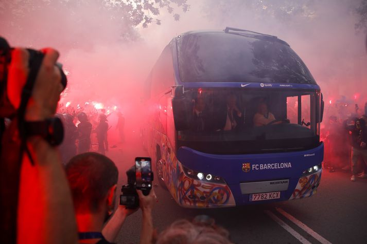Barcelona vann fyrri leikinn, var á heimavelli og komst yfir í leiknum en varð á endanum að sætta sig við 4-1 tap á móti Paris Saint Germain og það að vera úr leik í Meistaradeildinni.' Barcelona fans have mistakenly thrown objects towards the Barcelona team bus, thinking it was PSG arriving for their #UCL clash pic.twitter.com/URLQSzH91C— SPORTbible (@sportbible) April 16, 2024 Barcelona gat ekki spilað á heimavelli sínum á þessu tímabili þar sem verið er að endurbyggja Nývang. Liðið spilaði þess í stað á Ólympíuleikvanginum í Barcelona. Stuðningsmenn Barcelona ætluðu að senda gestunum frá París skýr skilaboð fyrir leik en eitthvað rugluðust þeir í ríminu. Þeir hófu nefnilega að kasta öllu lauslegu í rútu Barcelona þegar hún mætti á svæðið með þeirra eigin leikmenn. Það var ekki nóg fyrir þessu æstu og ástríðufullu stuðningsmenn að rútan var vel merkt félaginu. Auðvitað er aldrei gott þegar stuðningsmenn ráðast á rútur andstæðinganna enda mikil hætta á slysi en það að ráðast á eigin rútu er eins vandræðalegt og rekstur Barcelona undanfarin ár. These Barcelona fans mistook the bus, aiming to target PSG players but ended up damaging their own team's vehicle #ucl #ChampionsLeague pic.twitter.com/2e4p6ZVOLH— MARCA in English (@MARCAinENGLISH) April 16, 2024