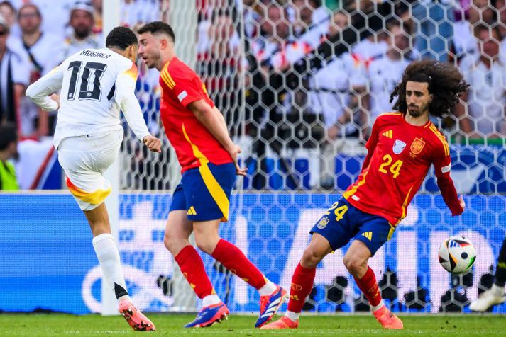 Margir, og þá sérstaklega Þjóðverjar, muna eflaust enn eftir atvikinu í framlengingu leiksins þegar Marc Cucurella, bakvörður Spánar, fékk skot Jamals Musiala í höndina innan teigs. Enski dómarinn Anthony Taylor dæmdi ekkert og kollegar hans sem sinntu myndbandsdómgæslu ákváðu sömuleiðis að grípa ekki inn í. Þetta gerðist á 107. mínútu, í stöðunni 1-1, en í stað þess að Þýskaland fengi víti og gullið tækifæri til að komast yfir þá vann Spánn 2-1 með marki Mikels Merino á lokamínútu framlengingarinnar. Spánverjar enduðu svo á að verða Evrópumeistarar. Ákvörðun Taylors var vægast sagt umdeild, enda Cucurella með höndina nokkuð frá líkamanum þegar skot Musiala hæfði hana, og núna hefur dómaranefnd UEFA viðurkennt að dæma hefði átt vítaspyrnu. Höndin of langt frá búknum Spænski miðillinn Relevo greinir frá þessu og segir að dómaranefndin vegi reglulega og meti dóma í leikjum, til að stuðla að auknu samræmi í dómgæslu í Evrópu. Eftirlitsmaðurinn Roberto Rosetti segir í áliti til nefndarinnar: „Samkvæmt nýjustu viðmiðum UEFA ætti að taka strangar á því þegar skot eru stöðvuð með hendi, nema að höndin sé mjög nálægt eða snerti búkinn. Í þessu tilviki var höndin sem stöðvaði skotið ekki mjög nálægt búknum, og þannig gerði varnarmaðurinn sig stærri, svo að það hefði átt að dæma víti.“ Tveir og hálfur mánuður eru síðan að leikurinn fór fram og því ekkert sem að Þjóðverjar geta gert úr þessu annað en að svekkja sig á orðnum hlut.