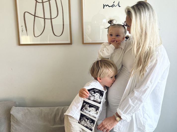 Jóna Kristín og maðurinn hennar, Brynjar Benediktsson, eignuðust þrjú börn á þremur og hálfu ári, en fyrsta barnið þeirra, Andres Aron kom í heiminn árið 2020. „Við vorum því meira en tilbúin að fara í barneignir árið 2016 þegar ég hætti að spila fótbolta. En það gekk brösulega og við vorum greind með „óútskýrða“ ófrjósemi og prófum allskonar „lítil“ inngrip fram til ársins 2018 þegar við fórum á fullt í tæknifrjóvgunarferli, bæði hér á Íslandi og í Grikklandi. Ég fæ svo loksins jákvætt þungunarpróf í lok árs 2019,“ segir Jóna. Jóna segir að fljótlega eftir að hún hætti með Andres á brjósti varð hún óvænt ólétt, eins og hún orðar það, af dóttur þeirra, Andreu Lind sem kom í heiminn árið 2022. Sagan endurtók sig þegar hún varð ólétt af þriðja barni þeirra, Hauki Leo, sumarið 2023, sem kom í heiminn 1. mars síðastliðinn. Snemma á meðgöngunni kom í ljós að Haukur Leo væri með meðfæddan hjartagalla og að hann þyrfti að fara erlendis í aðgerð. „Við fórum í stóra opna hjartaaðgerð í Lundi í sumar og hefur allt gengið framar vonum í bataferlinu hans,“ segir Jóna. Átján ár af ást Jóna og Brynjar kynnust þegar þau voru á fyrsta ári í Verslunarskóla Íslands árið 2006 og hafa verið saman allar götur síðan. Þau eru bæði fyrrverandi knattspyrnufólk og reka saman fyrirtækin, Soccer and Education USA, sem sérhæfir sig í að aðstoða íþróttafólk við að komast á háskólastyrk til Bandaríkjanna, og ferðaskrifstofuna, Iceland Soccer Travel, þar sem þau sjá um skipulagningu íþrótta- og upplifunarferða á Íslandi og í Bandaríkjunum. Hér fyrir neðan svarar Jóna Kristín spurningum í viðtalsliðnum Móðurmál. Hvernig lýsir þú stundinni þegar þú komst að því að þú værir ófrísk?Upplifanirnar hafa verið mjög mismunandi. Ótrúleg gleði í sambland við rosalega hræðslu við að missa þegar ég verð ófrísk af elsta stráknum okkar en hann verður til í fimmtu glasameðferðinni eftir langt ferli. Hin tvö koma „óvænt” og án allrar aðstoðar og því allt önnur upplifun og minna um hræðslu sem ég fann svo sterkt fyrir á fyrstu meðgöngunni. Maður trúði ekki að þetta væri hægt eftir allt sem á undan var gengið þannig maður fyllist að sjálfsögðu gríðarlegu þakklæti. Hvernig leið þér fyrstu vikurnar? Ég hef átt góðar og í raun mjög svipaðar meðgöngur. Á fyrstu vikunum verð ég rosalega syfjuð og með mikið „crave“ í allskonar fæðu frá barnæsku ásamt því að fá ótrúlega sterkt lyktarskyn. Mér fannst sterk óþefja af öllu kjöti og ég gat með engu móti borðað eða eldað fisk og kjúkling. Nú á síðustu meðgöngu var ég enn með dóttur mína í orlofi á fyrstu vikum meðgöngunnar en hún er rosalega orkumikil og ég man hvað ég var oft nálægt því að sofna hreinlega út á róló með henni. Svo hef ég endurheimt orkuna í kringum 13.-14. viku og haldið henni út meðgönguna sem betur fer. Yndislegar ljósmæður í öll skiptin Hvernig tókst þér að takast á við líkamlegar breytingar? Mér leið ótrúlega vel með stækkandi bumbu og hluta til kannski af því mér leið svo rosalega vel líkamlega á öllum meðgöngunum. Náði að hreyfa mig vel og sofa vel sem hefur eflaust átt þátt í því að taka öllum breytingum svona vel. Biðin á fyrstu meðgöngu hafði verið löng þannig maður var svo ótrúlega tilbúinn að takast á við þessar breytingar og öllu sem því getur fylgt. Hvernig fannst þér heilbrigðisþjónustan halda utan um verðandi móður?Ég á ekkert nema ótrúlega jákvæða upplifun á allri þjónustu sem við höfum fengið á öllum þrem meðgöngunum. Við fengum yndislega ljósmóðir í mæðraverndinni á fyrstu meðgöngu sem hefur svo fylgt mér í gegnum allar þjár meðgöngurnar og sængurleguna. Þegar Haukur Leo greinist með hjartagalla snemma á meðgöngu þá áttum við varla til orð yfir það hversu vel var hugsað um okkur. Vorum í reglulegum skoðunum niðrá kvennadeild alla meðgönguna ásamt því að okkur var boðin allskonar fræðsla og viðtöl við lækna og hjúkrunarfræðingar niðrá barnaspítala. „Kreivaði“ mat úr æsku Rann á þig eitthvað mataræði á meðgöngunni?Fékk rosalegt „crave“ í alls konar mat sem ég borðaði í æsku eins og grillað brauð með kokteilsósu, Honey nut cheerios, núðlusúpur og spaghetti með tómatsósu. Subway og ostaslaufur voru oftar en ekki á kvöld matseðlinum. Svo fékk ég mér Maikai skálar svona 5x í viku. Hvað fannst þér erfiðast við meðgönguna? Erfiðast við meðgönguna er að hún er níu mánuðir. Aldrei hefði mig grunað hvað þessir níu mánuðir geta liðið hægt og biðin erfiðust sérstaklega í lokin. Ég hef aldrei náð að „gleyma” mér á meðgöngu ég hef alltaf verið með öll „öppin“ að fylgjast með. Ég er rosalega óþolinmóð týpa almennt þannig niðurtalning hófst snemma. Erfiðast við síðustu meðgönguna var óvissan tengd hjartagallanum hans Hauks og svo var orðið þreytt að rogast og reyna halda á tveimur börnum, þriggja ára og 18 mánaða. Það var orðið ansi þröngt í fangi í undir lokin. Hvað fannst þér skemmtilegast við meðgönguna? Ætli það sé ekki bara undirbúningurinn eða „nesting“. Svo grunar mig að á minni fyrstu meðgöngu hafi ég slegið Íslandsmetið í sónar þannig ætli ég verði ekki að segja mér hafi fundist skemmtilegast að fara í sónar og kíkja á krílið. Ég hafði miklar áhyggjur að missa á fyrstu meðgöngu þannig mér fannst ég róast mikið við það að fara og kíkja, við vorum farin að verða eins og hvert annað húsgagn hjá 9 mánuðum. Varstu í mömmuklúbb? Fyrsta barnið kom á hápunkti Covid en ég hef verið ótrúlega h