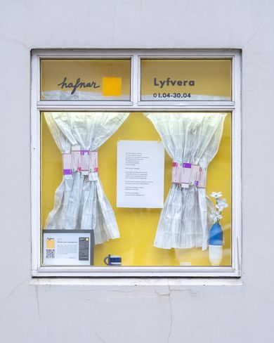 Gestir og gangandi í miðborginni hafa í apríl getað litið inn um sýningarglugga Hafnar.hauss við Hafnarstræti 17 og séð innsetningarverkið „Það er gluggaverkur í dag“(„Window pain management“ á ensku). Verkið veitir innsýn inn í hversdagsleika langveikra og samanstendur af ljóði, leirmunum og skúlptúrum sem unnir voru úr lyfjaumbúðum Ingiríðar Halldórsdóttur, listakonunar, í gegnum veikindaferli hennar. Vísir heyrði hljóðið í Ingiríði og ræddi við hana um listina, veikindin og Lyfveru. Glíman við heilbrigiðskerfið oft erfiðari en veikindin Ingiríður er með Ehlers-Danlos-heilkenni sem einkennist af of miklum liðleika í líkamanum og teygjanlegum bandvef. Þar að auki glímir hún við sjálfsofnæmi, króníska verki og miðtaugakerfisraskanir. „Ég byrja að fá og er greind með rosalega slæma vefjagigt sautján ára. Síðan hætti ég í Háskólanum 2018 og fór í endurhæfingu. Á tímabili fékk ég nýja sjúkdómsgreining á ársfresti eða sex mánaða fresti þangað til að fyrir tveimur árum fer að hægja á þessu. Þá hætti ég að versna og fer að geta unnið á þessu,“ segir hún. „Ég er mjög greind kona,“ segir Ingiríður og hlær. „Ég tek húmorinn mikið með mér af því ég þarf að díla við svo alvarlega hluti. Ég get ekki tekið hlutunum og alvarlega.“ Ingiríður notar fylgihluti veikinda sinna í listsköpun Lyfveru. Ingiríður fór á örorku 2023 en hún segir að það hafi kostað miklu vinnu og átak að díla við bæði heilbrigðiskerfið og félagslega kerfið. „Það er alveg vinna út af fyrir sig og hefur oft verið mér mun trámatískara en sjálf veikindin. Sem er svo mikil steypa. Síðan færi ég mig yfir í listina og hef verið dálítið að blómstra þar. Það hefur verið góð útrás,“ segir Ingiríður. Hún hafi mikið notað eftirfarandi frasa: Going through all this shit can at least be a fertilizer for something good. „Þetta er allt í upplifuninni af líkamanum og sjálfsofnæminu. Þetta er innri barátta í bókstaflegri merkingu,“ segir hún. Gluggaverkurinn birtist henni í bílnum „Ég er búin að ganga um með Lyfveru-verkefnið dálítið lengi, frá því 2019 þegar ég byrja að verða meira veik,“ segir Ingiríður um Lyfveru. Eftir að Ingiríður byrjaði að skapa list í Hafnar.haus 2023 og fór að umgangast meira af skapandi listafólk fór verkefnið að taka á sig skýrari mynd, hún gat mátað það við fleiri miðla og unnið betur úr því. Það er gluggaverkur í dag. Hafnar.haus fékk síðan styrk frá Borgarsjóði til að útrétta glugga á byggingunni svo hægt væri að sýna borgarbúum hvað væri um að vera í byggingunni. Ingiríður hafði aðstoðað listamenn við praktísk atriði í uppsetningum síðustu mánuði og bauðst þá að fá gluggann í mánuð til að sýna list sína. „Ég vissi ekkert hvað ég ætlaði að gera þegar ég sagði já. Ég var að keyra heim einn daginn og þá kom til mín þessi titill, „Window pain management“ og þá fór boltinn að rúlla,“ segir Ingiríður. Nafnið er leikur á orðin „window pain“ sem þýðir gluggaverkur og „windowpane“ sem þýðir gluggarúða. „Með verkinu vona ég að sýna fleiri hliðarnar af því að þurfa að taka lyf. Eins og við þekkjum þá koma lyfin með löngum viðvörunarfylgiseðlum um margskonar aukaverkanir, sem er mikilvægt að skoða. En það er líka margt jákvætt og fallegt sem getur fylgt þeim,“ segir hún. „Mér persónulega þykir mjög vænt um lyfin mín, það er oft sjokkerandi fyrir fólk að heyra að ég taki sautján töflur eða meira á dag. En þessi kokteill gerir mér kleift að takast á við lífið mitt og hafa meira svigrúm jafnvel þótt að líkaminn minn sé að berjast á móti sjálfum sér,“ segir hún. Hulinn heimur langveikra Verkefnið hafi síðan haldið áfram að vaxa og endaði í þessum gluggaverk þar sem húmor og erfiðleikar mætast. Undir listamannsnafninu Lyfveru fjallar Ingiríður um það sem hún kallar „veikindaheiminn“ (e. sick world) þ.e. heim hins langveika. „Þetta er rosalega stór heimur sem er hulinn mörgum. Það er sérstakt líka að vera að díla við líkama og taugakerfi eins og mitt. En mér finnst það rosalega heilandi fyrir heilsuna að geta tekið góðu partana út úr þessu,“ segir hún. Ingiríður notar mikið lyfjaumbúðir sem hún umbreytir fyrir verkin og tekur hugtök úr veikindunum sem hún leikur sér við að snúa á haus. Meðal þess sem er til sýnis eru pillur sem Ingiríður hefur smíðað úr fylgiseðlum lyfja sinna. „Þegar ég er andvaka þá bý ég til ,why-am-I-not-sleeping pills.' Ég er ekki bara að taka lyfin heldur bý þau til út frá einhverju innra með mér. Ég á það til að snúa hlutum upp og niður og breyta þannig merkingu þeirra,“ segir hún. Meðal þess sem hún hefur leikið sér með eru aukaverkanir lyfja og verkanir. „Ég hef verið með verkjavandamál en núna er ég með listaverkjalausnir,“ segir hún. „Það er svo mikið sjokk þegar maður missir heilsuna svona. Þetta er búið að gerast bæði hratt og hægt hjá mér. Maður lendir á veggjum sem maður er ekki búinn að átta sig á, allt í einu eru komin einhver ný einkenni eða maður er búinn að missa einhverja hæfni sem maður hafði áður. Þá er gott að finna sig aftur í hlutunum „Að umbreyta og gera aukaverkanirnar jákvæðar. Þetta er ekki bara eitthvað sem er að gerast við mann heldur eitthvað sem maður er að gera við heiminn,“ segir hún. Auðveldara að útskýra veikindin með húmor „Það er léttara fyrir mig að útskýra heiminn minn í gegnum myndlíkingar og mynda þessar tengingar við aðra. Þannig er hægt að túlka heiminn minn á meltanlegan hátt, gefur fólki tækifæri að tengja við listina og mig og gefur leyfi
