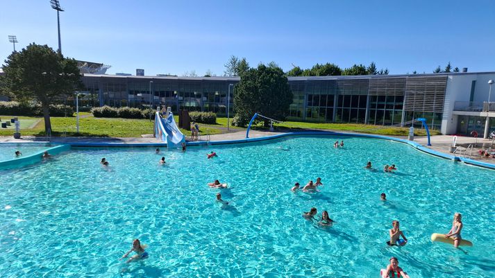 Sólríkt verður og hægur vindur víða á landinu í dag. Hiti er á bilinu níu til fjórtán stig og því ljóst að fjöldi fólks ákveði að skella sér í sund. Steinunn Lóa Lárusdóttir, laugarvörður í Laugardalslaug segir morguninn hafa verið annasaman hjá starfsmönnum laugarinnar. „Við erum svona Íslendingarnir alveg að nýta hverja mínútu í sólinni sem best til að fá gott tan,“ segir hún. Steinunn segist ekki búast við öðru en að aðsókn verði mikil fram eftir degi. Á meðan sólin skín fer fólk í sund. Hún segir sólbekki laugarinnar þegar tekna í gagnið. „Ég hvet alla til að fara í sund eða bara vera úti í dag og nýta þetta góða veður til fulls,“ eru skilaboð Steinunnar Lóu Lárusdóttur laugarvarðar á þessum fallega degi.