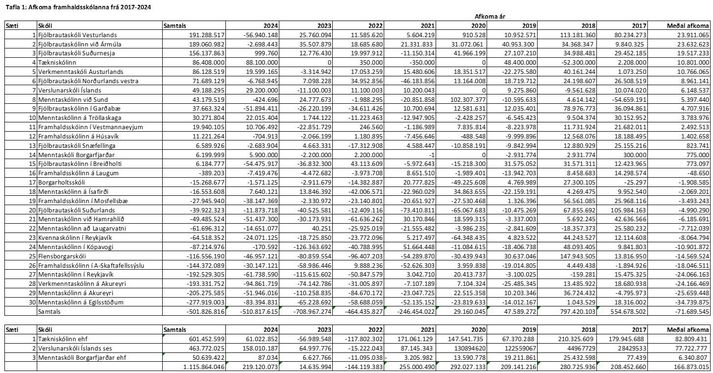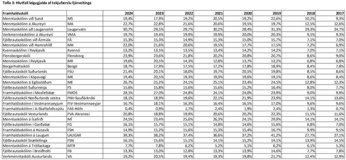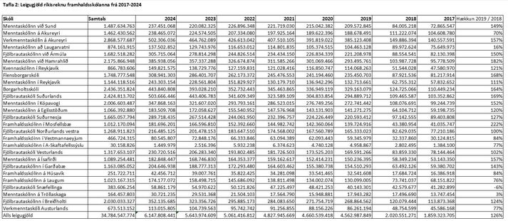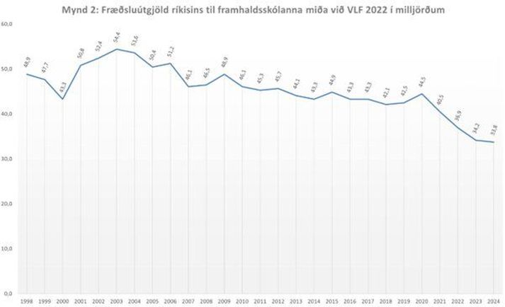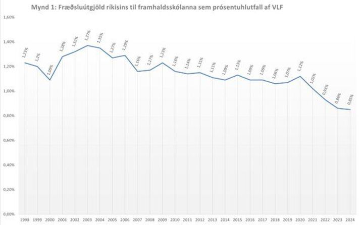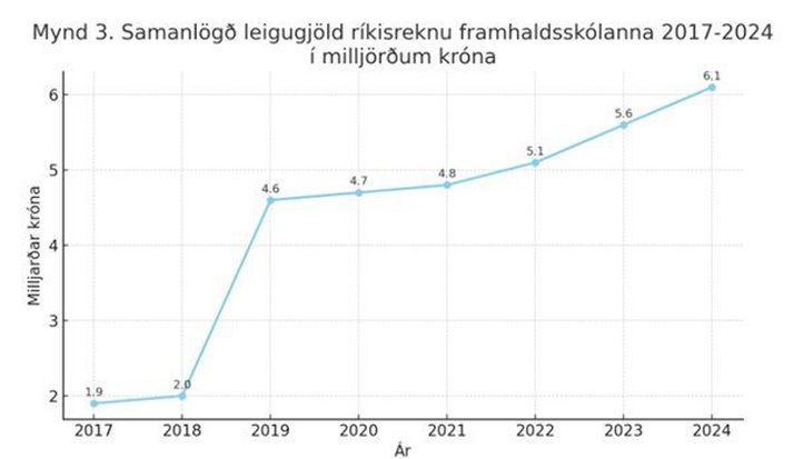 Árið 2019 var blásið til sóknar í menntamálum með loforðum um aukin fjárframlög á hvern framhaldsskólanema, uppbyggingu iðn- og verknáms og aukna áherslu á íslenskukennslu fyrir nemendur með íslensku sem annað tungumál svo fáein atriði séu talin (Morgunblaðið, 9.9. 2019). Þetta eru kunnugleg kosningaloforð en til þess að greina raunverulegar áherslur stjórnvalda þarf að skoða fjárhagslega mælikvarða og bókhaldsgöng nokkur ár aftur í tímann. Byrjum á að skoða styttingu námstíma til stúdentsprófs. Áhrif styttingarinnar Ætla má að stytting námstíma til stúdentsprófs „spari“ ríkinu 8-9 milljarða árlega. Þessi breyting fór ekki fram hjá neinum og er jafnan talin sú stærsta sem gerð hefur verið á framhaldsskólastiginu í seinni tíð. Árið 2022 var verg landsframleiðsla (VLF) 4 billjónir. Hlutfall fræðsluútgjalda ríkisins til framhaldsskólanna var 0,93% af henni eða um 37,2 milljarðar. Hlutfall fræðsluútgjalda ríkisins til framhaldsskólanna af VLF árið 2012 var 1,15% sem er 24% hærra hlutfall (sjá mynd 1 og 2). Ef sama hlutfall af VLF hefði runnið til framhaldsskólastigsins 2022 og það gerði 2012 værum við að tala um 45,7 milljarða framlag. Hér erum við að ræða um 8,5 milljarða mismun og ýmislegt hægt að gera fyrir þá fjárhæð. Árið 2012 reyndist ekkert sérstakt gullaldarár, síður en svo. Það voru þó hlutfallslega fleiri nemendur sem nutu þeirra menntunarlegu gæða sem skólastigið bauð, við hærra gæðastig og í lengri tíma. Hækkun leigugjalda Næststærsta breyting á framhaldsskólakerfinu átti sér stað árið 2019 og fáir sem þekkja til hennar. Einhver kann að spyrja hvort hér sé átt við áðurnefnda uppbyggingu iðnáms eða hið veglega átak í íslenskukennslu fyrir stóraukinn fjölda nemenda með íslensku sem annað tungumál. Svarið við þessari spurningu er því miður nei. Áherslan á að hækka fjárframlög á hvern nemanda og fela hagræðingaráhrif styttingarinnar og annarra sparnaðaraðgerða í framhaldsskólakerfinu, leiddu forystumenn menntamála í ómótstæðilega freistni. Eftir styttingu námstíma til stúdentsprófs var mest aðkallandi forgangsverkefni stjórnvalda að hækka leigugjöld ríkisreknu skólanna um 126% eða úr 2 milljörðum króna í 4,6. Þetta er hækkun upp á 2,6 milljarða. Þetta þýðir að leigugjöldin eru núna að meðaltali 19% af fjárframlögum ríkisins en voru fyrir 2019 um 9%. Þetta kann að hljóma eins og sakleysisleg ráðstöfun þar sem þetta er jú bara ríkið að færa pening úr einum vasa í annan. Þetta er þó ekki svo einfalt þar sem hér er með einu pennastriki verið að ofmeta menntunarleg útgjöld. Dæmi er um að himinhá leigugjöld hafi verið rukkuð af húsnæði sem er ónothæft. Forsvarsmenn ríkisins lofuðu að rekstrinum yrði tryggður fjármunir þannig að skólarnir stæðu undir leigugjöldum en það hefur ekki reynst vera raunin. Leigan hækkaði t.a.m. hjá ríkisreknu skólunum um 503 milljónir kr. á milli áranna 2023 og 2024 en tap framhaldsskólanna 2024 var nálægt þeirri upphæð eða 511 milljónir. Húsaleiga Menntaskólans í Reykjavík hækkaði um 77 milljónir milli áranna 2022 og 2023 eða um 50% sem skilaði sér í 115 milljón króna neikvæðri afkomu árið 2023 (sjá töflu 1 – 3). Svona mætti lengi halda upptalningunni áfram. Leigugjöldin éta svo upp allar sértekjur framhaldsskólanna sem stjórnendum þeirra er gert að afla. Nú fá skólameistararnir í andlitið á sér eins og blauta tusku að þeir standi sig ekki nógu vel og að stofna þurfi nýtt stjórnsýslustig. Hækkun leigugjaldsins árið 2019 skekkir samanburð á útgjöldum ríkisins til framhaldsskólanna sem nemur 10% ofmati. Útgjöld á hvern nemanda eru ofmetin um sennilega allt að 200.000 krónum. Innbyrðissamanburður á ríkisútgjöldum til framhaldsskólanna skekkist og ekki er hægt að meta t.d. áhrif styttingar námstímans fjárhagslega nema að draga þetta álag frá. Alþjóðlegur samanburður verður svo að taka mið af þessu þar sem íslenska húsaleigan er orðin verulega stór breyta. Hver veit svo hvað Fjársýslan gerði við fjármunina sem skólastjórnendur ríkisreknu framhaldsskólanna afhentu þeim? Iðnaðarmenn sjást dytta að mannvirkjum sem er vissulega eitthvað betur viðhaldið en mér er til efs að fjármunirnir skili sér að öllu leyti til menntunarlegra þarfa. Athuga þarf að með leigugjöldum hefur ekki að fullu verið gert grein fyrir öllum kostnaði við húsnæði starfseminnar svo sem rafmagni, hita, fasteignaumsjón og ræstingu. En hvað er til ráða? Fyrsta tillaga mín væri að lækka hlutfall leigugjalda niður í fyrra horf, þ.e. úr 19% í 9% af fjárframlögum ríkisins en það væri um þriggja milljarðarða innspýting inn í rekstur ríkisreknu framhaldsskólanna. Með því mætti standa við öll loforð og fagurgala stjórnmálamanna og leysa stjórnunarleg vandamál sem kalla nú á nýtt stjórnsýslustig. Við þessar draumaaðstæður væri auðvelt að afskrifa vinnutímaskuldir sem nema árlega 150 milljónum og eru dregnar úr vösum hnýpinnar stéttar framhaldsskólakennara. Önnur tillaga væri að lækka leiguhlutfallið niður í fyrra horf, þ.e. 9% ásamt því að lækka framlög til framhaldsskóla. Með þessu fengist réttari mynd af því sem raunverulega varið af fjármunum til skólastigsins. Þriðja tillagan væri að spyrja hvert hlutverk og markmið forystumanna menntakerfisins sé. Markmið stjórnenda í menntakerfinu og stjórnsýslu menntamála er að tryggja að nægilegu fjármagni sé varið til málaflokksins þannig að skólastigið sinni sínu lögbundna hlutverki. Skólayfirvöldum ber að standa vörð um menntunarlegt inntak og gild. Þetta hafa þau ekki gert enda markmiðið að ná fram sem mestum niðurskurð. Lágma
