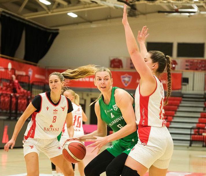 Valur tók á móti Njarðvík í N1 höllinni við Hlíðarenda þegar önnur umferð Bónus deild kvenna hóf göngu sína í kvöld. Lokatölur í leiknum urðu 77-80 Njarðvík í vil. Njarðvík vann uppkastið en það var heimalið Vals sem byrjaði af krafti og setti tóninn. Valur spilaði mjög vel á meðan Njarðvík virkaði örlítið vankað við þessa frábæru byrjun Vals. Njarðvík tókst að jafna leikinn en frábær endasprettur í leikhlutanum skilaði Val í fjögurra stiga forskoti 26-22. Valur-Njarðvík Bónus deild kvennaAnton Brink/Vísir Eftir erfiða byrjun hjá Njarðvík sá maður Njarðvíkurliðið sem maður kannaðist frekar við í öðrum leikhluta. Brittany Dinkins og Danielle Rodriguez komust í betri takt sem skapaði vandræði fyrir Val. Reshawna Stone var frábær í liði Vals og stór ástæða þess að Valur leiddi leikinn í hálfleik 44-40. Gríðarleg barátta er það sem einkenndi þriðja leikhluta. Njarðvík náði góðri rispu og náði í forskot. Varnarleikur beggja liða var frábær en það voru gestirnir frá Njarðvík sem leiddu eftir þriðja leikhluta 58-62. Valur-Njarðvík Bónus deild kvennaAnton Brink/Vísir Það var gríðarleg spenna í fjórða leikhlutanum þar sem bæði lið lögðu allt í sölurnar til þess að sækja sigurinn. Á lokasprettinum var það svo Njarðvík sem stigu upp og sóttu gríðarlega sterkan þriggja stiga sigur 77-80. Atvik leiksins Þristur frá Brittany Dinkins sem kemur leiknum í 77-77. Mómentið var með Val en sveiflaðist Njarðvíkurmeginn eftir að Brittany Dinkins negldi niður þessum þrist. Stjörnur og skúrkar Hjá Val var Reshawna Stone frábær og skoraði 34 stig, mest allra á vellinum í kvöld. Hjá Njarðvík var Brittany Dinkins sem oft áður virkilega öflug og var með 30 stig. Danielle Rodriguez kom næst með 22 stig en hún var mjög góð á báðum endum vallarins. Dómararnir Dómaratríóið í dag komst bara vel frá sínu fannst mér að mestu. Alltaf eitthvað til að tuða yfir eins og gengur og gerist í þessu sporti. Kristinn Óskarsson, Bjarni Hlíðkvist Kristmarsson og Federick Alfred U Capellan sáu um flautuna í kvöld. Stemingin og umgjörð Mætingin var með fínasta móti. Hefði verið gaman að sjá fleiri andlit í stúkunni en fullt hrós á alla sem lögðu leið sína í N1 höllina í kvöld. Viðtöl Einar Árni Jóhannsson þjáflari NjarðvíkurAnton Brink/Vísir „Gríðarlega ánægður með það hvernig mitt lið kláraði þennan loka kafla“ „Seiglu sigur og sviptingar í þessu sérstaklega í síðari hálfleiknum“ sagði Einar Árni Jóhannsson þjálfari Njarðvíkur eftir sigurinn í kvöld. „Mér leið aldrei vel þó að við hefðum verið komnar þarna 6-7 stigum yfir því þær voru að setja niður stór skot á reglulegum köflum og komu sér aftur í forystu en ég er gríðarlega ánægður með það hvernig mitt lið kláraði þennna loka kafla“ Aðspurður um hvað það hafi verið sem hafi á endanum skilað þessum sigri vildi Einar Árni meina að löngun og vilji hafi spilað stórt hlutverk. „Ég held að löngun og vilji hafi verið stórt atriði en við erum auðvitað að setja stór skot og náum góðum stoppum á loka kaflanum. Þær voru búnar að gera vel og þá sérstaklega fyrir utan þriggja stiga línuna og við náðum í nauðsynleg stopp á loka mínútunum“ Jamil Abiad þjálfari ValsAnton Brink/Vísir „Gerðum of mikið af mistökum í lokin“ „Það er aldrei gaman að tapa og hvernig við hrynjum hérna í lokin var svekkjandi“ sagði Jamil Abiad þjálfari Vals eftir tapið í kvöld. „Við spiluðum frábæran leik og stelpurnar voru frábærar í 38-39 mínútur en við gerðum of mikið af mistökum í lokin“ Jamil var svekktur með lokin á leiknum í kvöld. „Okkur skorti aga sem við vinnum að á æfingum. Við tókum ekki ábyrgð á því að gera það sem var lagt upp með og við gerðum of mikið af mistökum í endan. Gegn svona góðu liði eins og við mættum í kvöld þá er þér refsað“ sagði Jamil Abiad.