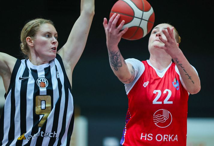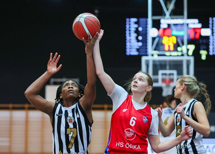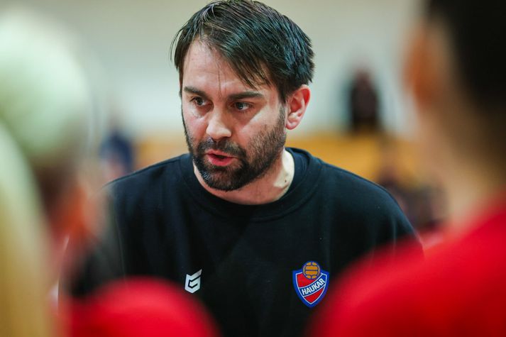 Íslandsmeistarar Hauka sóttu nýliða KR heim í DHL-höllina að Meistaravöllum í Vesturbænum í annarri umferð Bónus-deildar kvenna í körfubolta í kvöld. Þetta var fyrsti heimaleikur KR-inga í efstu deild í fjögur ár. KR-liðið var vel stutt af stuðningsmönnum sínum og kom af krafti inn í leikinn. Leikmönnum KR gekk vel að leysa pressu Hauka framan af leiknum og vörn heimaliðsins var sömuleiðis þétt. Hugrekki og sjálfstraust einkenndu leik KR-inga sem ætluðu greinilega að selja sig dýrt fyrir stigin tvö. Jafnræði var með liðunum fram í þriðja leikhluta en þá dró í sundur og Haukar fóru að lokum með öruggan sigur af hólmi. Haukar hertu þá tökin í varnarleiknum og KR-ingar áttu í meiri erfiðleikum með að skora. Hanna Þráinsdóttir verst þegar Sólrún Inga Gísladóttir sækir að körfunni. Vísir/Anton Brink Eftir að hafa elt Hauka eins og skugginn fram í miðjan þriðja leikhluta minnkaði sóknarþungi KR-inga þegar líða tók á leikinn. Varnarleikur Hauka varð sterkari og á sama tíma stækkaði hringurinn hjá gestunum á hinum enda vallarins. Haukar héldu áfram að auka forskot sitt í fjórða leikhluta og í hvert skipti KR var að hóta áhlaupi kom þriggja stiga karfa hjá gestunum sem slökkti vonarneista heimaliðsins. Lokatölur í leiknum urðu 92-70 Haukum í vil en ríkjandi Íslandsmeistarar eru með fjögur stig eftir tvo leiki en KR er aftur á móti með tvö stig eftir jafn marga leiki. Daníel Andri Halldórsson leggur línurnar fyrir leikmönnum sínum. Vísir/Anton Brink Daníel Andri: Margt jákvætt þrátt fyrir tapið „Við spiluðum vel í fyrri hálfleik. Náðum að leysa pressuna þeirra vel og flæðið í sóknarleiknum var bara heilt yfir gott. Skotvalið var gott og margt jákvætt sem við getum tekið út úr fyrri hálfleiknum,“ sagði Daníel Andri Halldórsson, þjálfari KR, að leik loknum. „Haukar eru með gott lið og þær sýndu styrk sinn í seinni hálfleik. Þeim tókst að ýta okkur út úr okkar aðgerðum og nokkrar þriggja stiga körfur í röð hjá þeim gerðu hlutina erfiðari fyrir okkur. Skotnýtingin varð verri hjá okkur og við náðum ekki að gera áhlaup,“ sagði Daníel Andri enn fremur. „Við verðum að læra hratt í þessari deild og seinni hálfleikurinn sýndi okkur það. Það vantaði upp ákefðina og að sækja af krafti á körfuna í seinni hálfleik. Það er ýmislegt sem við þurfum að laga en á sama tíma hlutir sem við getum tekið með okkur í næstu verkefni,“ sagði hann. „Við fráköstum vel í þessum leik og það var barátta í okkur allan leikinn. Við fegnum því miður körfur í andlitið þegar við vorum að reyna að koma til baka. Stemmingin í stúkunni var frábær og það var gott að fá orku þaðan,“ sagði Daníel Andri. Emil Barja: Allt annað að sjá okkur í seinni hálfleik „Við komum flatar inn í leikinn og ég var ekki ánægður með fyrri hálfleikinn. Við fórum yfir hlutina í hálfleik og það var allt annað að sjá okkur í seinni hálfleik. Liðið er ennþá að slípa sig saman og þetta er allt á réttri leið,“ sagði Emil Barja, þjálfari Hauka, eftir leik. „Það sama var reyndar uppi á teninngnum í fyrsta leiknum þar sem við fórum rólega af stað og kveiktum svo á okkur. Kannski þarf ég að mótívera liðið betur fyrir leikinn og hafa hálfleiksræðuna fyrir leikina,“ sagði Emil þar að auki. „Orkustigið var allavega betra í seinni hálfleik og varnarleikurinn öflugri. Nú þurfum við að fjölga mínútunum þar sem við leikum af fullum krafti. Við komumst ekki upp með það endalaust að spila bara tvo leikhluta almennilega,“ sagði hann. „Ég er ánægður með stöðuna á liðinu heilt yfir eftir fyrstu tvo leikina en eins og ég segi þá finnst mér við eiga töluvert inni. Það er skammt liðið af tímabilinu og við munum verða betri það er ljóst,“ sagði Emil. Emil Barja, þjálfari Hauka, á hliðarlínunni í leiknum í kvöld. Visir/Anton Brink Atvik leiksins Sólrún Inga Gísladóttir setti niður tvær þriggja stiga körfur með stuttu millibili þegar KR var að freista þess að koma sér aftur inn í leikinn undir lok þriðja leikhluta. Þær körfur drógu tennurnar úr KR-liðinu sem náði ekki að koma sér almennilega inn í leikinn eftir það. Stjörnur og skúrkar Krystal-Jade Freeman fór fyrir Haukaliðinu en hún var stigahæst með 24 stig. Sólrún Inga skoraði svo mikilvægar þriggja stiga körfur sem sigldu sigrinum endanlega heim. Amandine Justine Toi lagði til 18 stig og Þóra Kristín Jónsdóttir mataði samherja sína með átta stoðsendingum. Í raun var það svo sterk liðsvörn Hauka í seinni hálfleik sem lagði grunninn að þessum sigri. Molly Kaiser var atkvæðamest í liði KR með 24 stig og Kristrún Ríkey Ólafsdóttir lét til sín taka undir körfunni en hún setti niður 13 stig. Eve Braslis sem gekk til liðs við KR á dögunum skilaði svo 14 stigum á töfluna. Rebekka Rut Steingrímsdóttir sýndi svo gæði sín í þessum leik en hún leysti pressu Haukaliðsins oft og tíðum vel í fyrri hálfleik með kraftmiklu knattraki sínu. Molly Kaiser og Sigrún Björg Ólafsdóttir berjast um boltann. Vísir/Anton Brink Dómarar leiksins Dómarar leiksins, Sigmundur Már Herbertsson, Ingi Björn Jónsson og Arnar Þór Þrastarson dæmdu þennan leik af stakri prýði. Samræmið gott í dómgæslunni og leikstjórnin heilt yfir góð. Þeir fá átta í einkunn fyrir sín störf. Stemming og umgjörð KR var að spila sinn fyrsta heimaleik í efstu deild kvenna í körfubolta síðan vorið 2021 í kvöld og það var augljóslega mikil eftirvænting í Vesturbænum fyrir þessum leik. Þétt setið var í stúkunni og gríðarlega góð stemming.