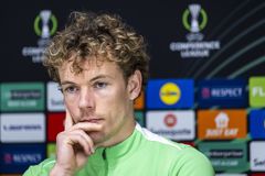 Dovbyk spilar með Roma, sem mætti Lille í Evrópudeildinni í síðustu viku. Hákon skoraði snemma, það sem reyndist sigurmark leiksins. Dovbyk fékk síðan tækifæri til að jafna en klúðraði öllum þremur vítaspyrnunum sem hann tók, eins og sjá má í spilaranum hér fyrir neðan. „Ég spilaði á móti honum bara fyrir stuttu“ sagði Hákon Arnar á blaðamannafundi landsliðsins í hádeginu. „Og skoraðir á móti honum“ skaut Arnar Gunnlaugsson inn í og báðir brostu út í annað. Hákon sagði Dovbyk samt vera leikmann sem íslenska liðið þarf að passa sérlega vel upp á. „Hann klúðraði þessum frægu vítum, en er ógeðslega sterkur og hraður, þannig að við þurfum að hafa miklar gætur á honum“ sagði Hákon um úkraínska framherjann, sem hefur skorað 11 mörk í 38 landsleikjum. Ísland mætir Úkraínu á Laugardalsvelli á morgun, föstudag, klukkan 18:45. Leikurinn verður í opinni dagskrá á Sýn Sport. Meira má sjá af blaðamannafundinum, sem fór fram í hádeginu, hér fyrir neðan.