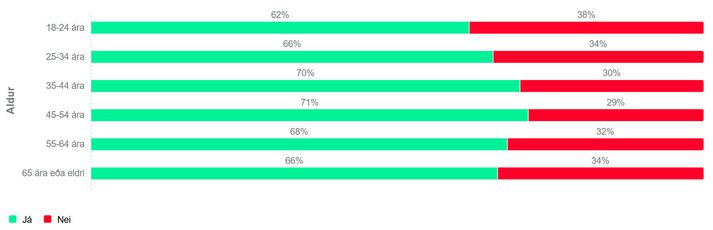 Í könnuninni, sem Prósent framkvæmdi dagana 16. til 30. september 2025, áður en tilkynnt var um vopnahlé milli Hamas og Ísraels, var spurt að eftirfarandi: Finnst þér að Ísland ætti að hætta við að taka þátt í Eurovision á næsta ári ef Ísrael verður meðal þátttökuþjóða? 67 prósent svöruðu þessu játandi og 33 prósent neitandi. Konur vilja marktækt frekar að Ísland hætti við að taka þátt í Eurovision á næsta ári ef Ísrael verður meðal þátttökuþjóða en karlar. Þá vilja íbúar landsbyggðar frekar að Ísland hætti við þátttöku en íbúar höfuðborgarsvæðisins. Þá virðist andstaðan mest hjá fólki á miðjum aldri, en minnst hjá yngsta aldurshópnum, 18-24 ára.